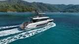 Sancrea 70 is a 21.8-meter aluminum explorer yacht designed for modern voyagers seeking comfort, elegance, and endurance at sea. Built by Sancrea Shipyard and set for delivery in 2026, she features naval architecture by Form Yacht Design, a striking exterior by Abbasli Design, and refined interiors by Bassan & Benedetti. Powered by twin MAN 560 hp engines, she offers a 1500 nm range at 9 knots, with cruising and top speeds of 10 and 14 knots respectively. The standard layout includes three spacious cabins and a utility room equipped with washer, dryer, full-height freezer, and extra storage. A four-cabin version is also available. At anchor, hydraulic platforms on the aft deck extend the beach club area, transforming the stern into a generous open-air lounge ideal for leisure and relaxation.
