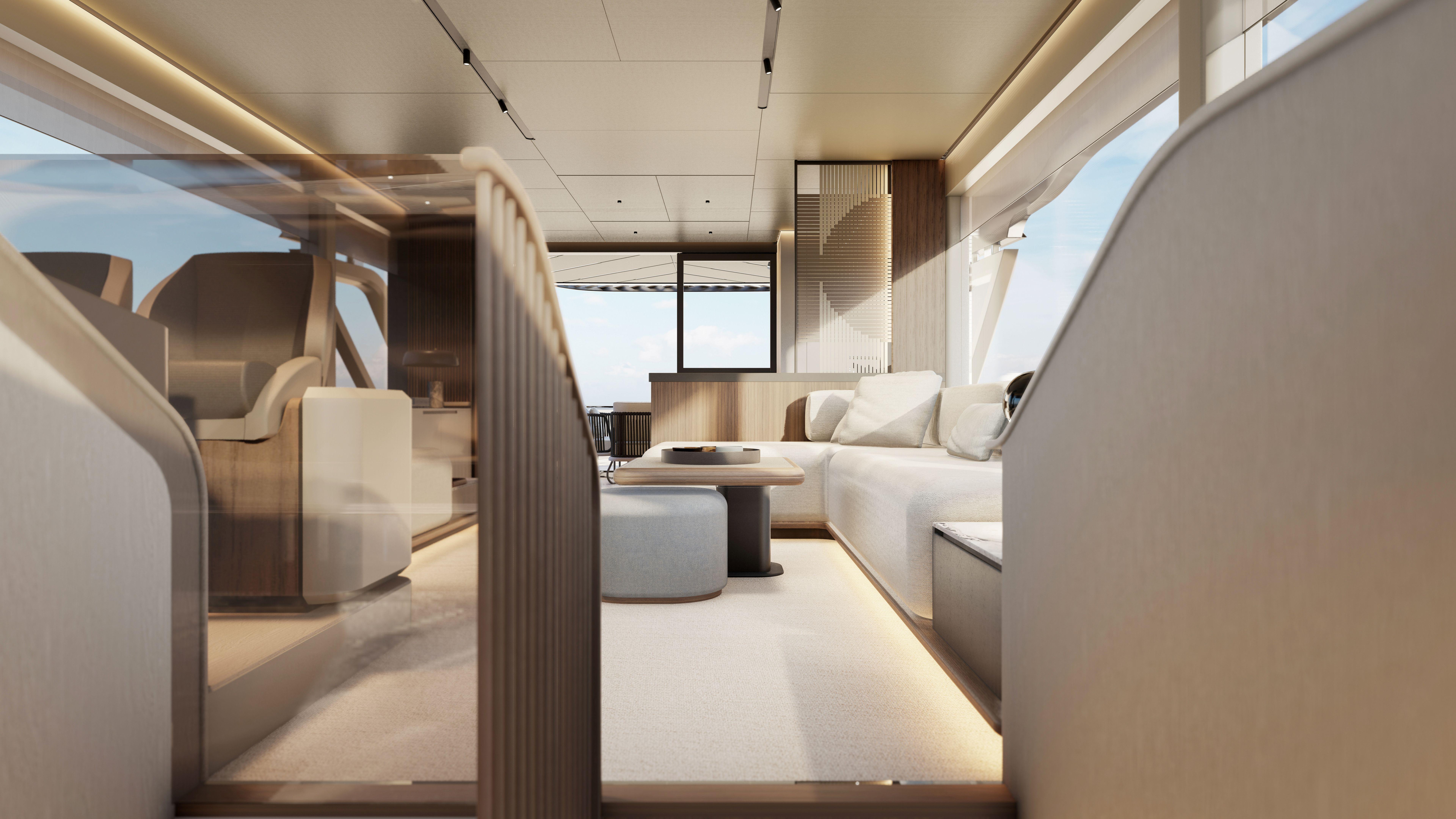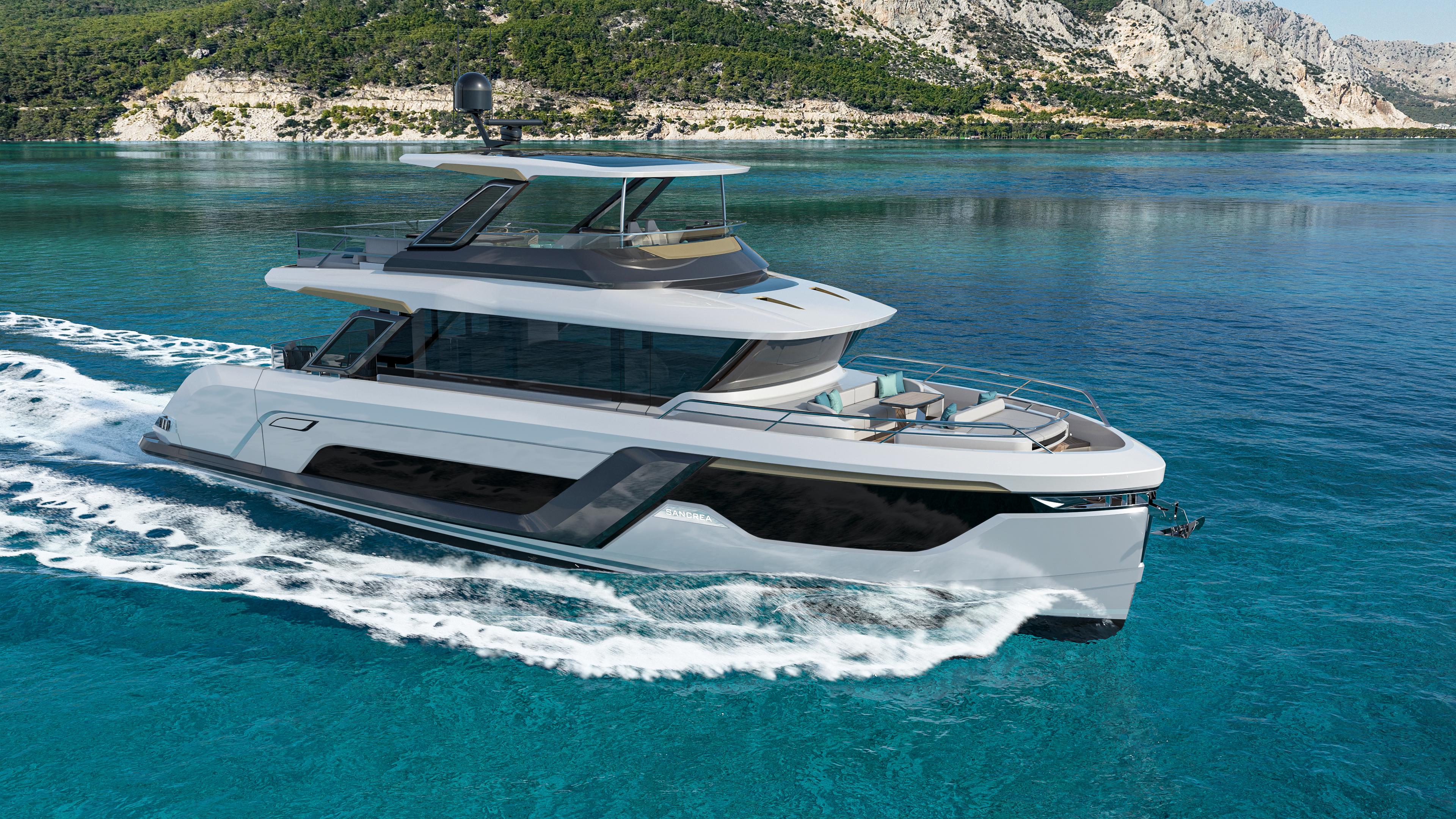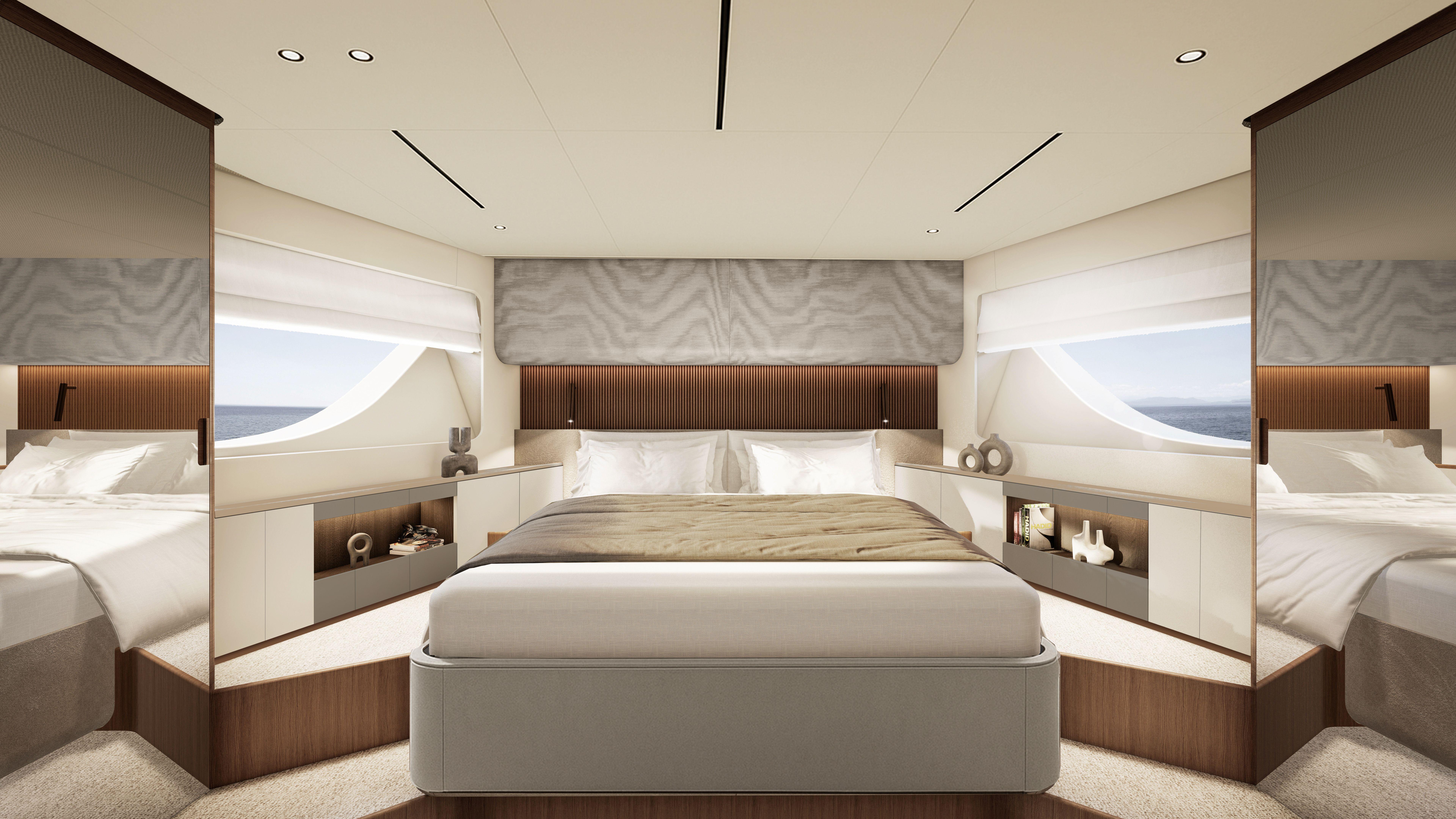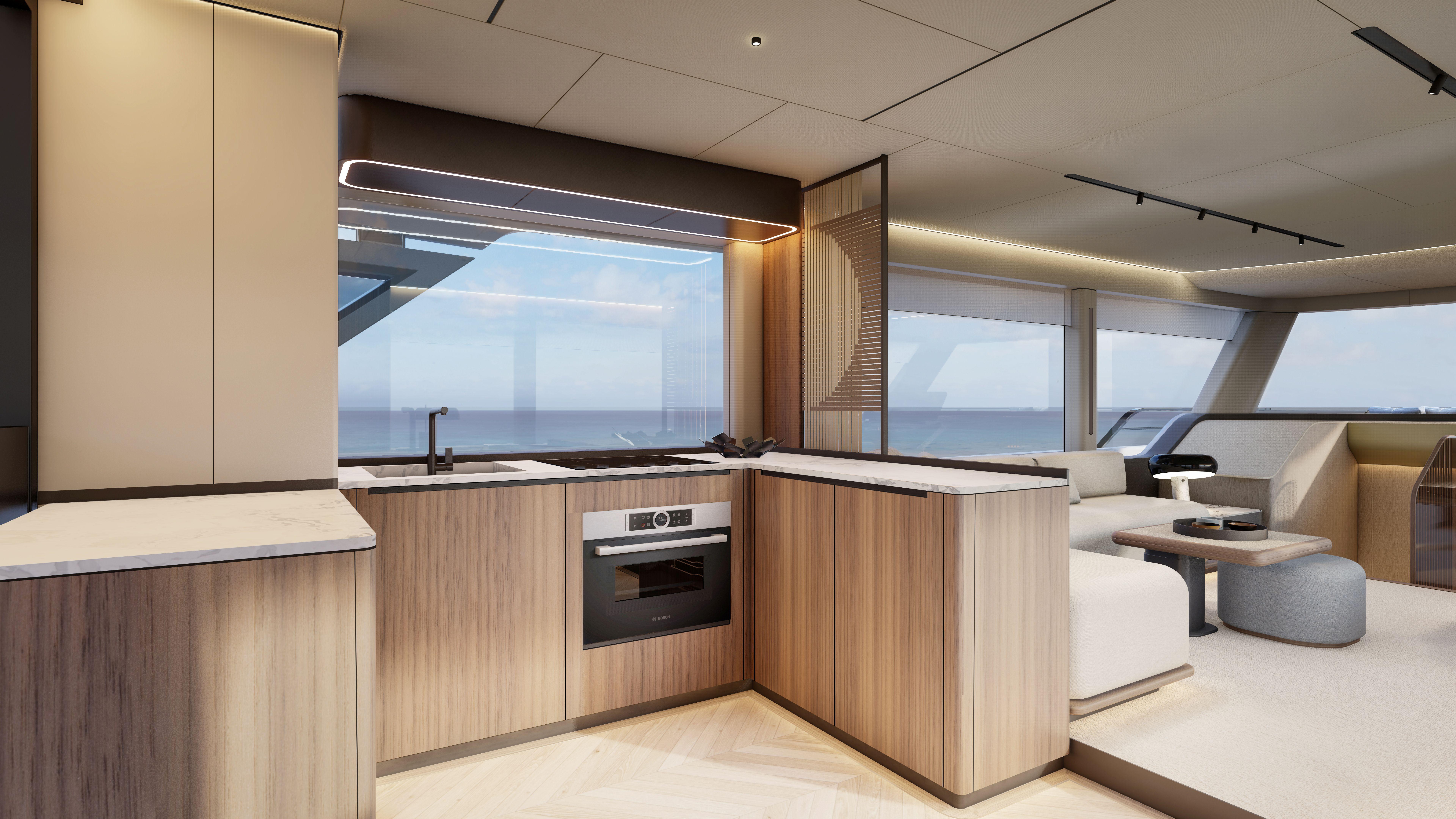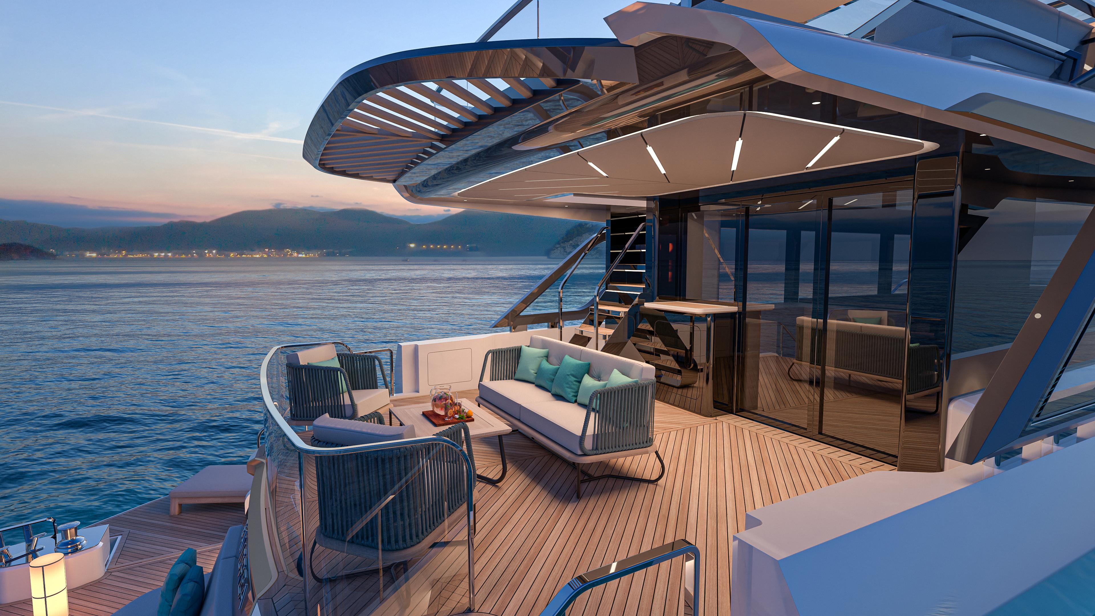 Sancrea 70 is a 21.8-meter aluminum explorer yacht designed for modern voyagers seeking comfort, elegance, and endurance at sea. Built by Sancrea Shipyard and set for delivery in 2026, she features naval architecture by Form Yacht Design, a striking exterior by Abbasli Design, and refined interiors by Bassan & Benedetti. Powered by twin MAN 560 hp engines, she offers a 1500 nm range at 9 knots, with cruising and top speeds of 10 and 14 knots respectively. The standard layout includes three spacious cabins and a utility room equipped with washer, dryer, full-height freezer, and extra storage. A four-cabin version is also available. At anchor, hydraulic platforms on the aft deck extend the beach club area, transforming the stern into a generous open-air lounge ideal for leisure and relaxation.
