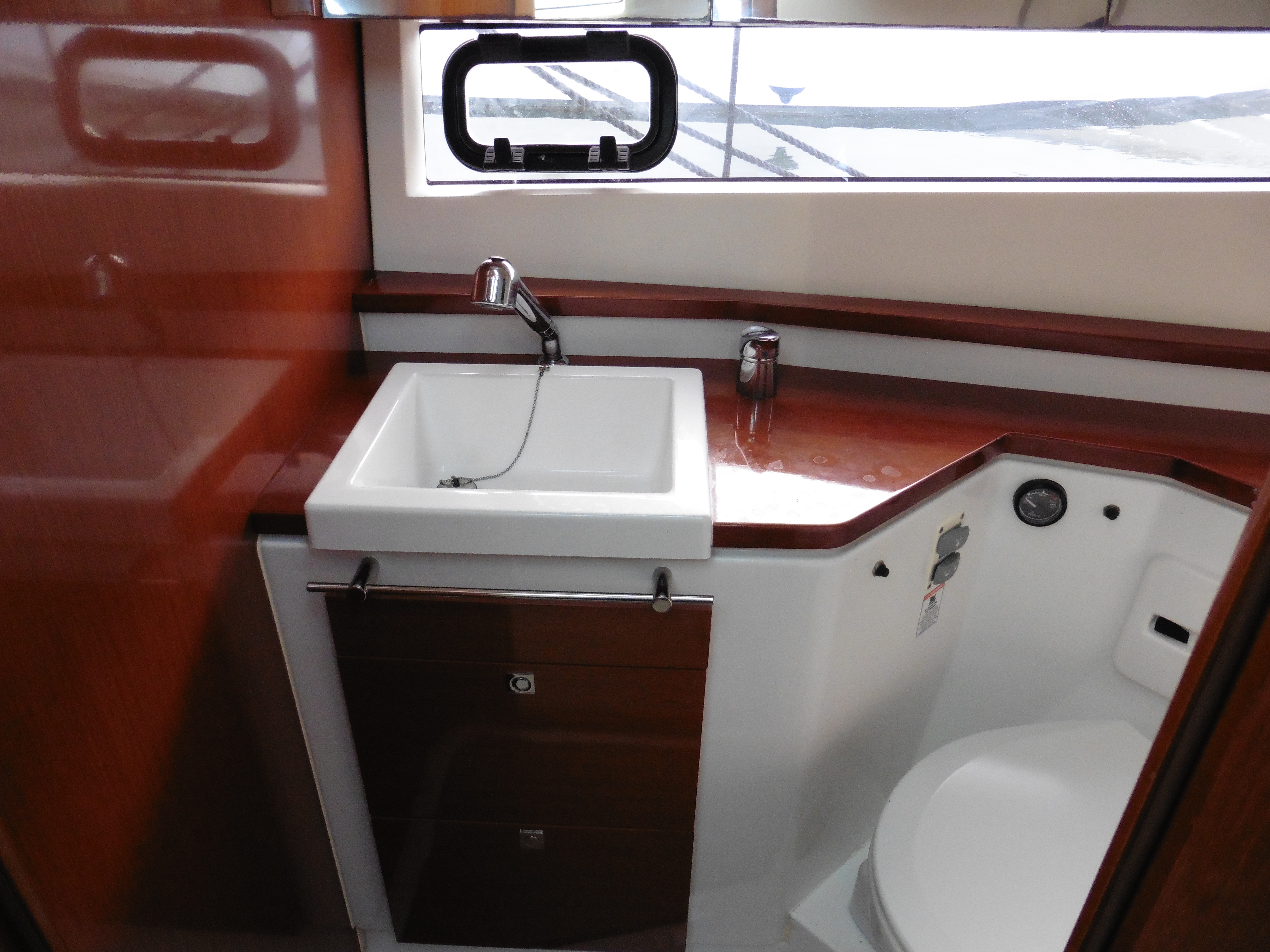 Day heads to port with marine electric toilet, shower, sink, mirror and cupboard