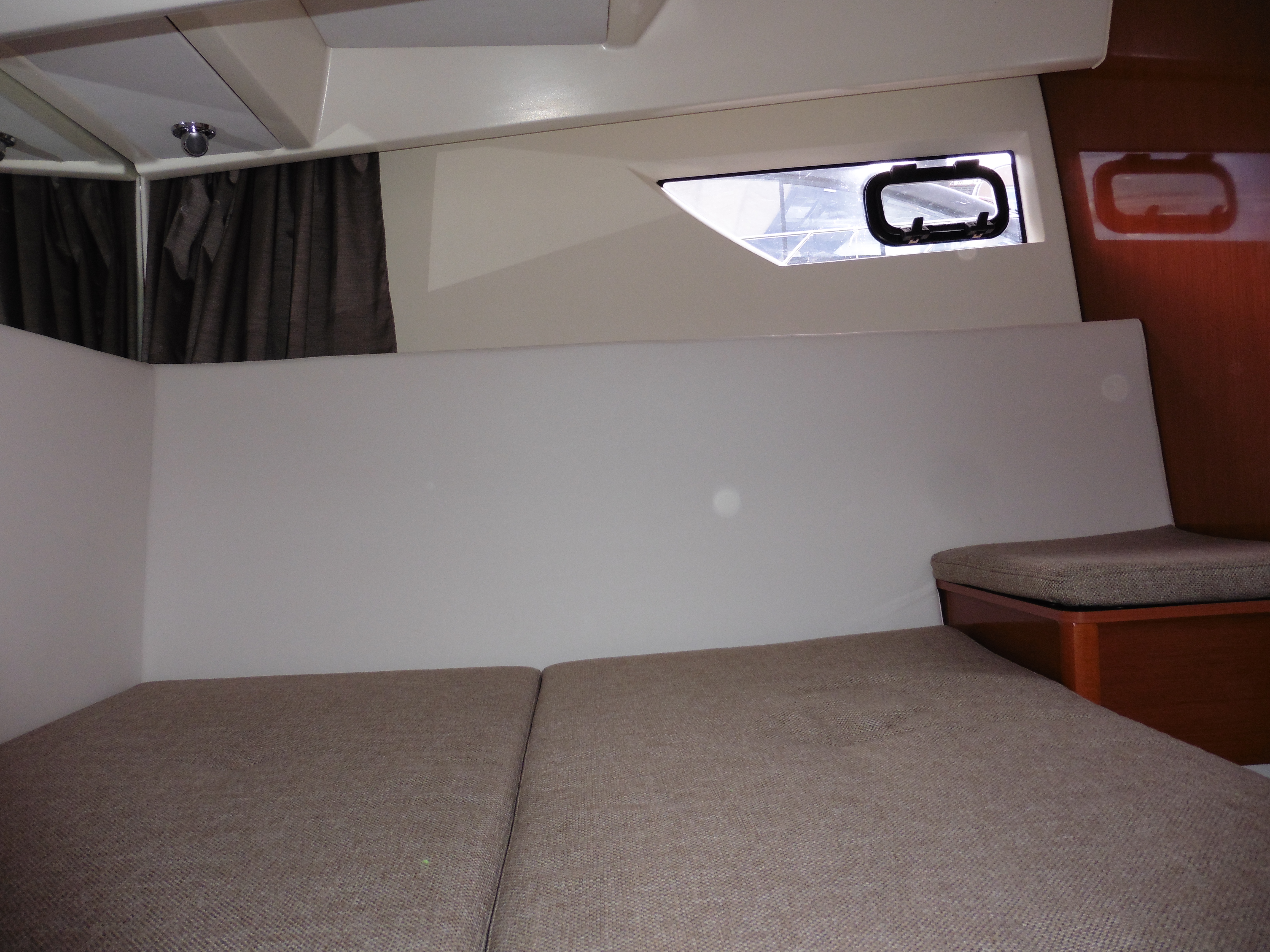 Aft cabin with double berth, hanging wardrobe and seat