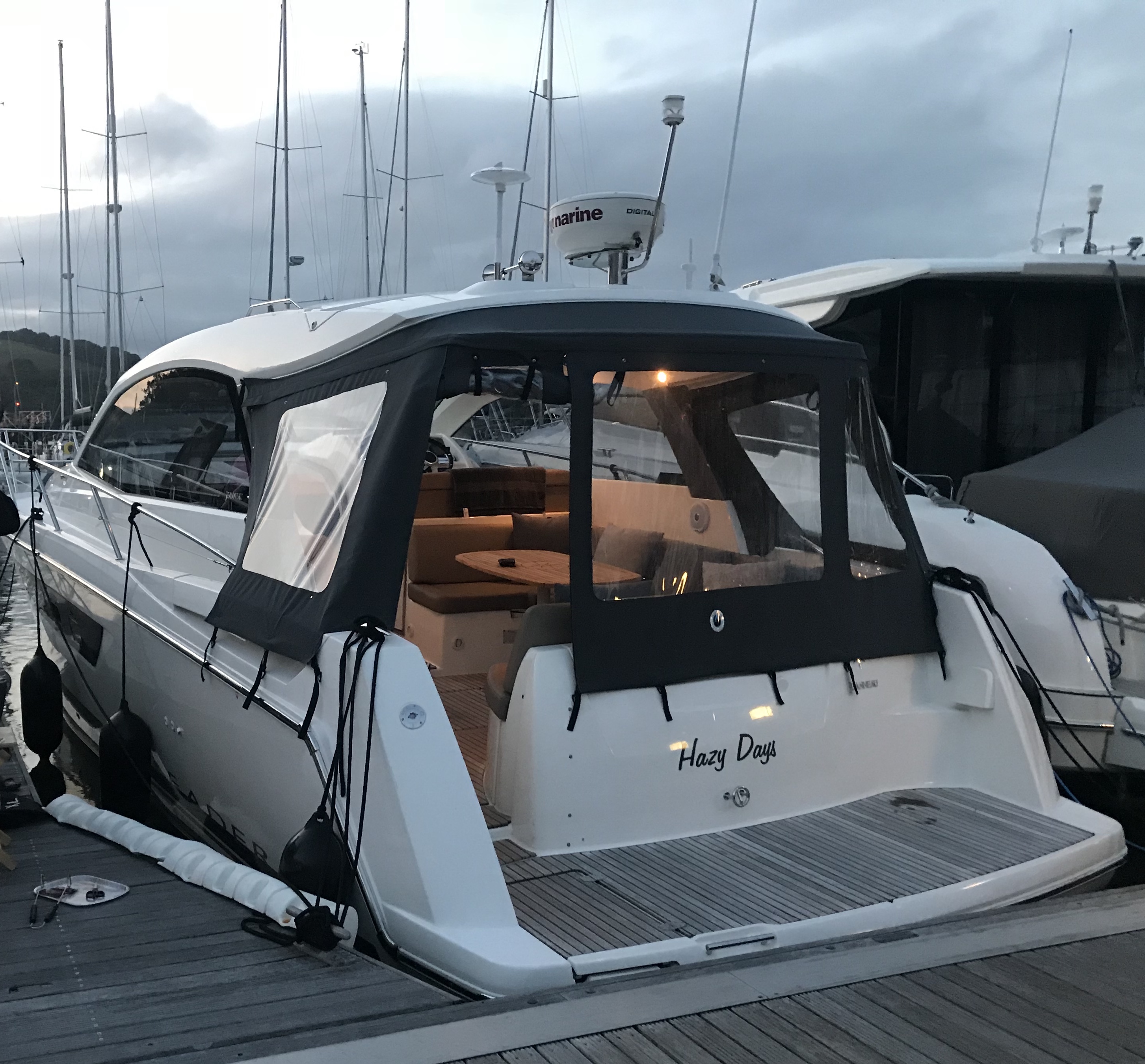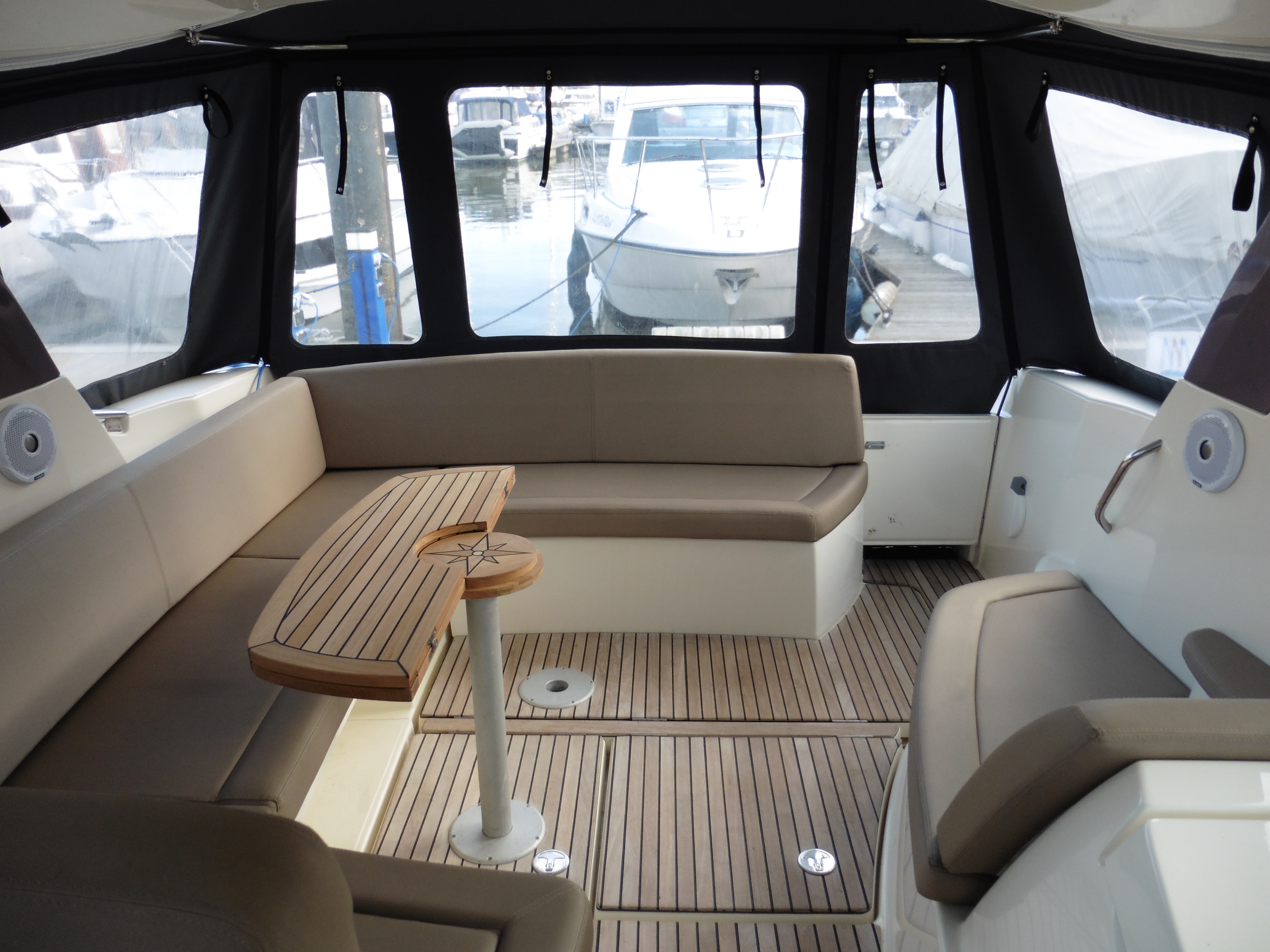 Large U shaped cockpit saloon seating area/ convertible Sun Bed.