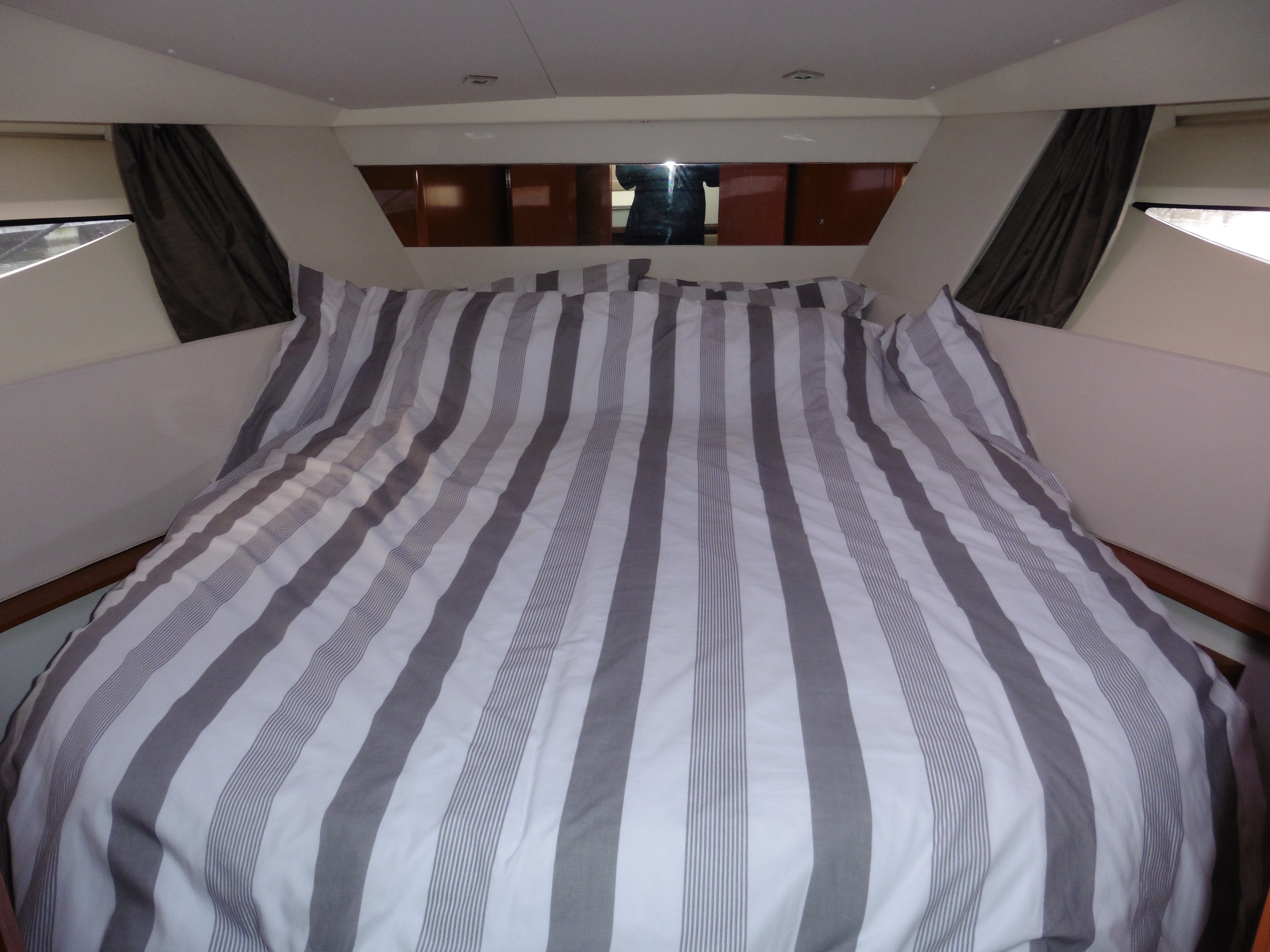 Master cabin forward with centreline double berth and wardrobe to starboard