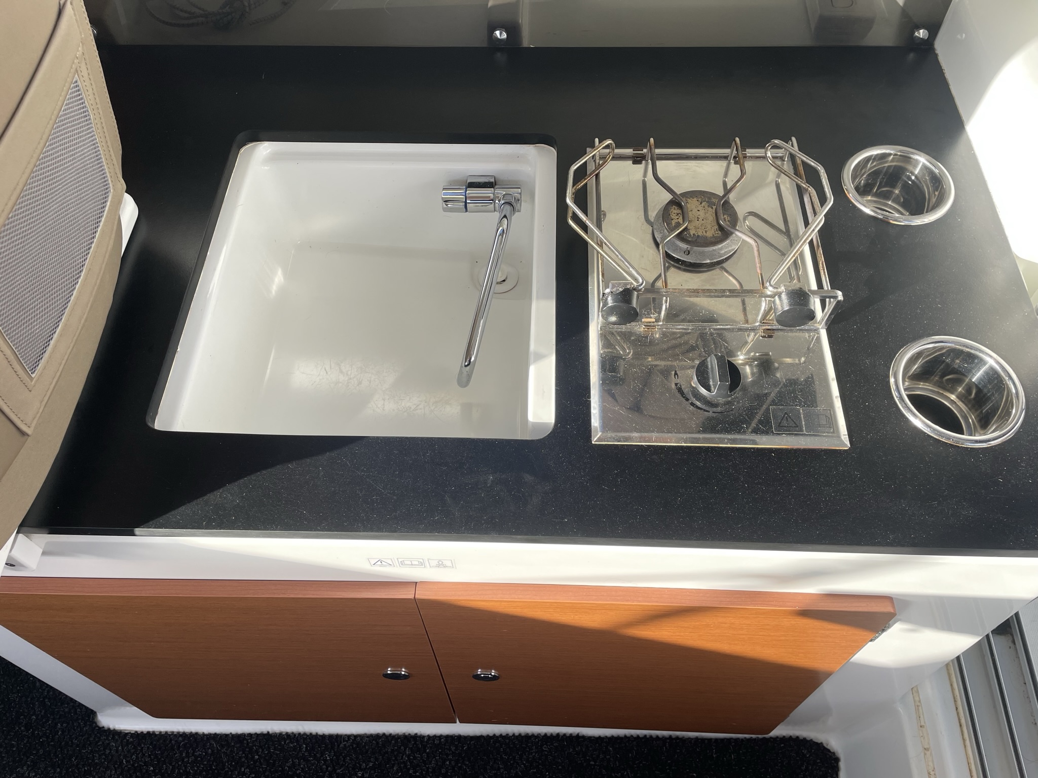 Galley 'Lux' c/w black worktop, s/s glass holders & gas system with single burner