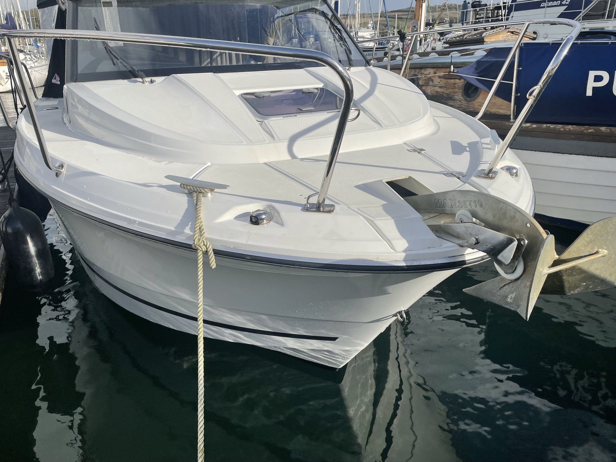 Ancasta Falmouth have for sale this 2017 model of the ever popular Merry Fisher 795. Powered by the Yamaha 150hp outboard engine. Designed to cruise offshore comfortably, this compact boat packs a punch, handling coastal trips with ease getting you to your destination swiftly and safely whether it be the local fishing spot or a family trip to the beach the 795 will do it all! Beautifully designed to offer plenty of space above and below decks and accommodation for four. A fantastic boat offering a considerable saving on buying a new vessel.