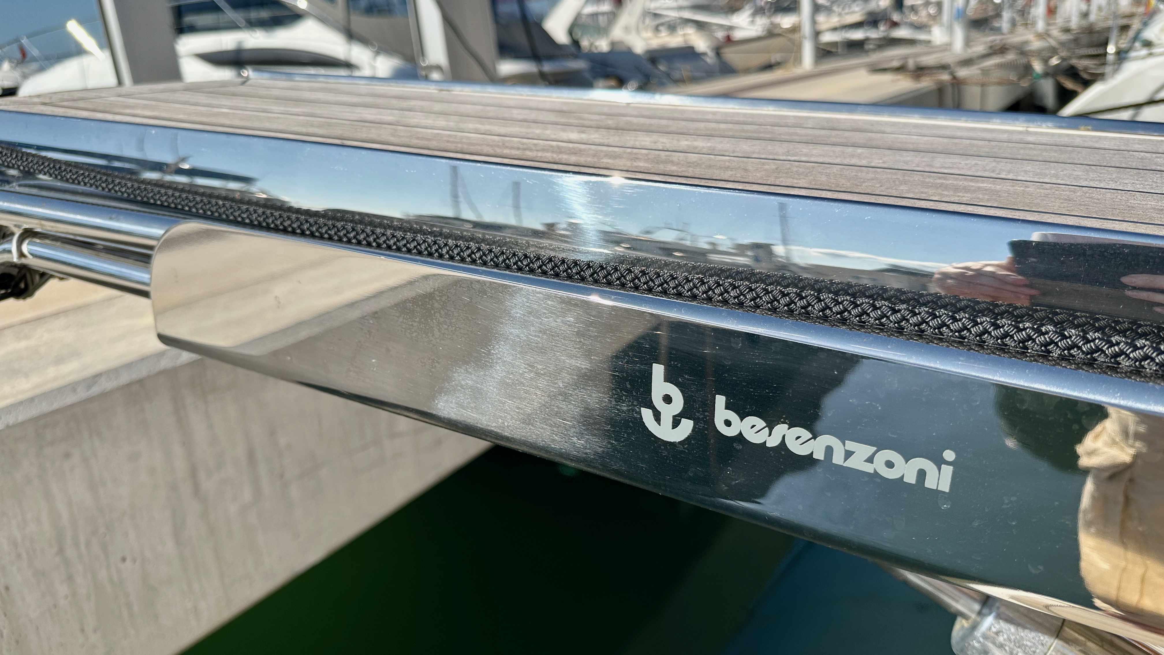 Substantial timber capped gunwales with stainless guard fencing above surrounding "walk around" side decks, cockpit and foredeck. .