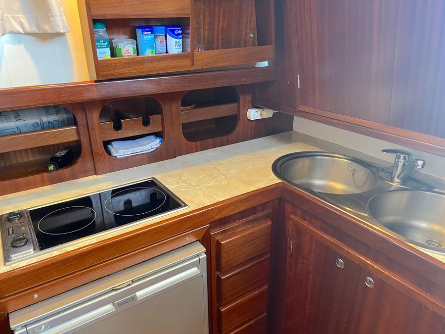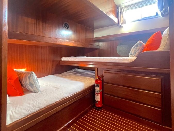 SLEEPS FOUR GUESTS IN TWO CABINS WITH THE GALLEY TABLE COVERSION FOR UP TO SIX GUESTS