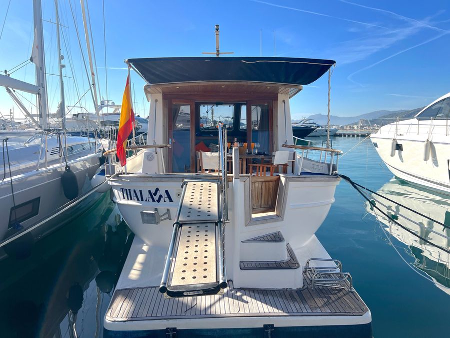 Este yate clásico tiene más de 12 metros de largo y 5 metros de ancho y por lo tanto ofrece un amplio espacio para toda la familia con una plataforma de baño de fácil acceso.