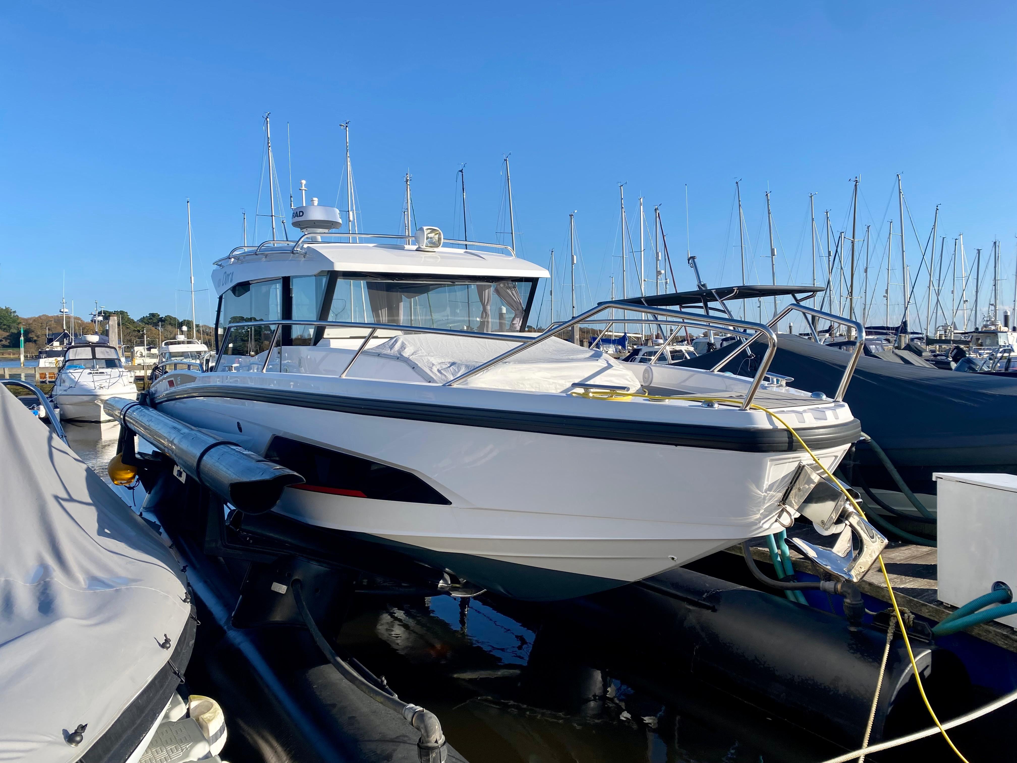 'Dora' is a 2022 Nordkapp Gran Coupe 905 which provides excellent accommodation combined with performance. Powered by a 300hp Mercury Verado V8 providing speeds of up to 40 knots she is sure to bring a smile to your face, she has been stored on an 'Air-berth' out of the water, this is also available at separate negotiation as well as the possibility to take on the current mooring. A viewing is highly recommended!