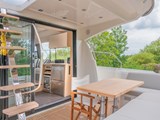 Flybridge bimini in Sunbrella 'Steel' with LED downlighters