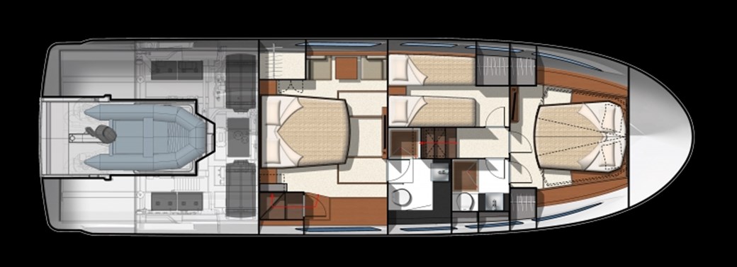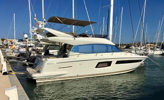 The Prestige 500 has an impressive layout with the separate access to the master stateroom, two guest cabins forward, one with a double/scissor berth and one with two large single berths (convertible to double), spacious saloon and sociable galley. The luxury continues into the exterior with a great cockpit space and fantastic flybridge with wet bar. This, coupled with the performance from the IPS 600 435hp diesel engines, makes her truly stand out from the crowd.