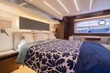 Separate access to a full-beam master stateroom amidships with double berth with sprung mattress, storage cupboards and drawers, desk/dressing table to port, separate access to walk-through wardrobe and TV.