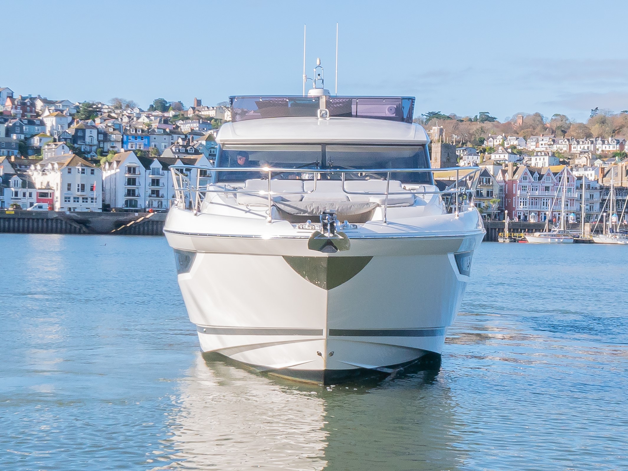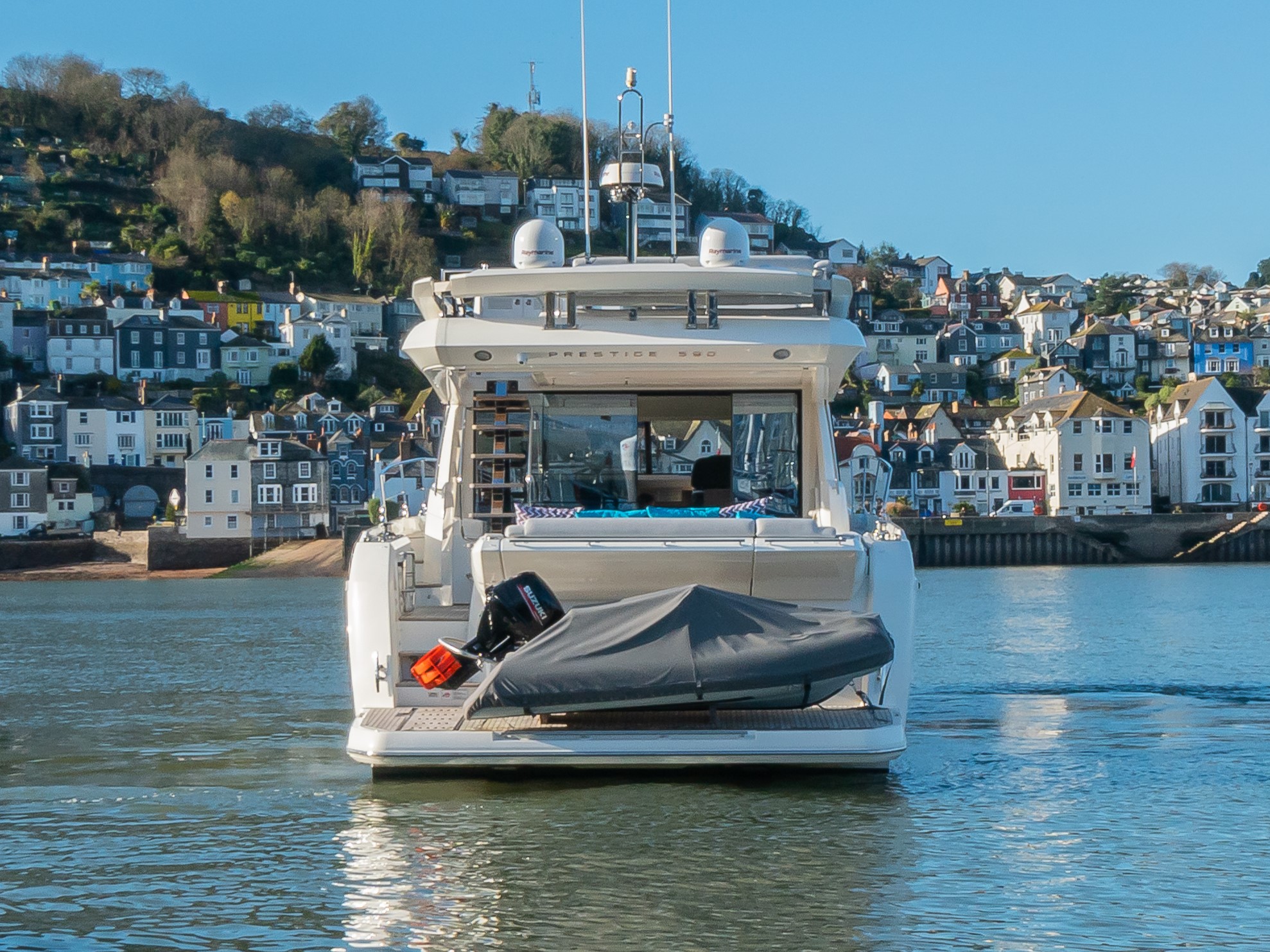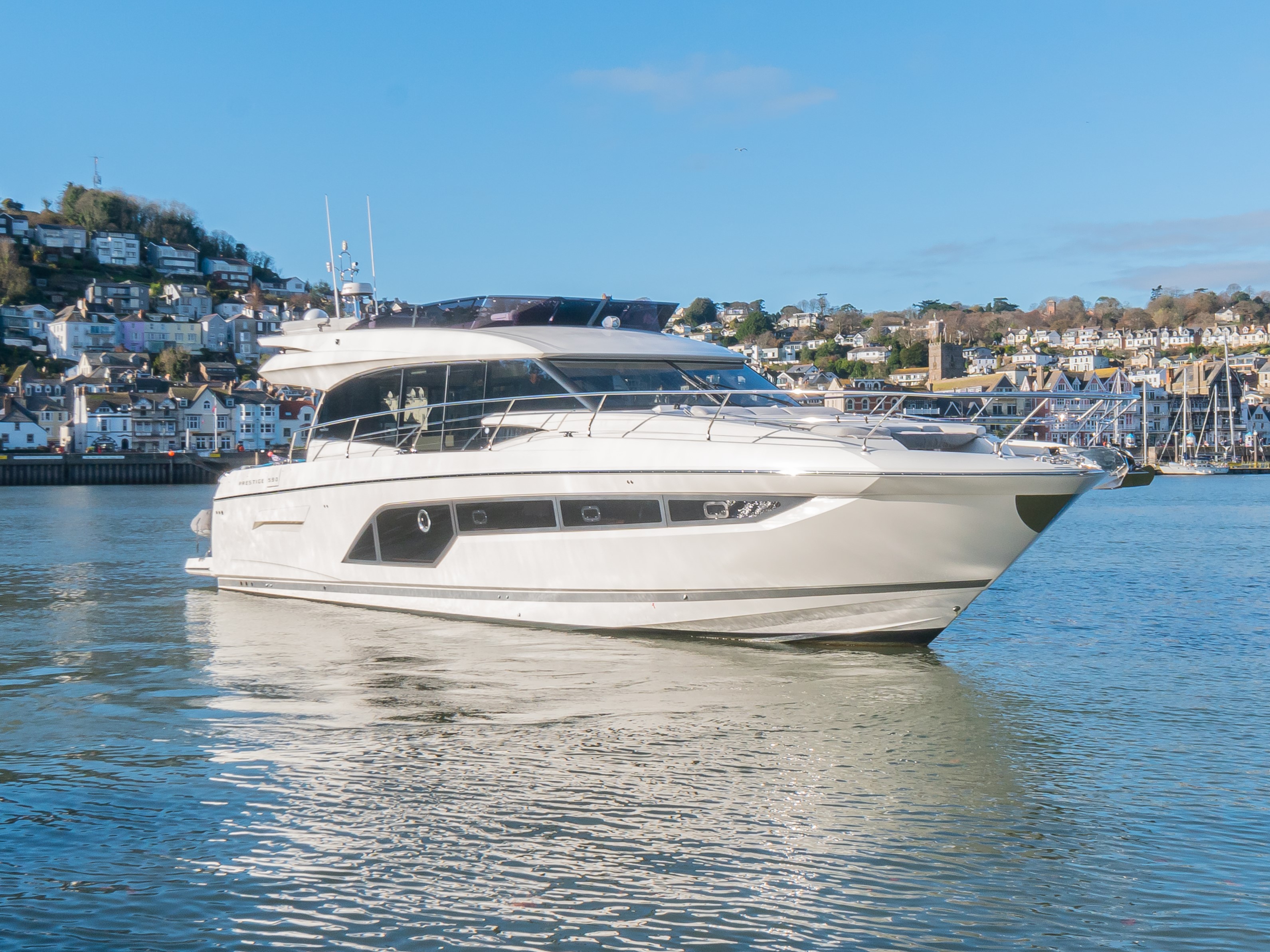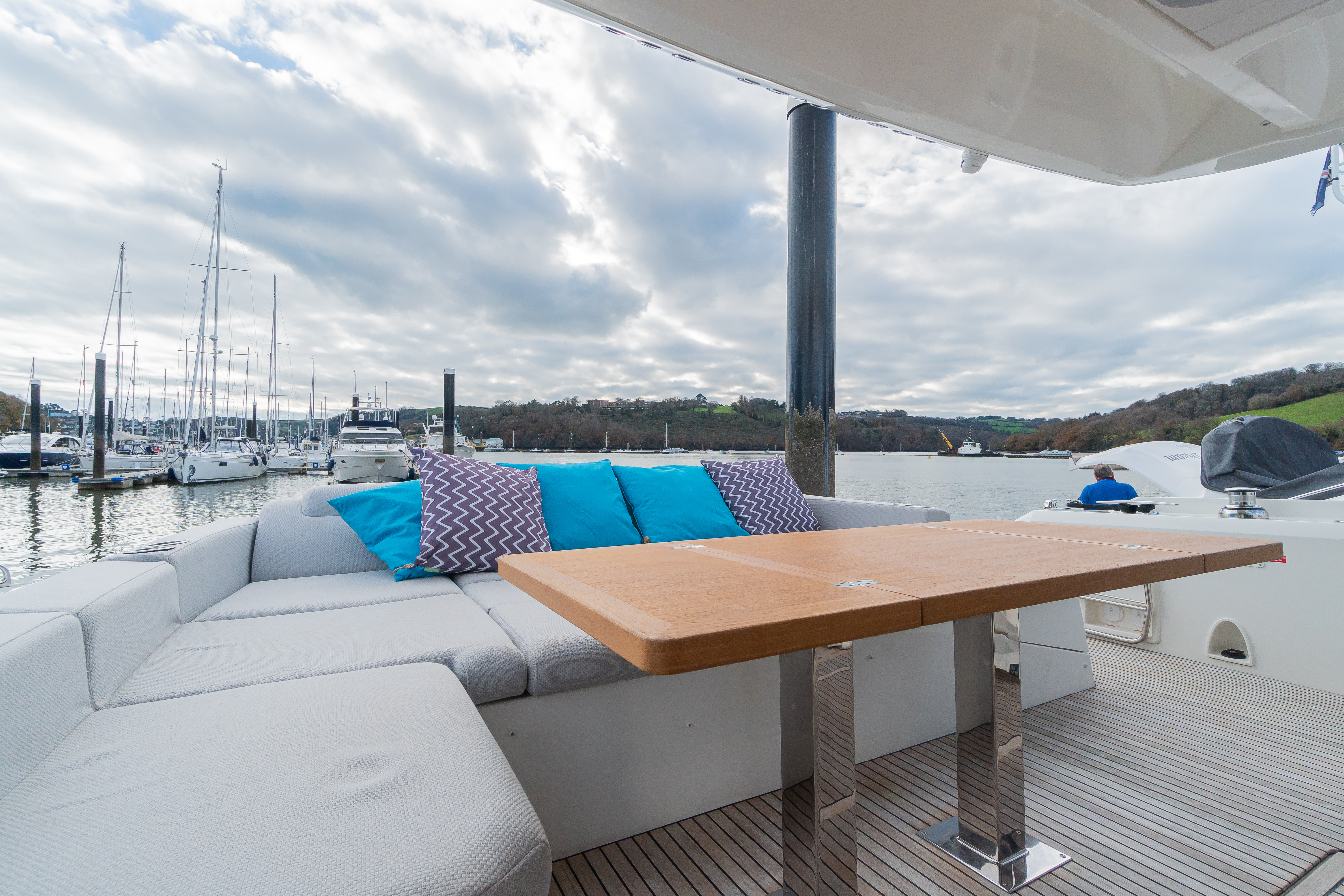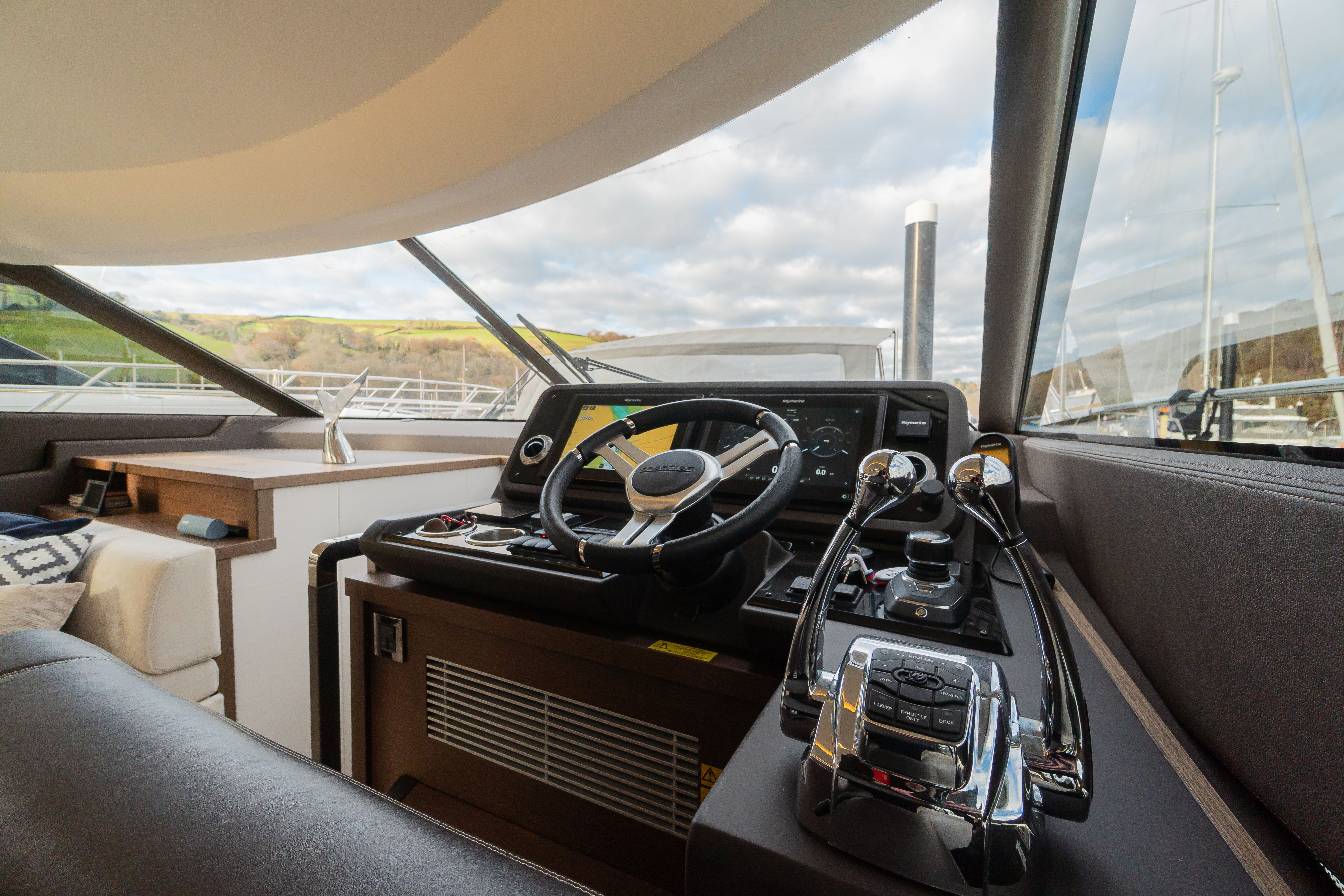 Powered by twin Cummins QSC 8.3 600hp diesel engines on Zeus pod drives. This option also includes joystick control which makes close-quarter handling a breeze, and with the addition of Skyhook dynamic positioning, the Prestige 590 can be easily be crewed shorthanded. Lying afloat at Noss Marina, Dartmouth and available to view by appointment.