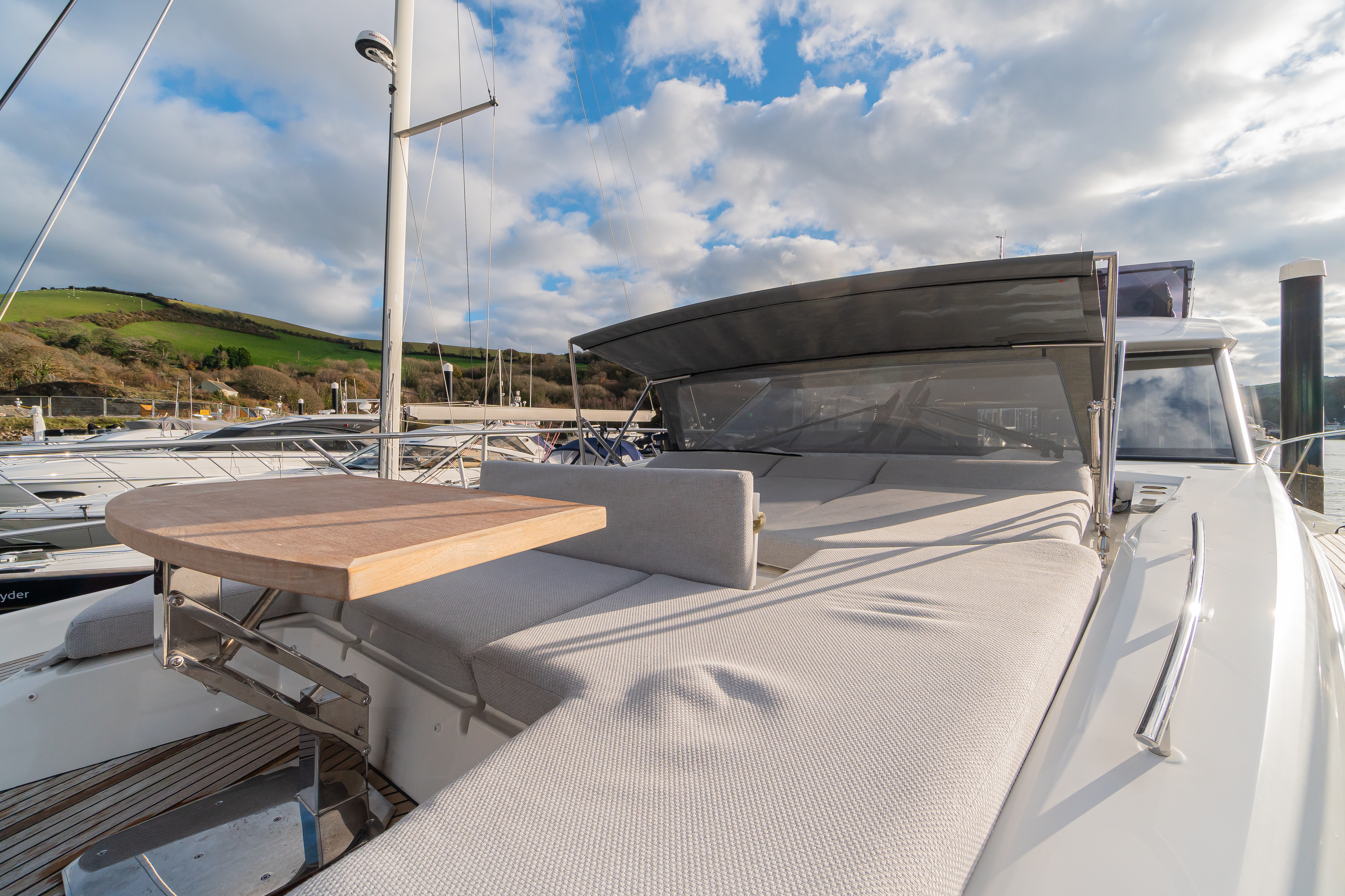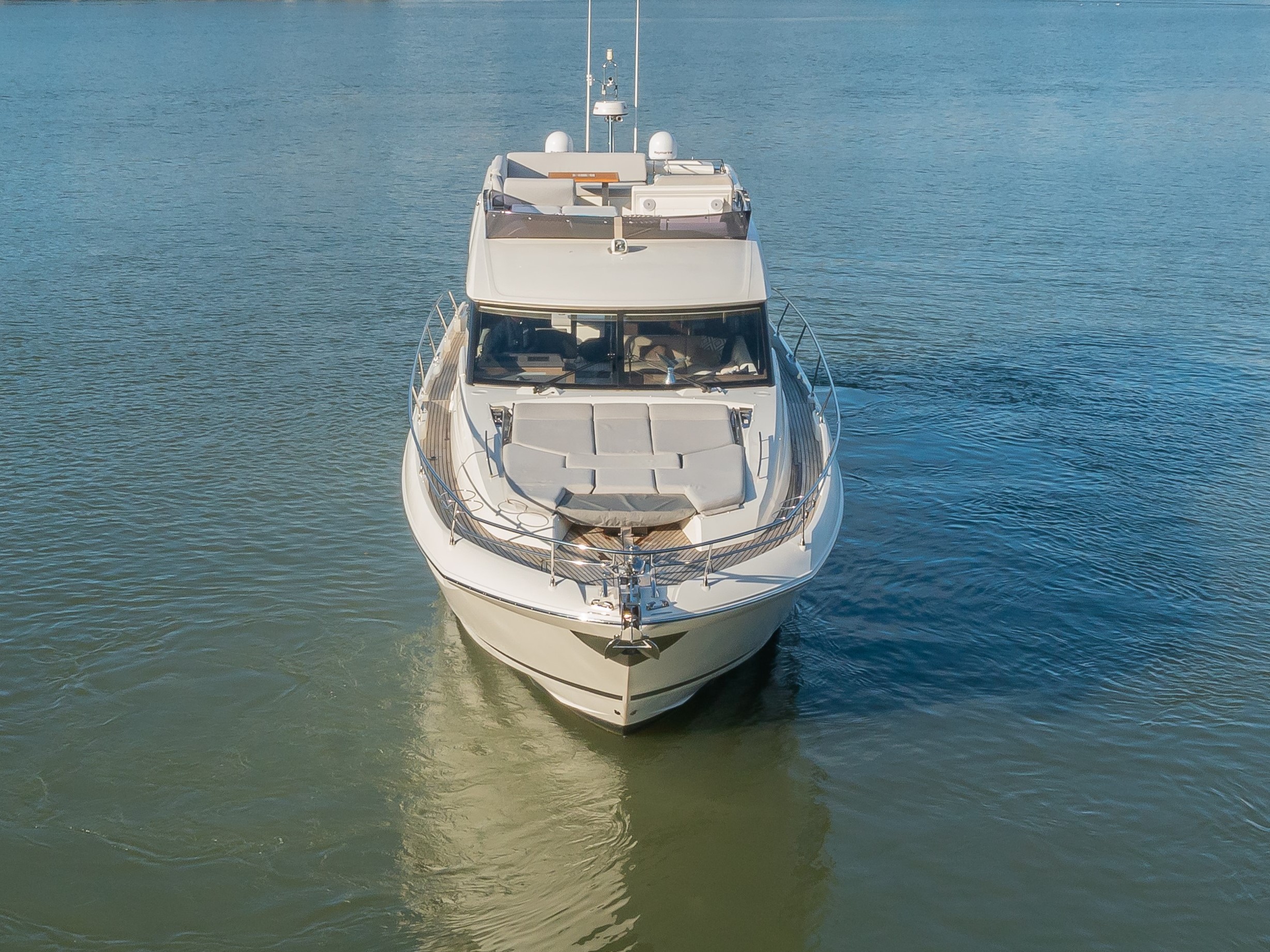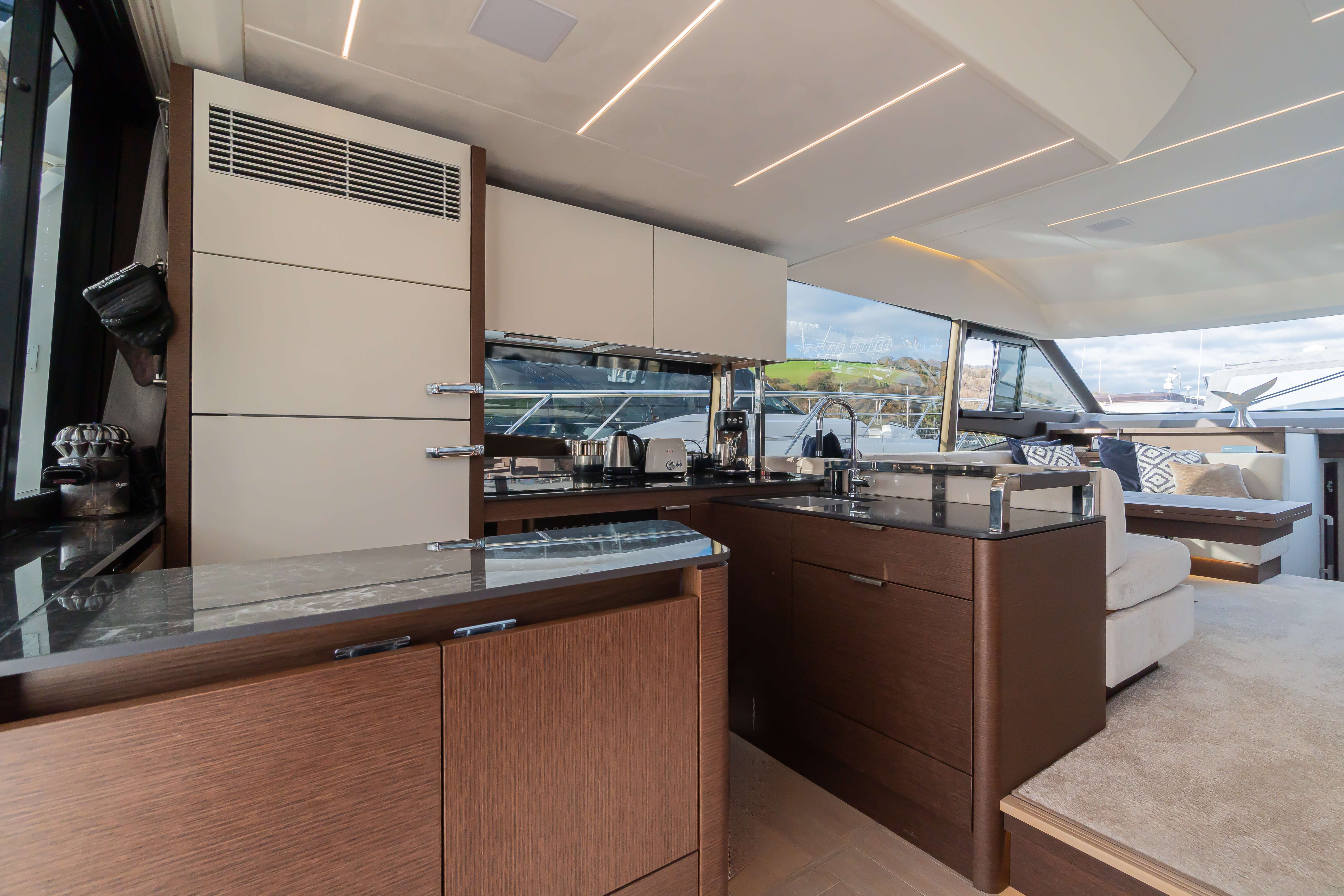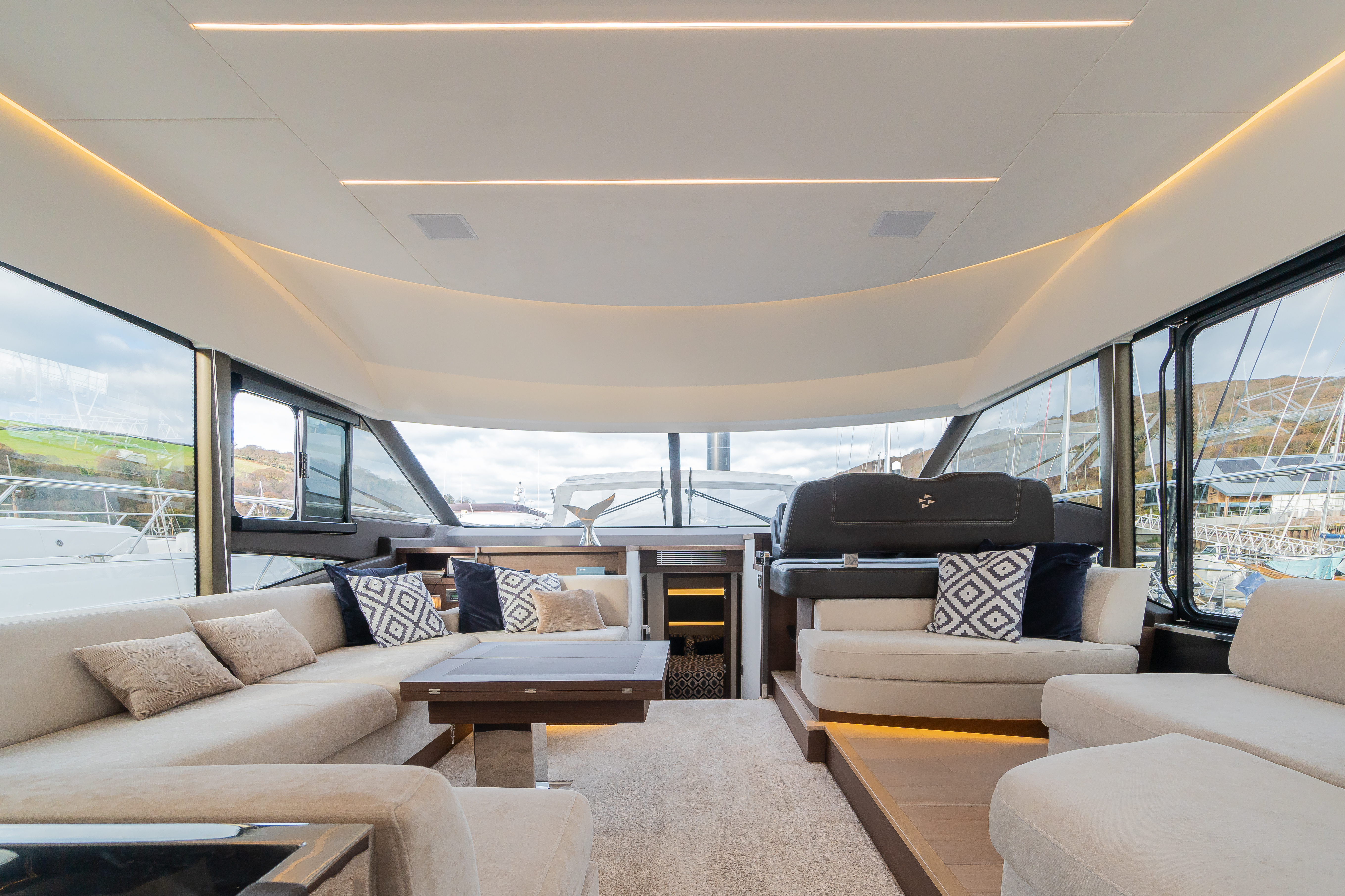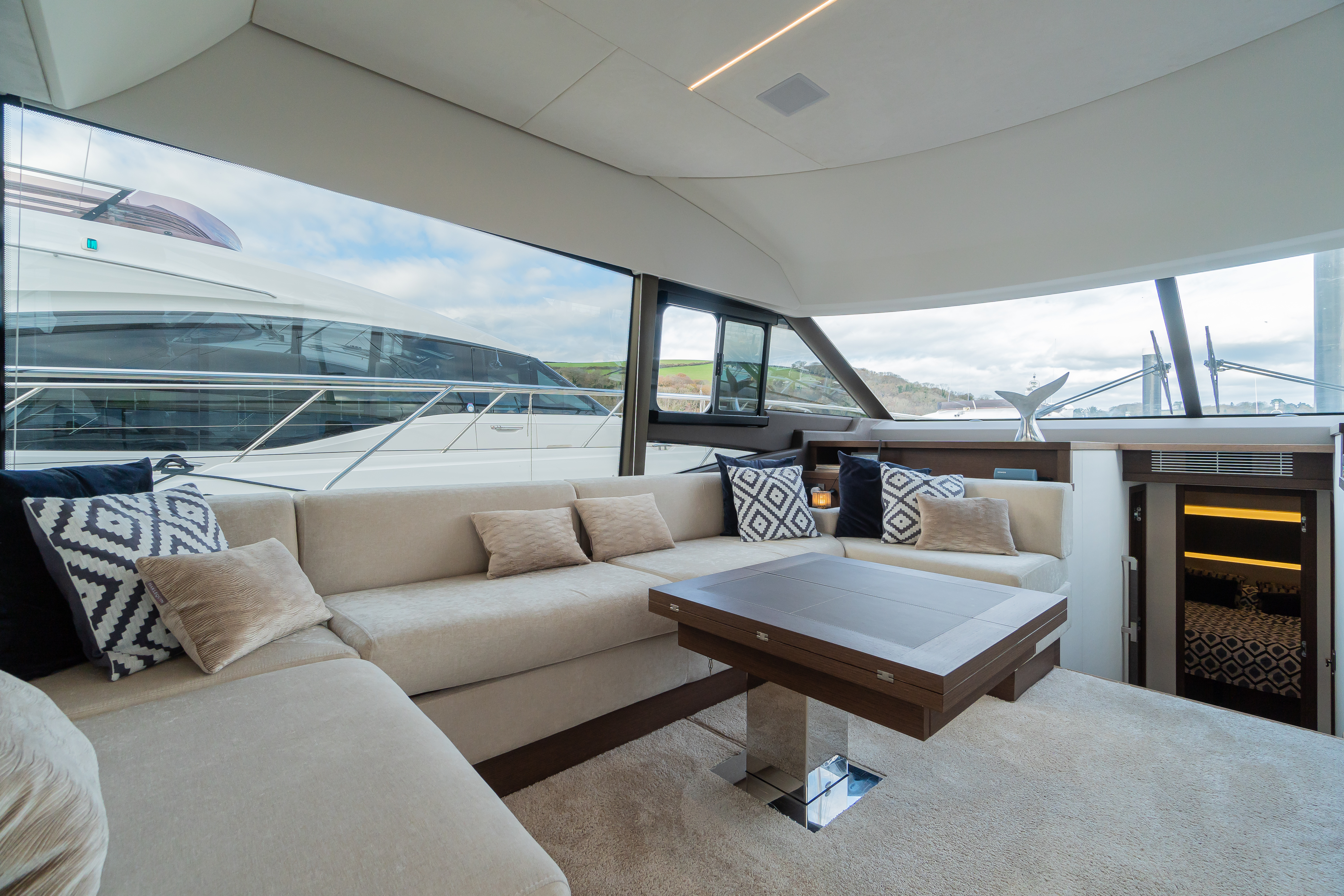 Powered by twin Cummins QSC 8.3 600hp diesel engines on Zeus pod drives. This option also includes joystick control which makes close-quarter handling a breeze, and with the addition of Skyhook dynamic positioning, the Prestige 590 can be easily be crewed shorthanded. Lying afloat at Noss Marina, Dartmouth and available to view by appointment.