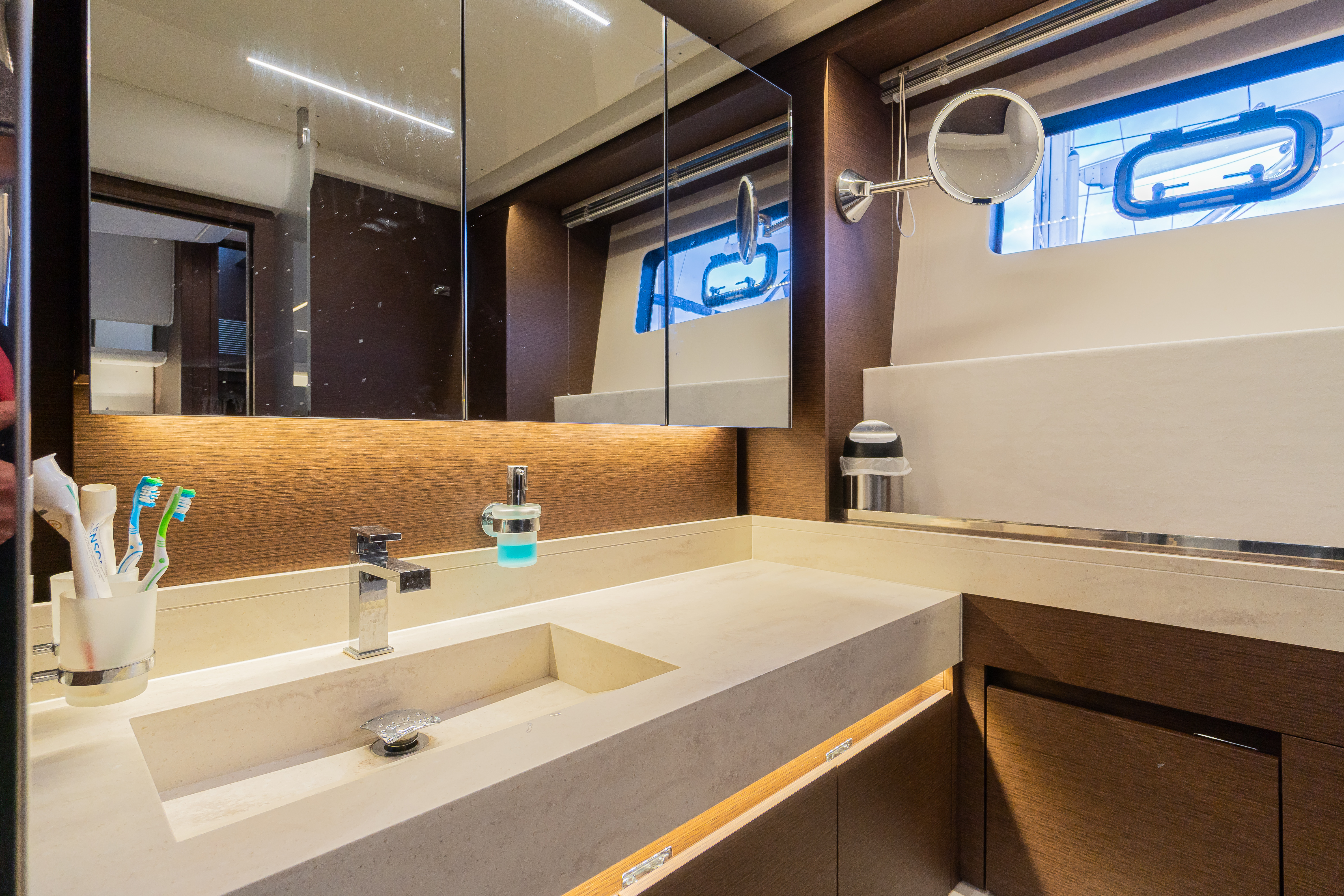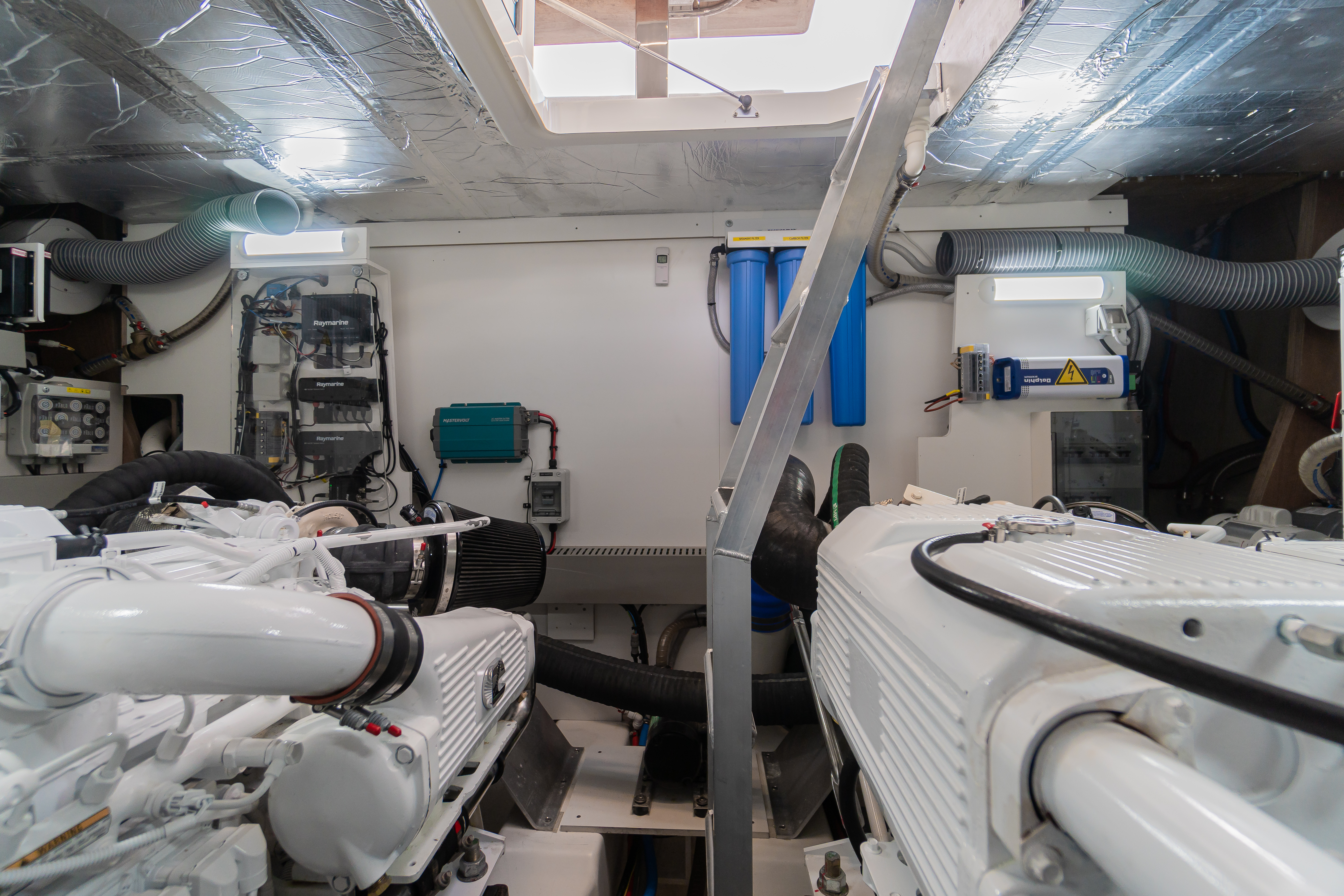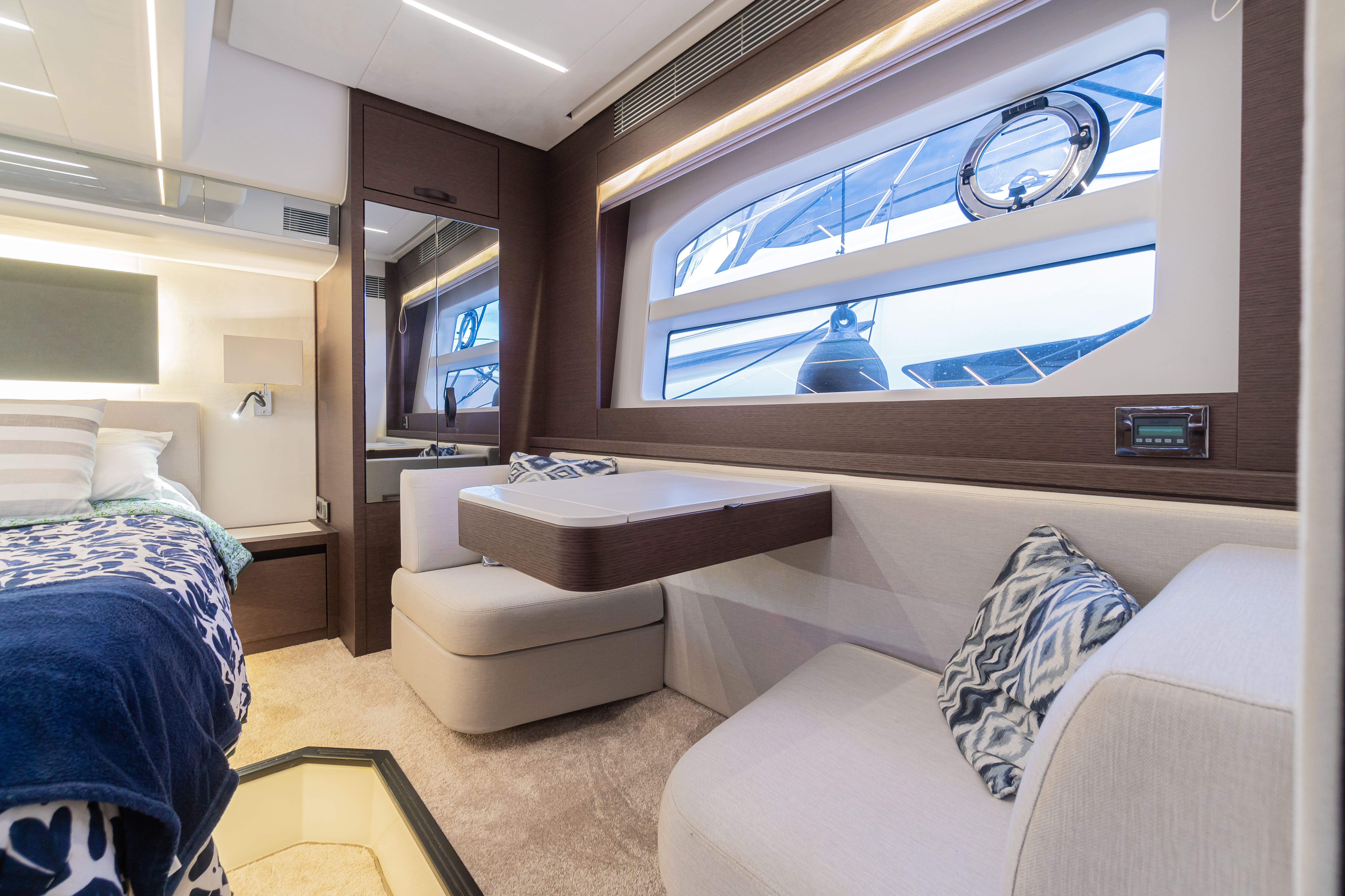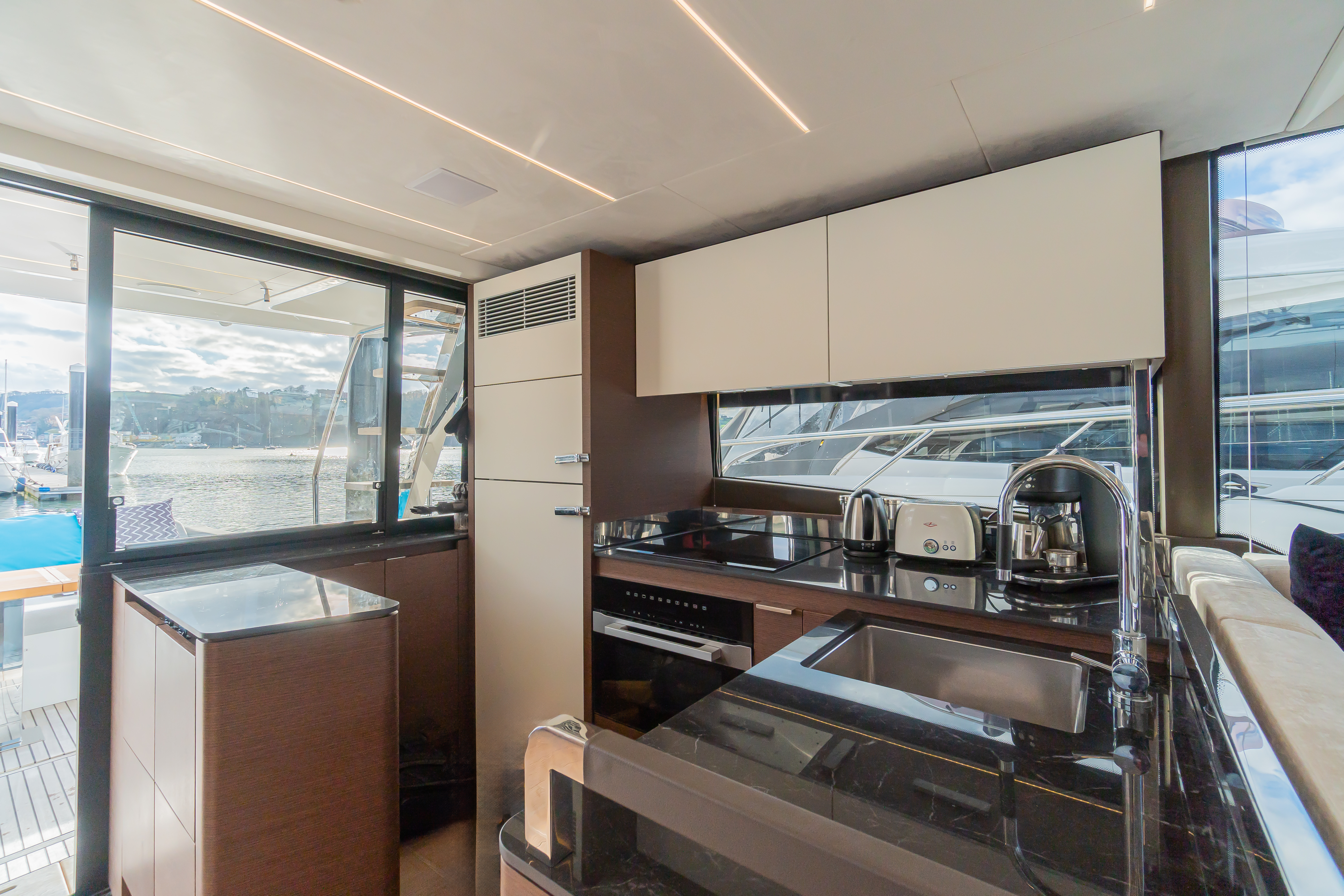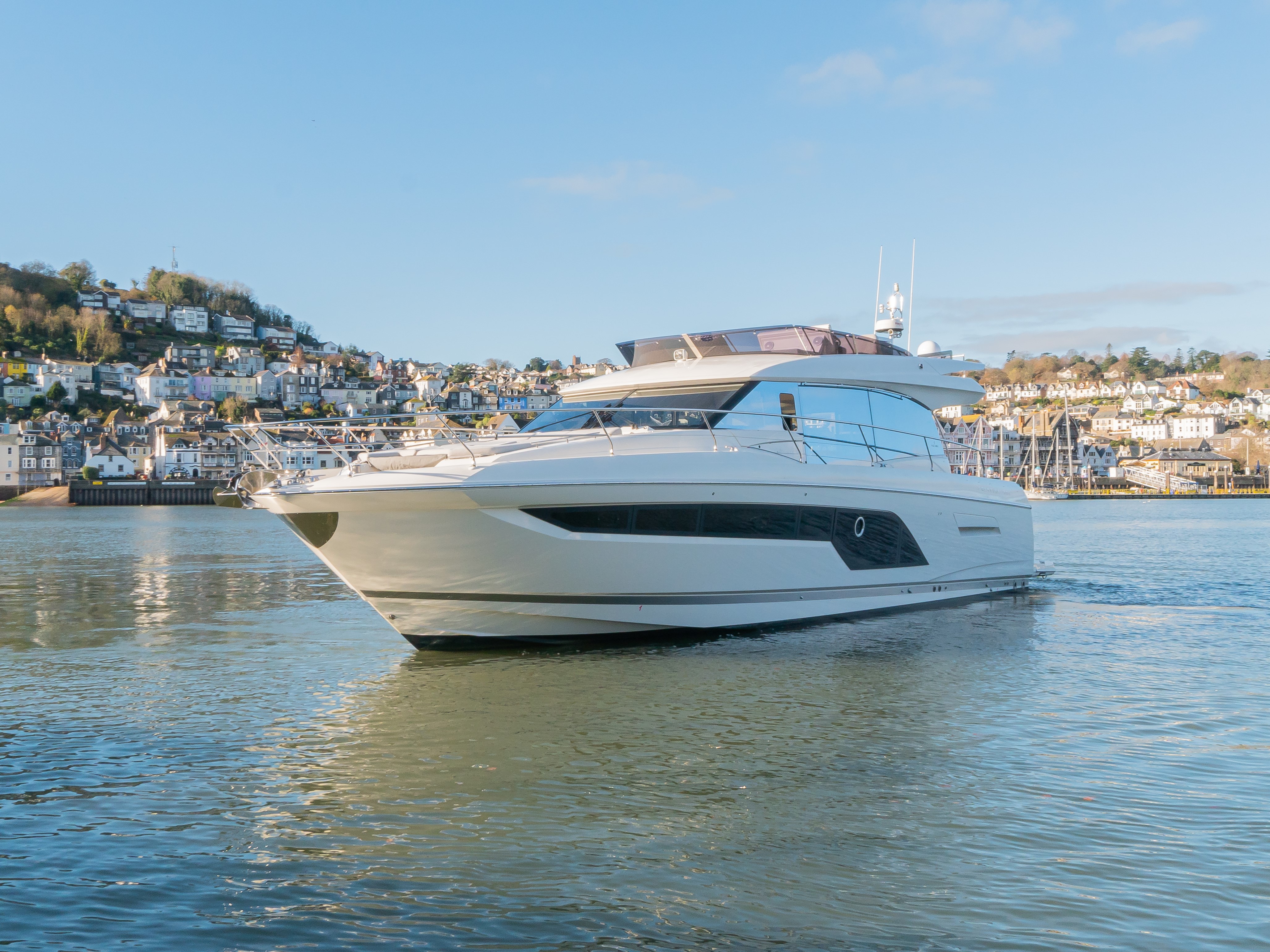 Powered by twin Cummins QSC 8.3 600hp diesel engines on Zeus pod drives. This option also includes joystick control which makes close-quarter handling a breeze, and with the addition of Skyhook dynamic positioning, the Prestige 590 can be easily be crewed shorthanded. Lying afloat at Noss Marina, Dartmouth and available to view by appointment.