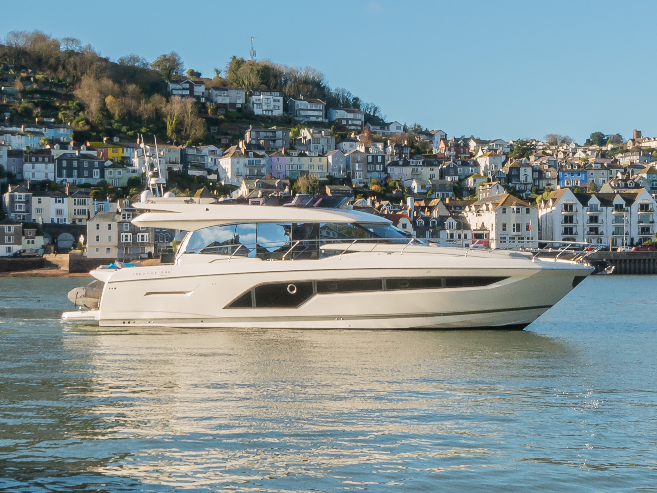 Flybridge cruiser built by Prestige, France to the designs of Garroni, JP Concepts & Prestige Engineering.