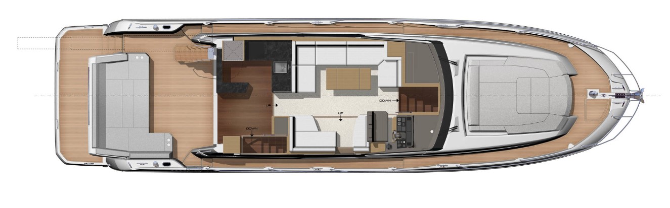 Teak cockpit, bathing platform, sidedecks and flybridge