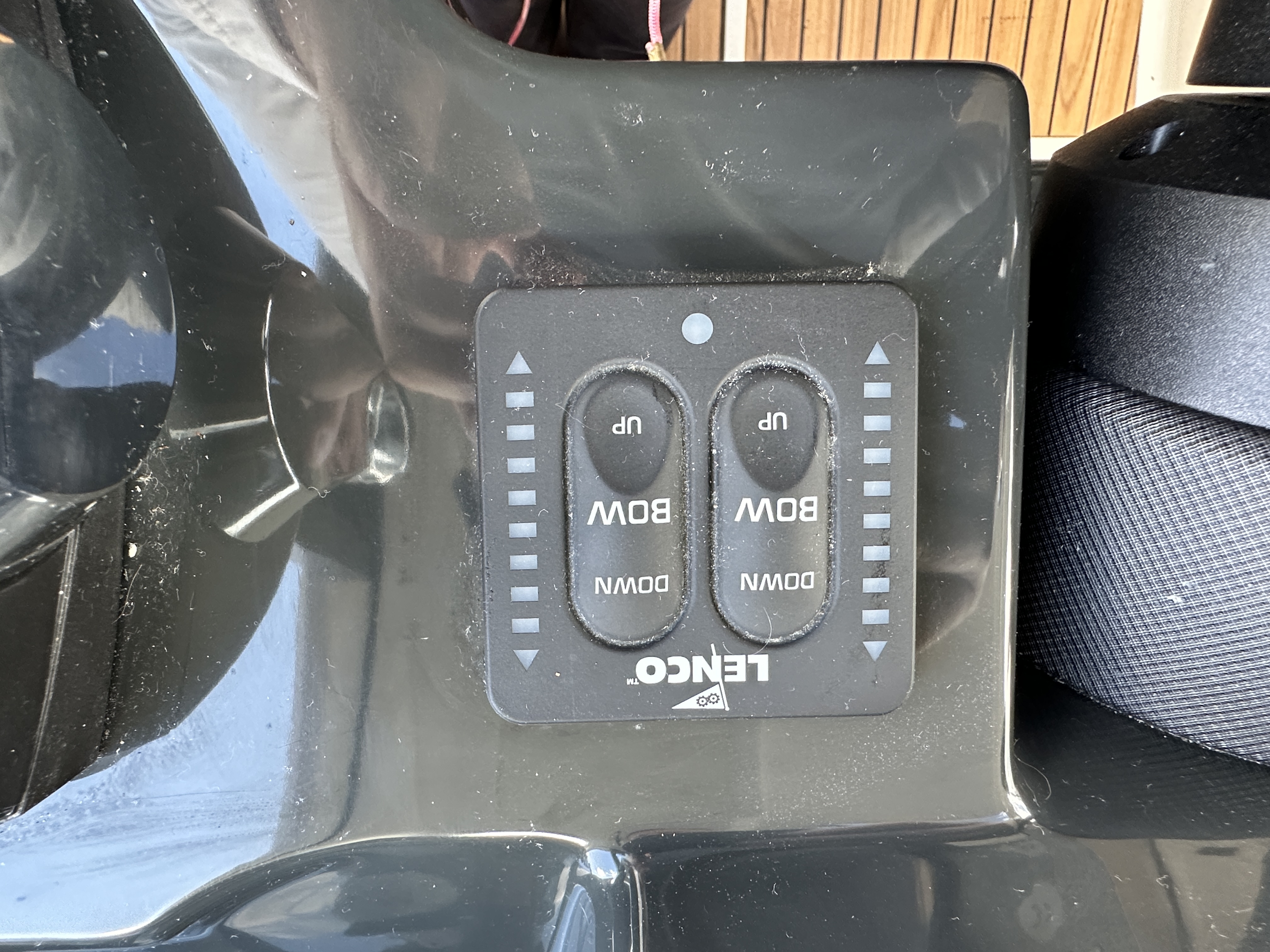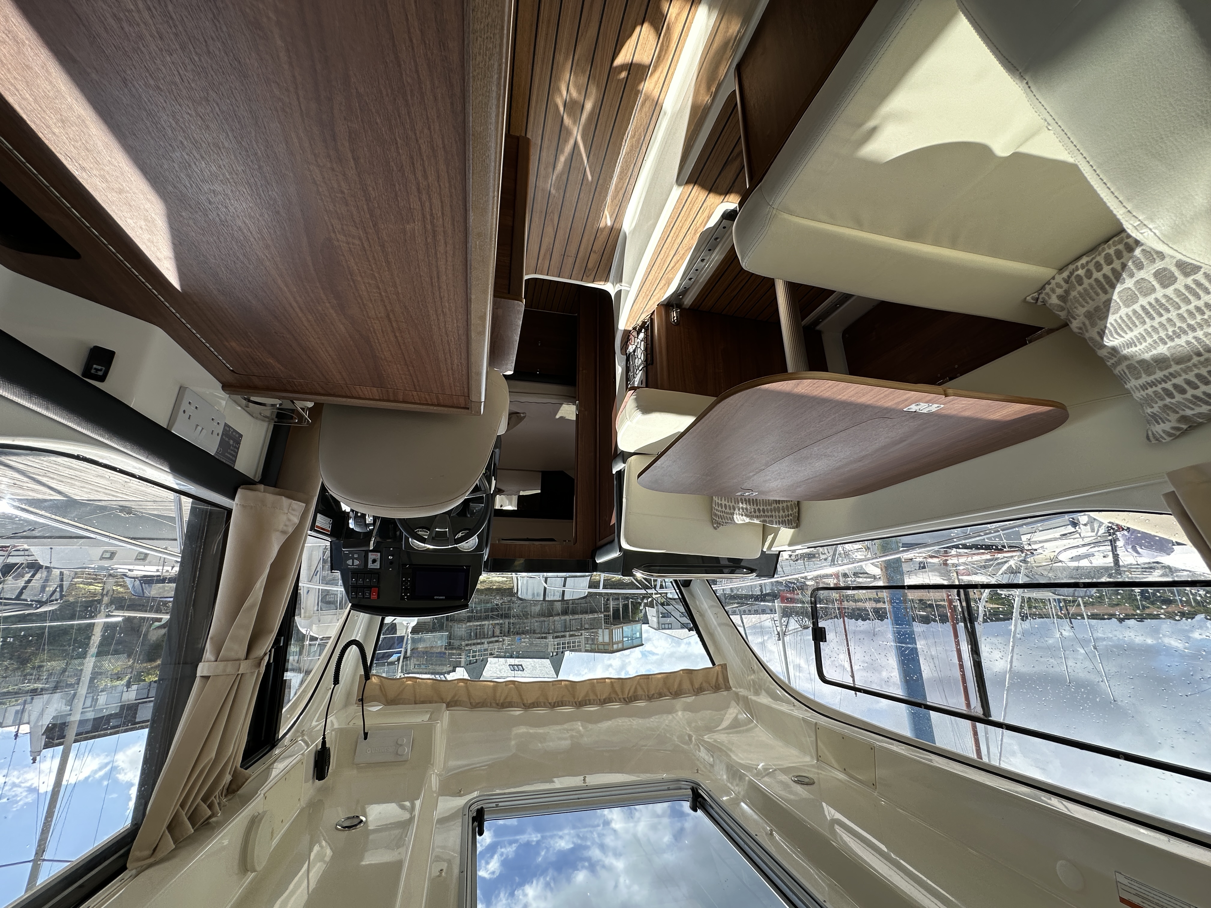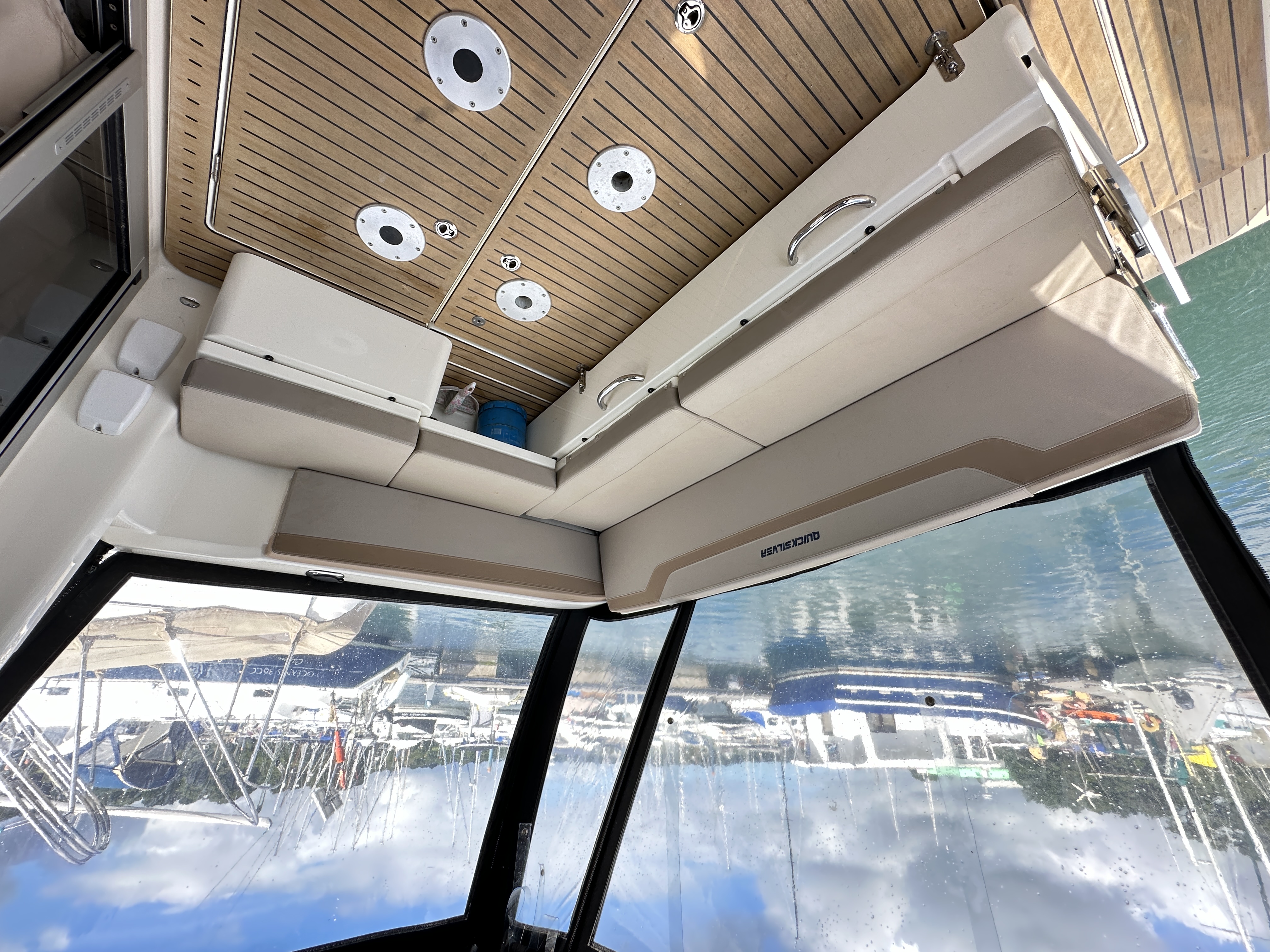 Aft cockpit with full cockpit enclosure, sliding rear bench seat which converts to large sun pad, cockpit table and access to engine bay and storage area
