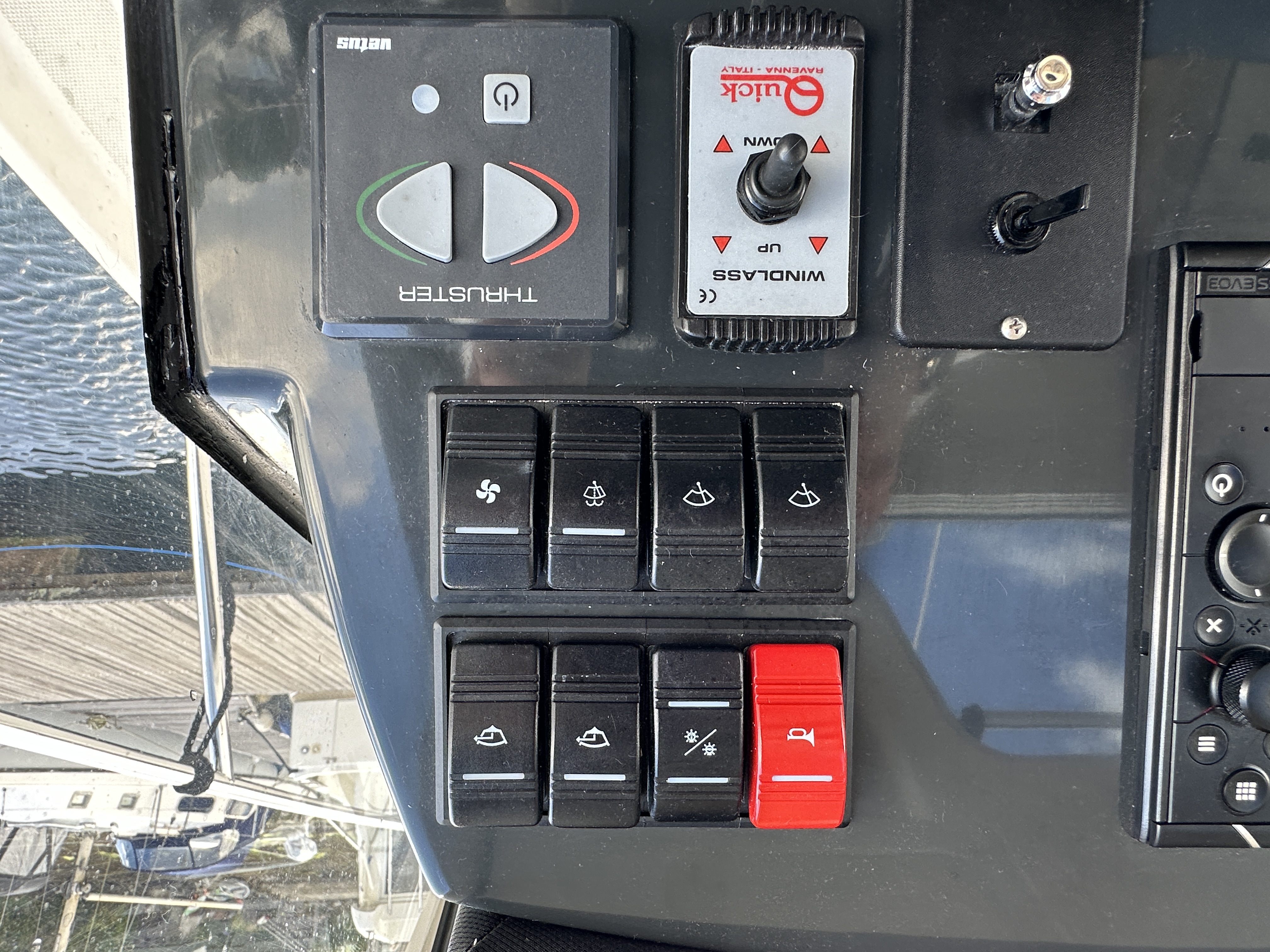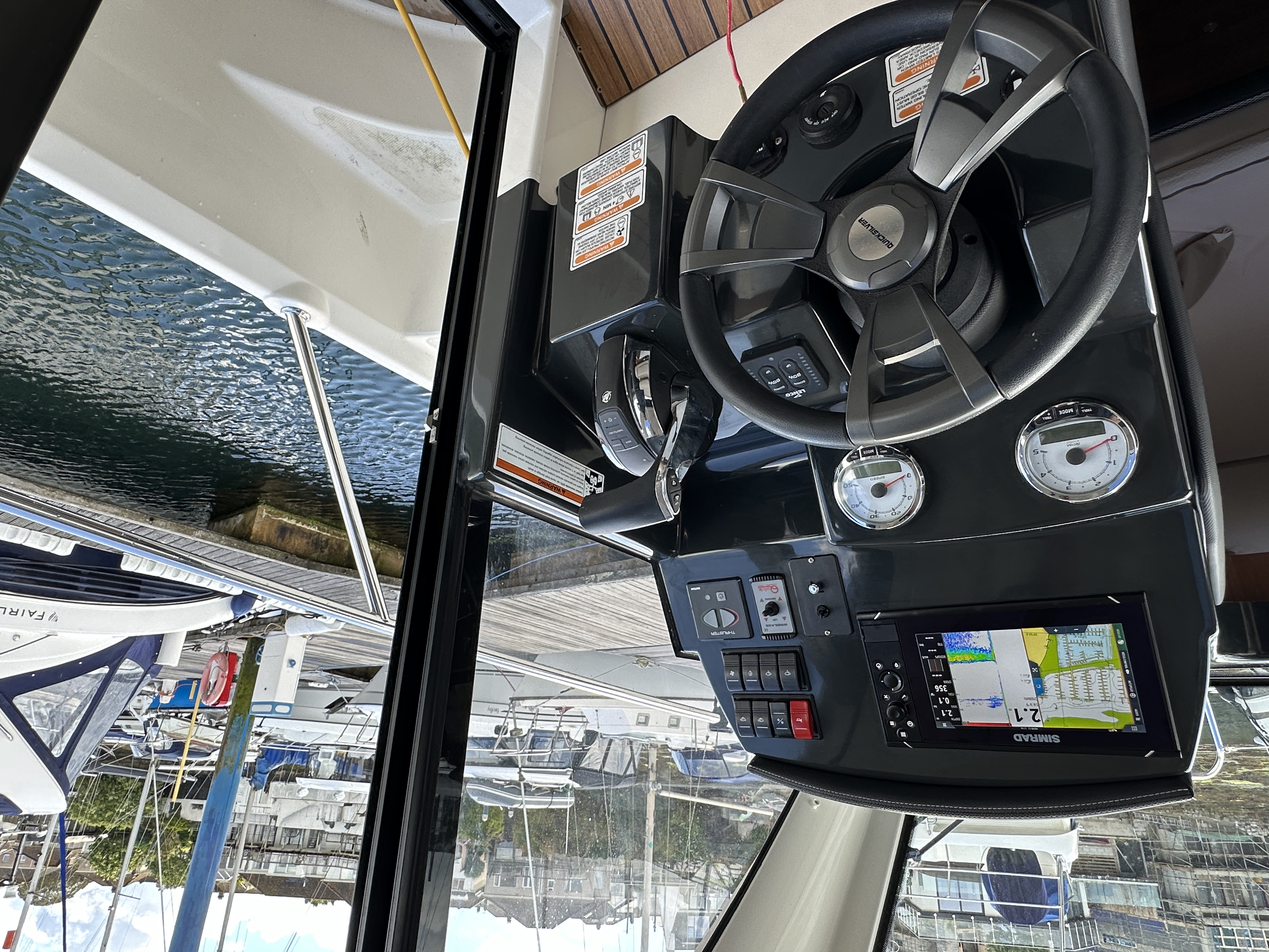 Helm area with adjustable helm seat with sliding door to spacious side deck