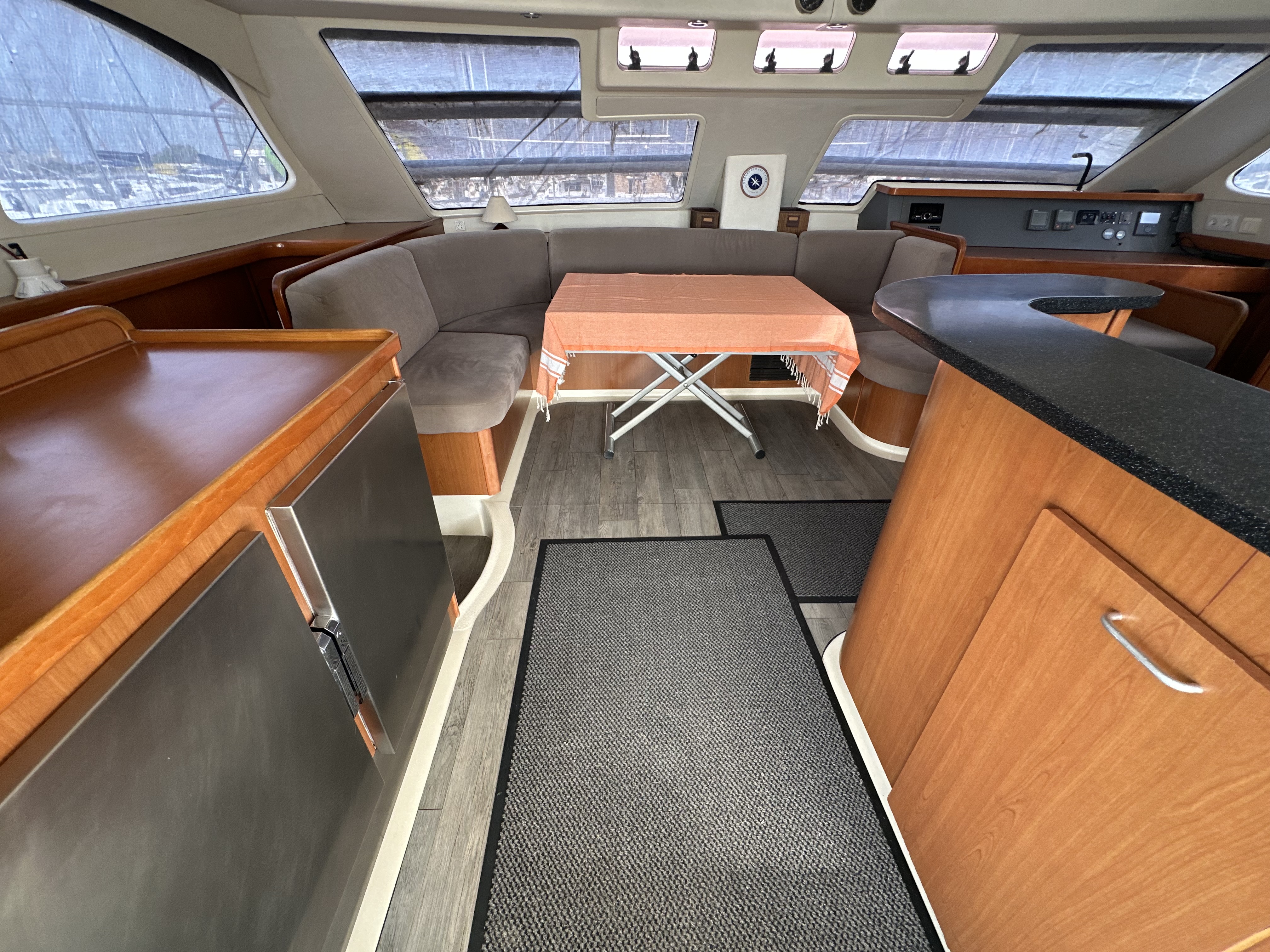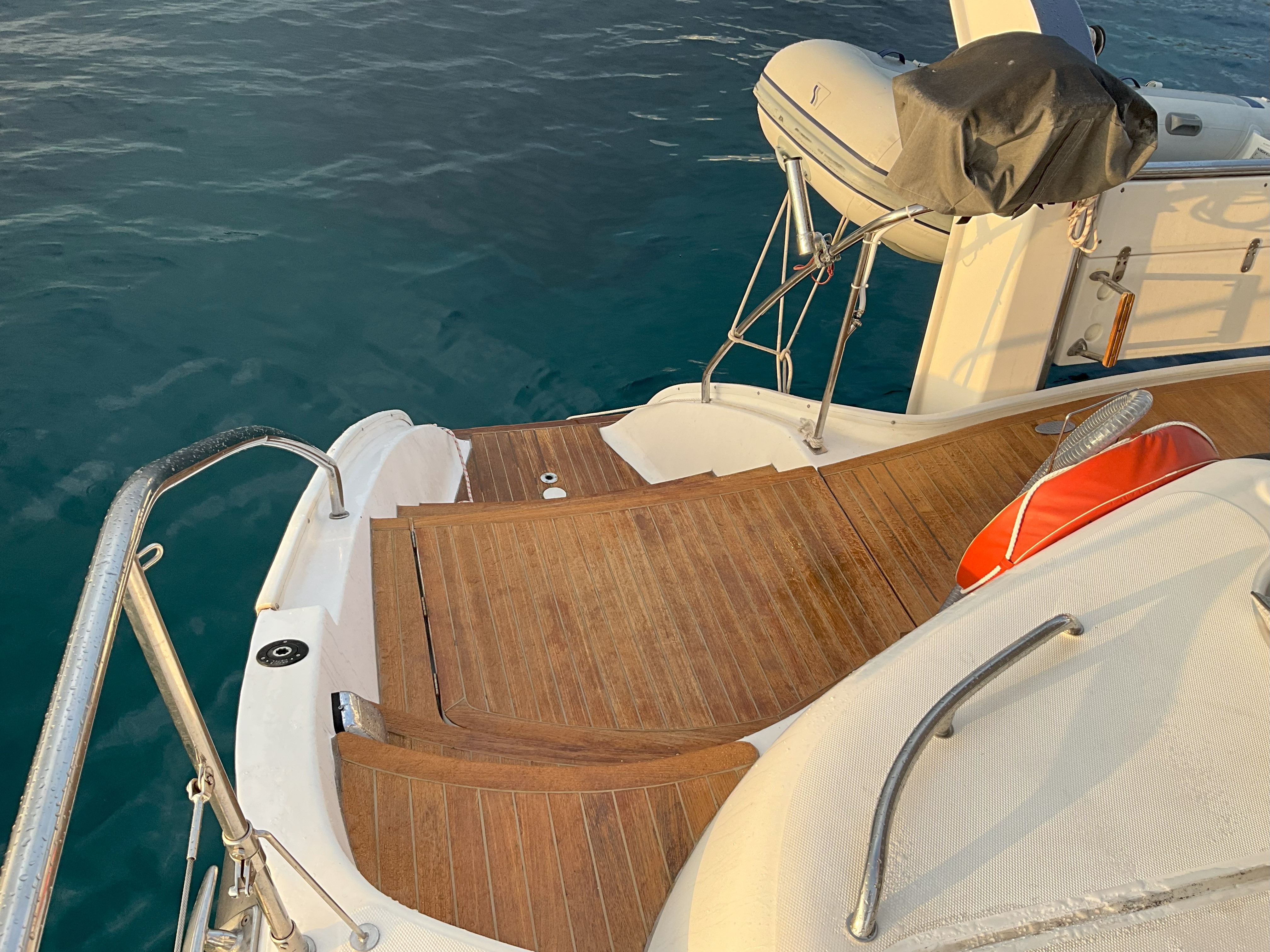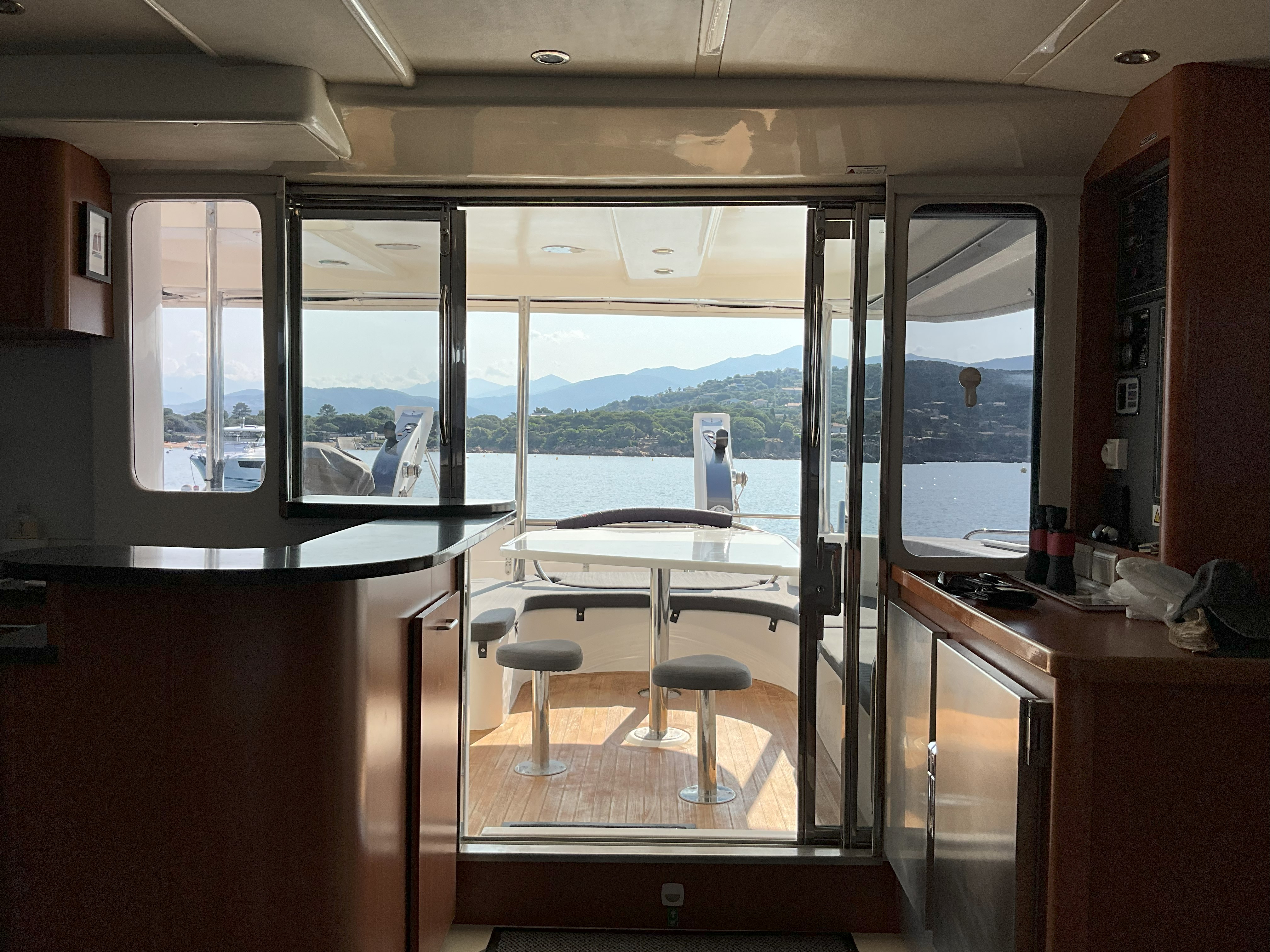 Equipments : reversible air conditioning, watermaker 60L/H, mase genset 9 KW(2018), 4 solar panels (1000W) on top of the flybridge, washer/dryer Brandt 8kg, freezer with 5 drawers, Highfield 3.4m dinghy with hard floor and yamaha 15hp enduro outboard engine.