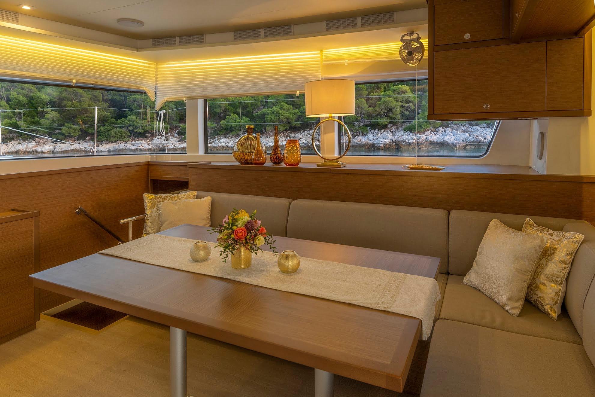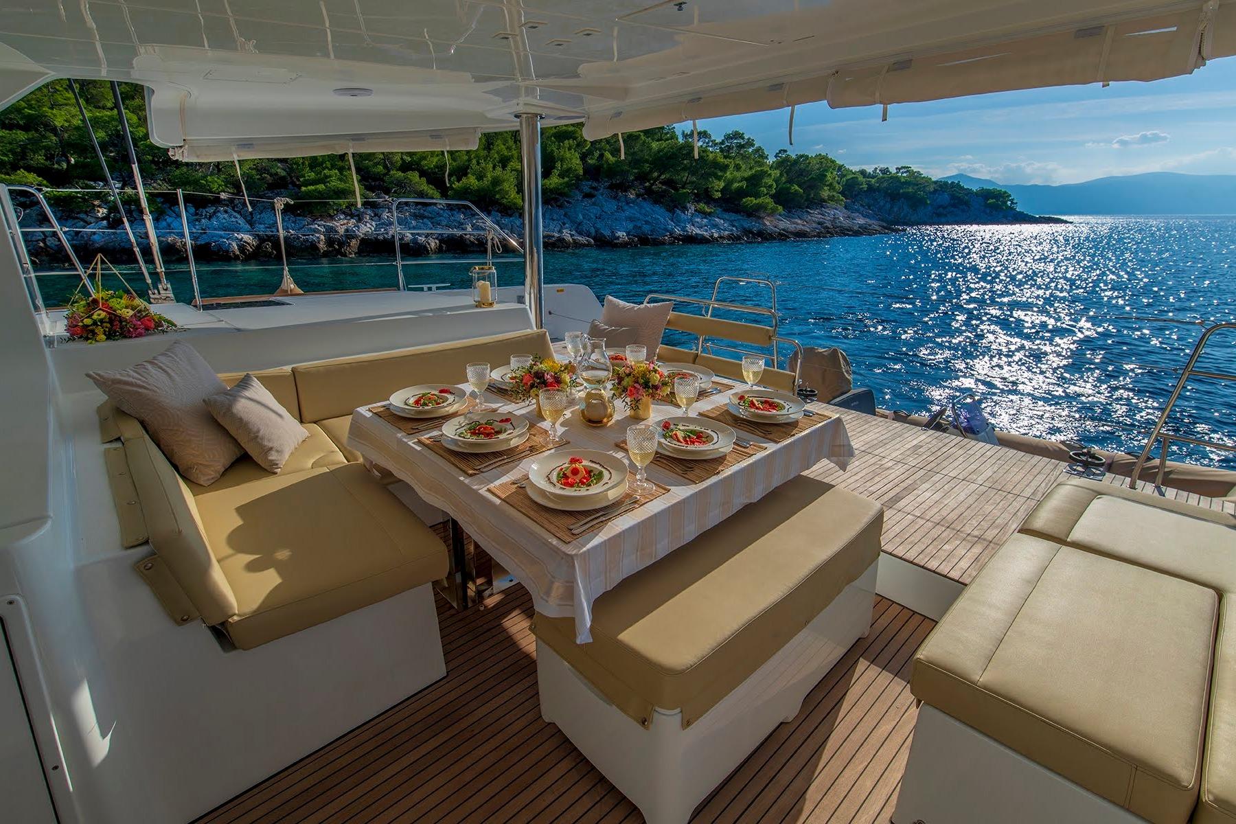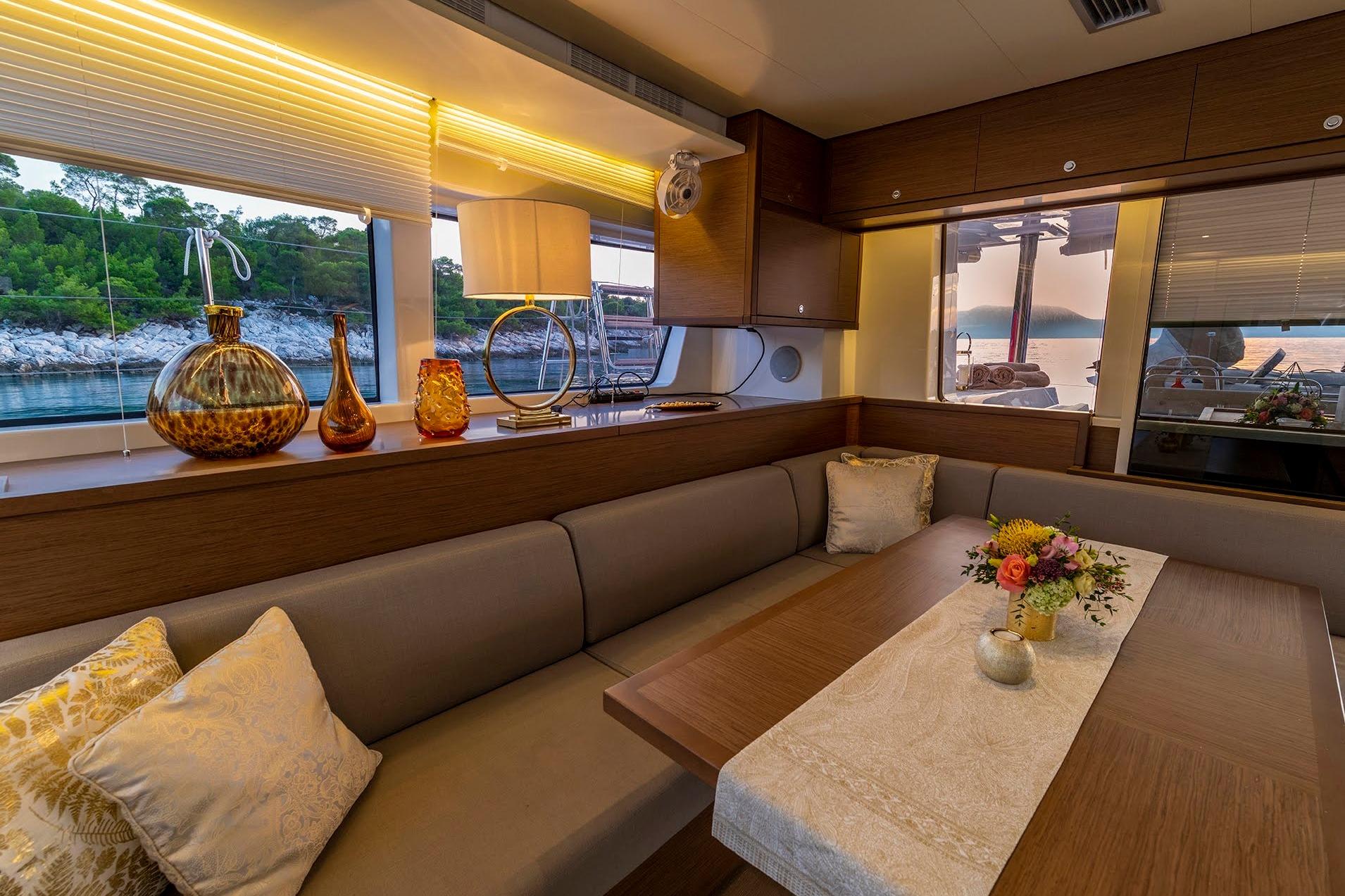 Designed for entertaining and extended cruising, the Lagoon 52 F comfortably accommodates up to 12 guests across five spacious cabins, each with its own private head, combining practicality with refined comfort.