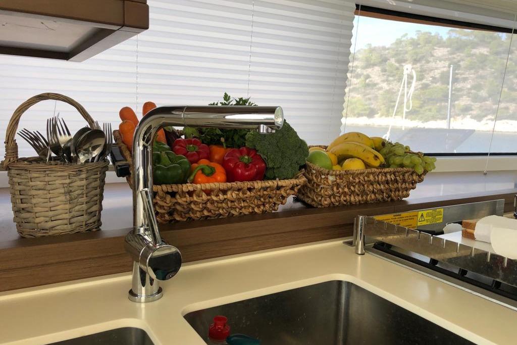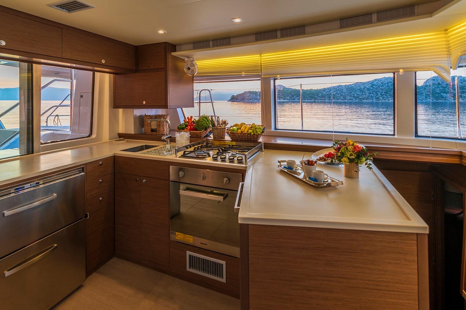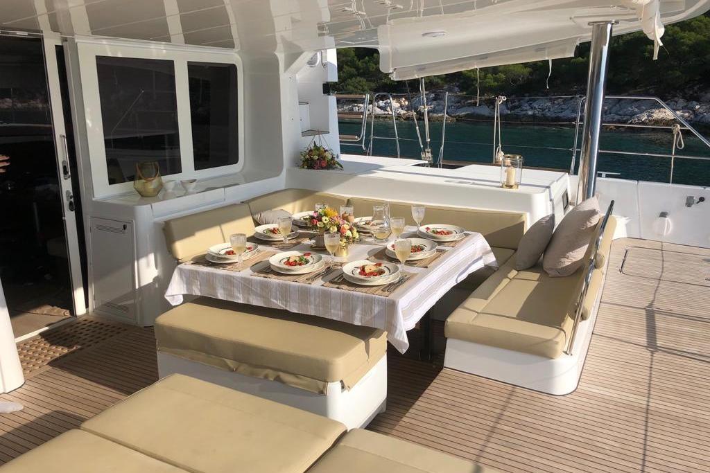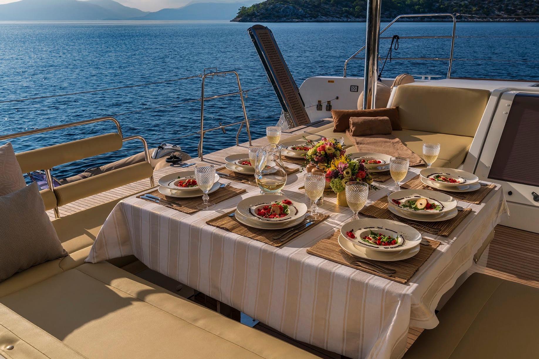 Designed for entertaining and extended cruising, the Lagoon 52 F comfortably accommodates up to 12 guests across five spacious cabins, each with its own private head, combining practicality with refined comfort.