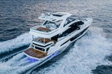 The foredeck can be transformed into an expansive seating area with a touch of a button for sunning or sunset cruising. The vast Flybridge is most impressive with plentiful seating, wet bar entertaining, and a carbon hardtop and the opening windows in the salon allow cool breezes to sinuously blend inside and outside spaces. With 4 cabins, 30+ knot performance, and amazing innovation the 680 FLY sets new benchmarks.