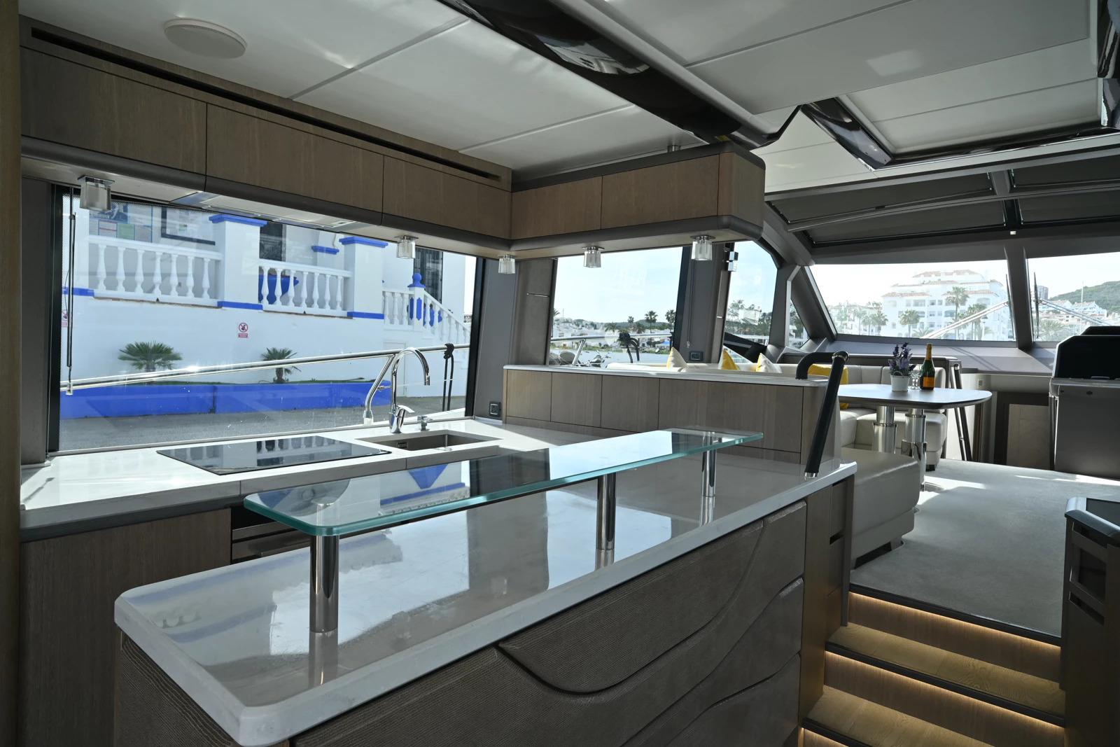 The 680 FLY changes the way yachts in all classes are measured. With a lightweight construction taking advantage of carbon technologies, its powerful power plant, stunning performance, and design, the 680 FLY features more game-changing features. On board the 680, passengers will find incredible volume, a bright and welcoming interior, and a luxurious finish.