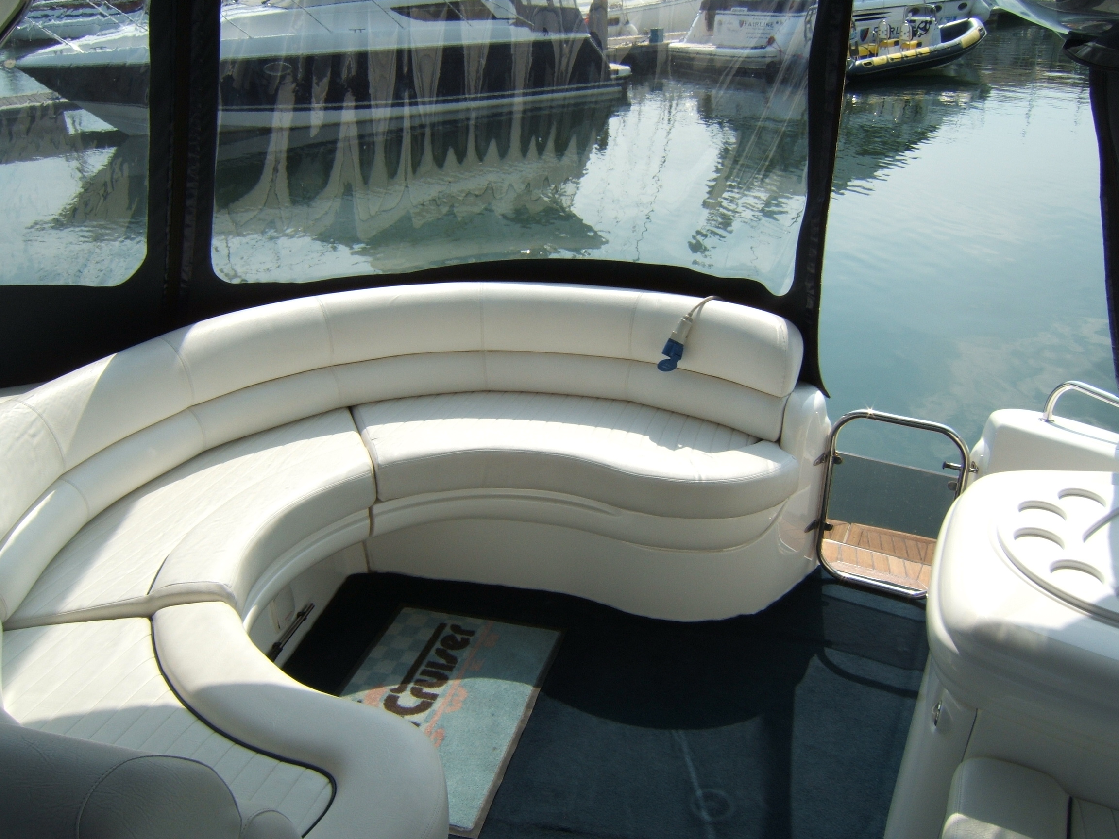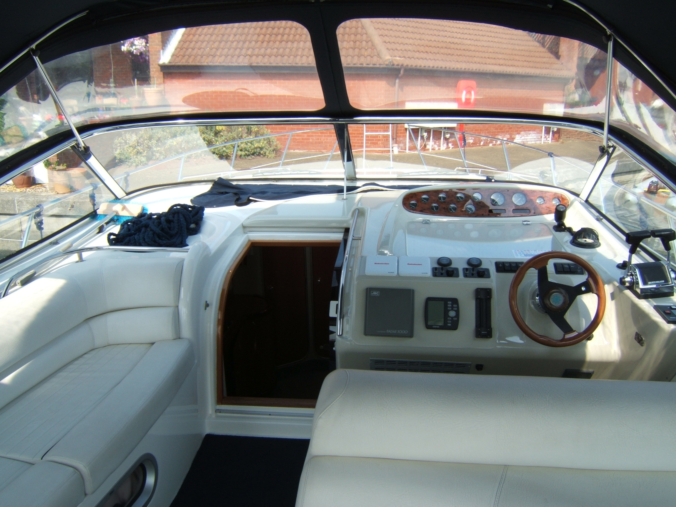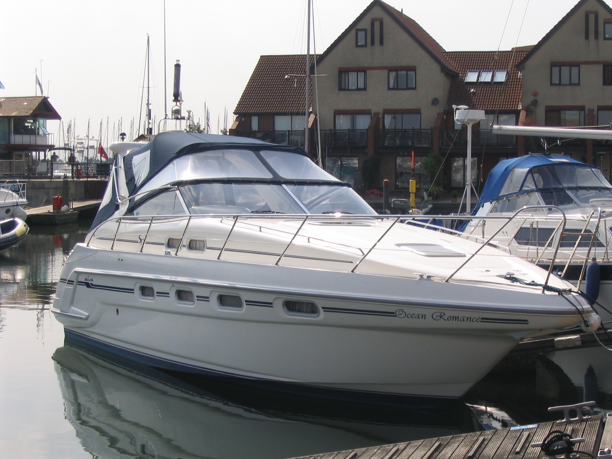 BERTH AVAILABLE UNTIL APRIL 2008 WITHIN PRICE. This spacious sports cruiser, with annual servicing completed June 2006, is presented immaculately. Built in November 1997 as a 1998 model with twin 220hp Mercruiser diesel engines she was commissioned in 1998. She has striking all navy blue markings, canopies, fenders and ropes and is equipped with a fine spec including GPS, radar and Eberspacher heating.