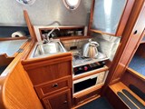 Galley opposite to starboard with Neptune 2 burner gas cooker, and microwave oven