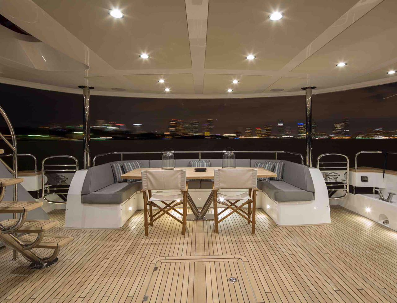 • Fin stabiliser system providing roll control at speeds above 13 knots and a significant roll reduction while at rest or anchor with bow and stern thruster upgrades