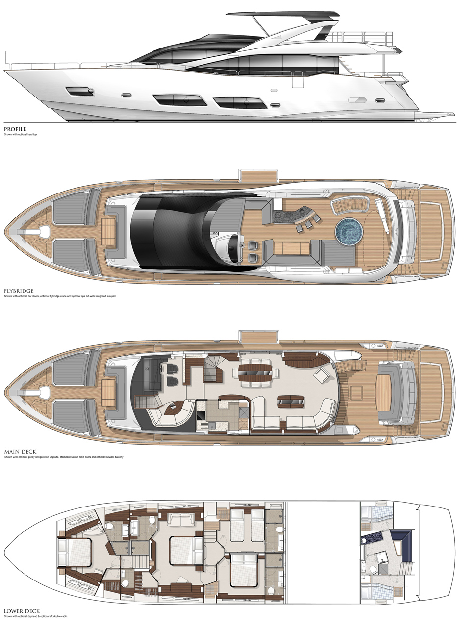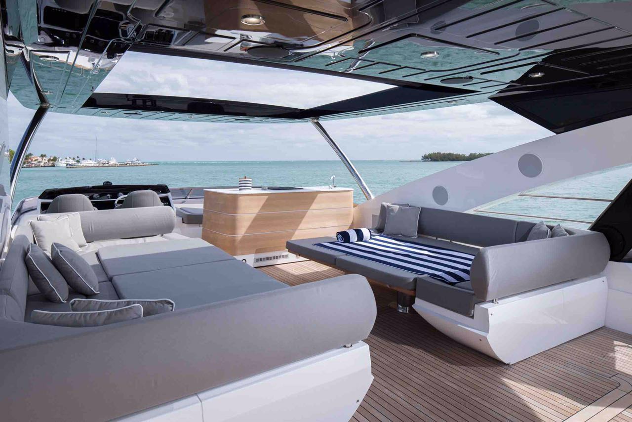 • Flybridge carbon fibre hardtop, including retractable centre canopy and aft extending sun canopy
