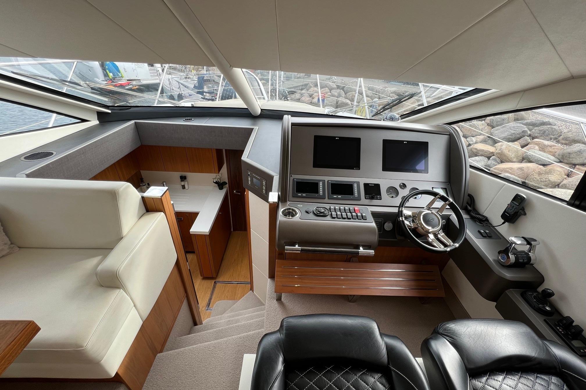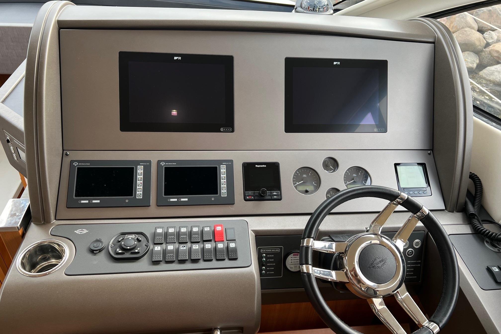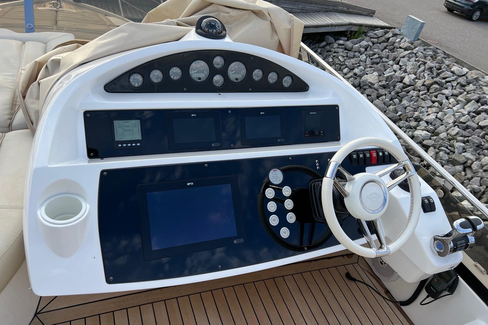 Fitted with state-of-the-art navigation equipment including Raymarine touch-screen chartplotter, radar (2022), remote autopilot, and DockMate remote control for both engines and thrusters, she is as easy to handle as she is powerful.