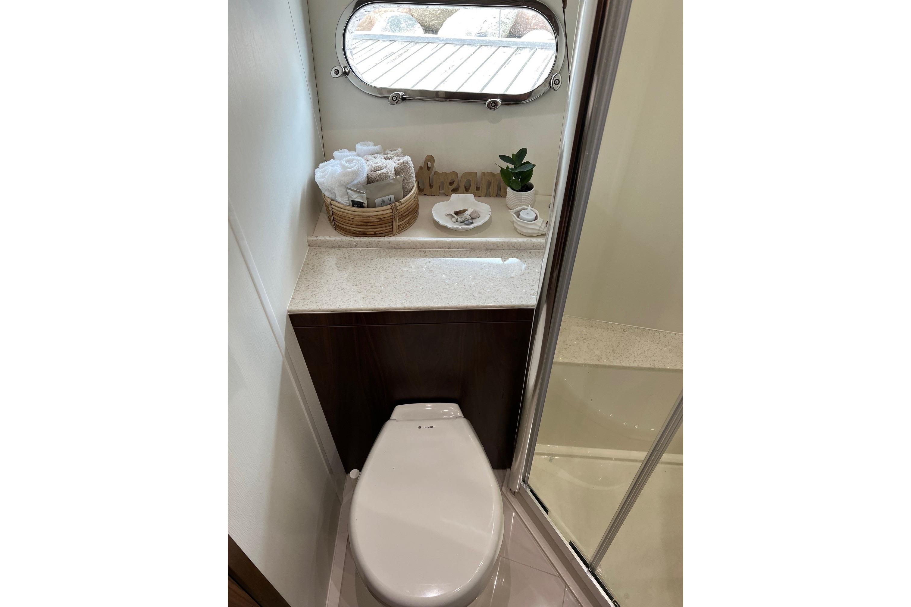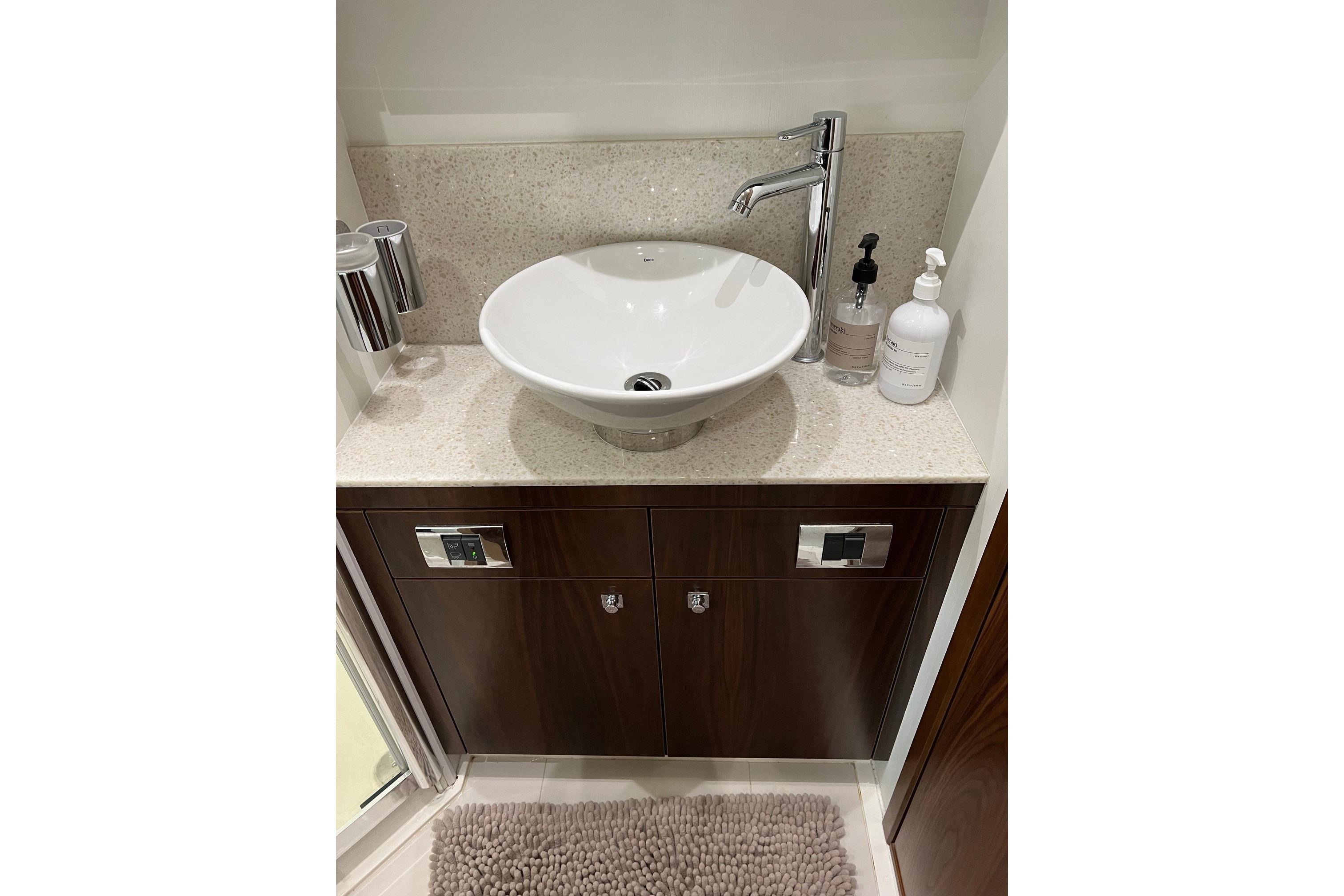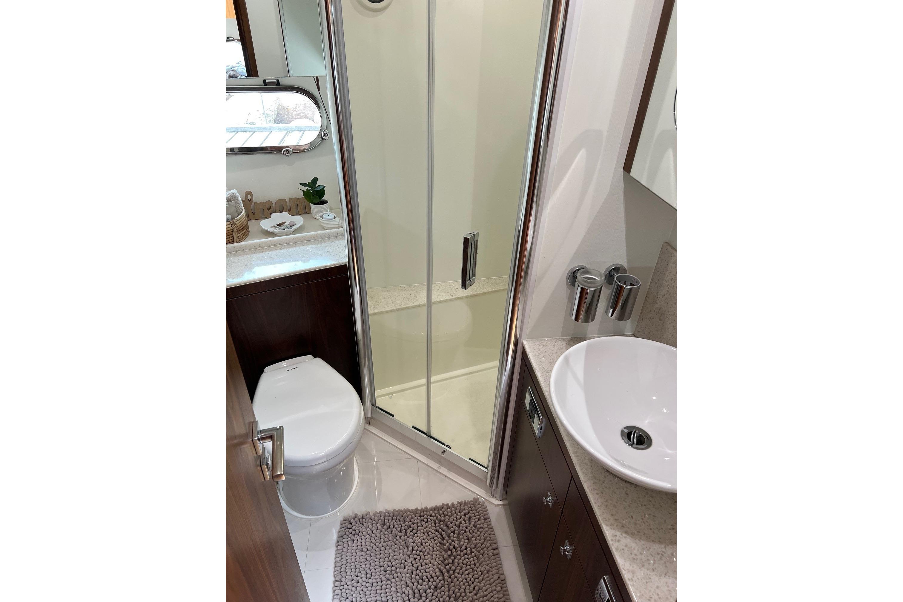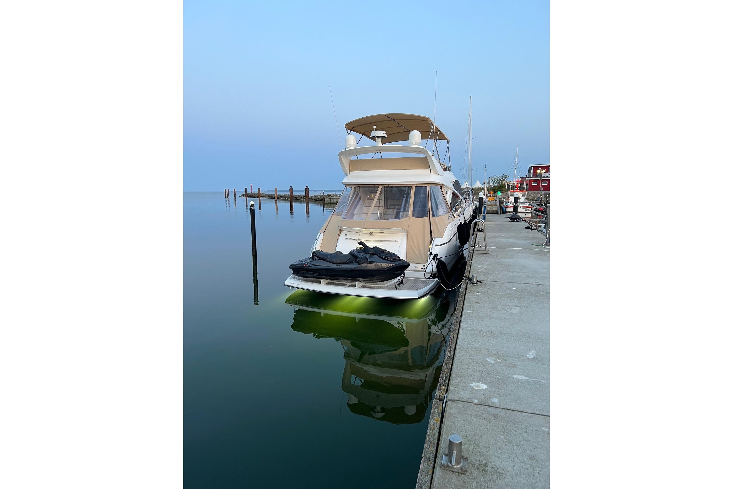 Fitted with state-of-the-art navigation equipment including Raymarine touch-screen chartplotter, radar (2022), remote autopilot, and DockMate remote control for both engines and thrusters, she is as easy to handle as she is powerful.