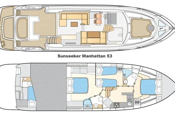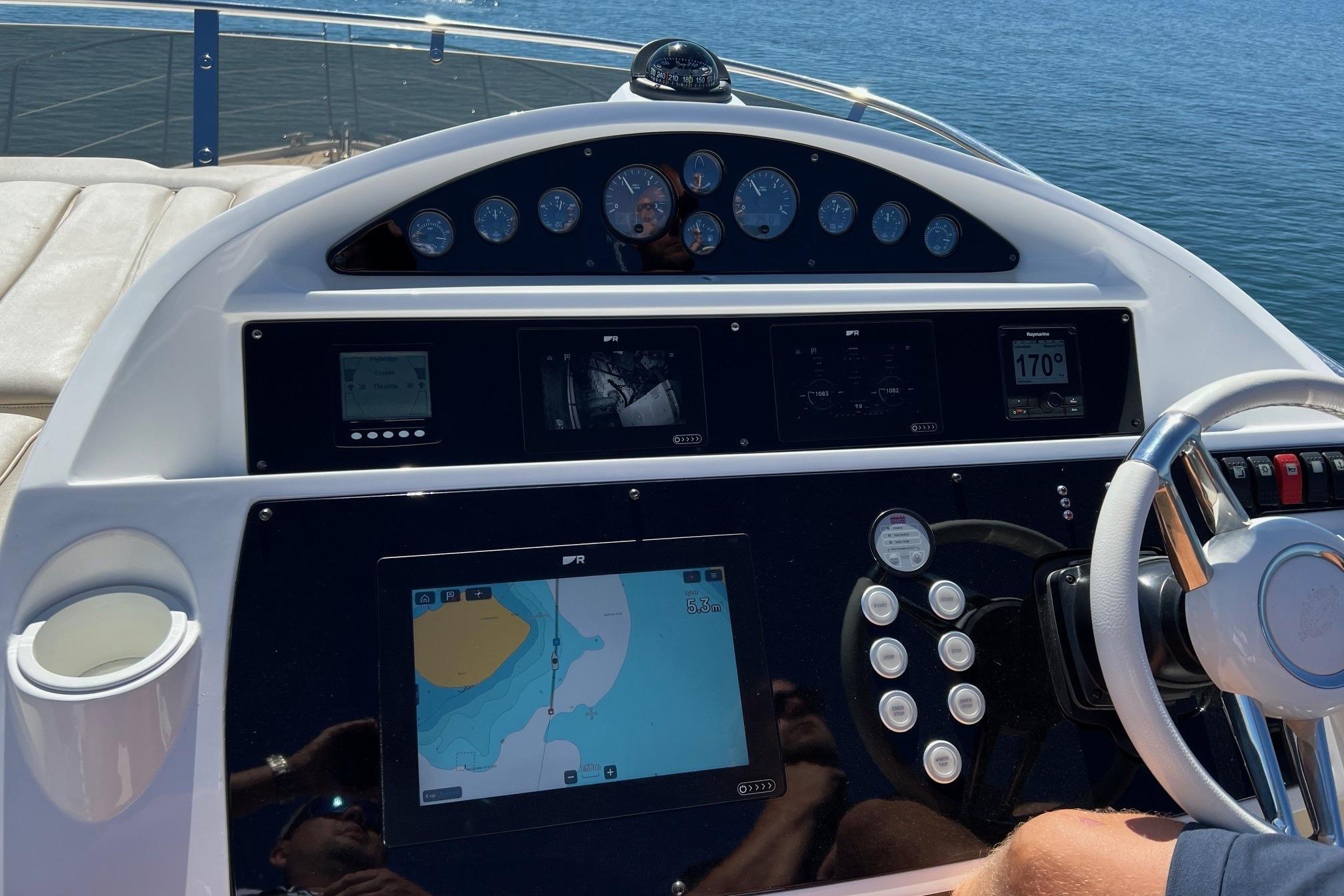 This Sunseeker Manhattan 53 is an exceptionally well-maintained and fully serviced yacht, combining performance, comfort, and luxury. Powered by twin 800 HP MAN engines with only ~870 hours, she delivers a cruising speed of 22 knots and a maximum speed of 30 knots.