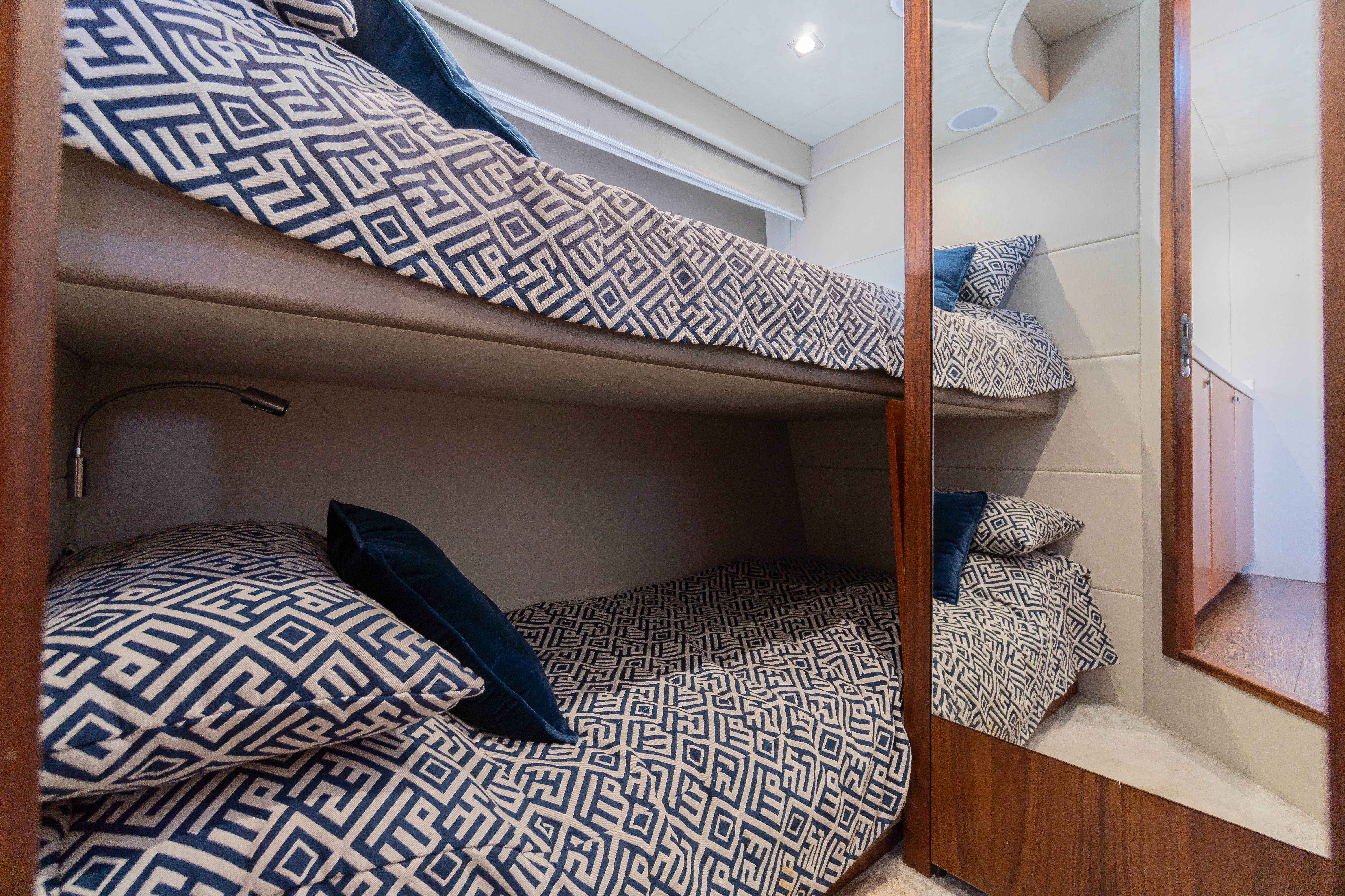 VIP guest cabin forwards with double island berth, storage lockers and hanging lockers