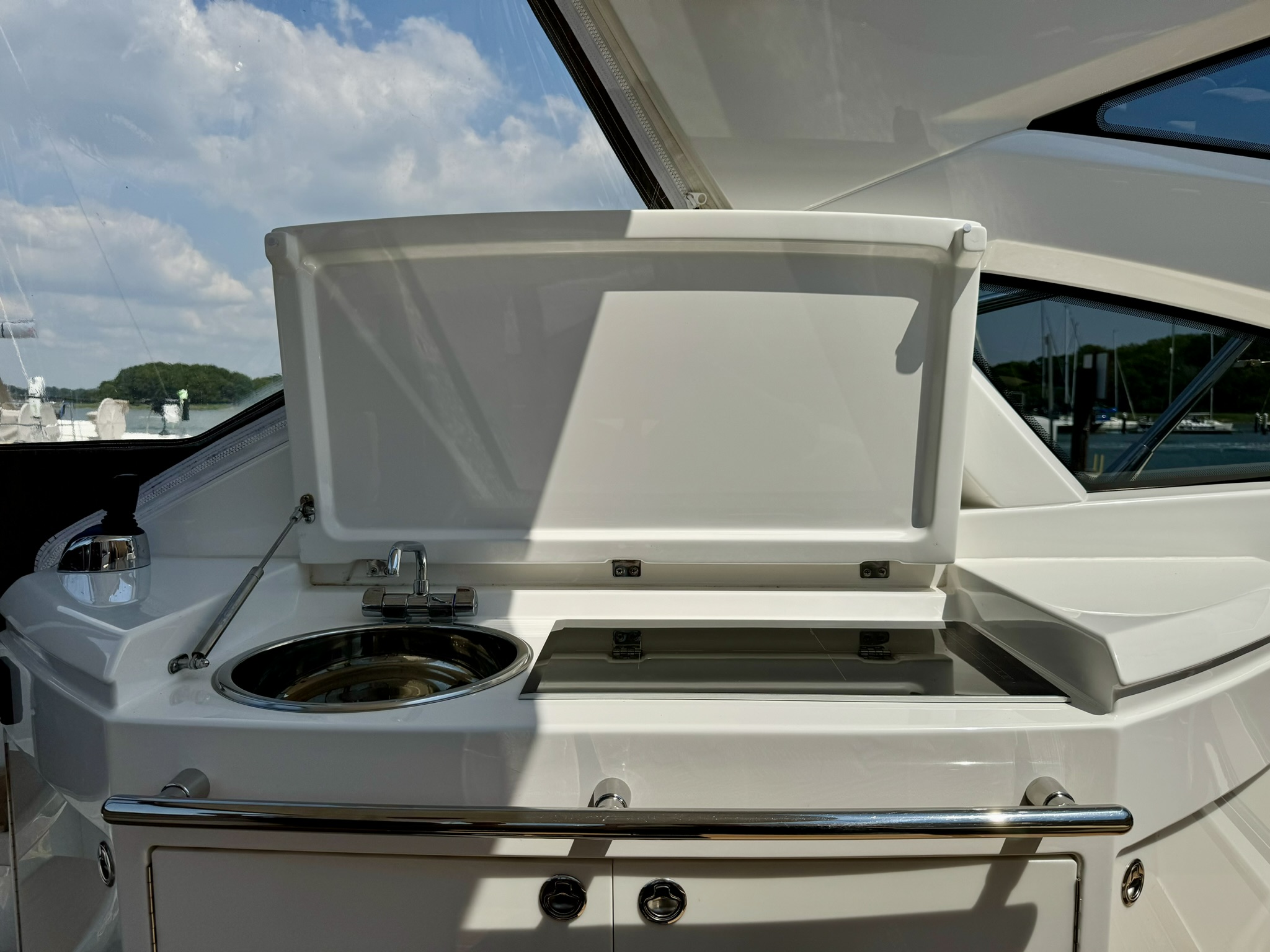 Cockpit wetbar with two burner ceramic hob, Isotherm drinks fridge and sink