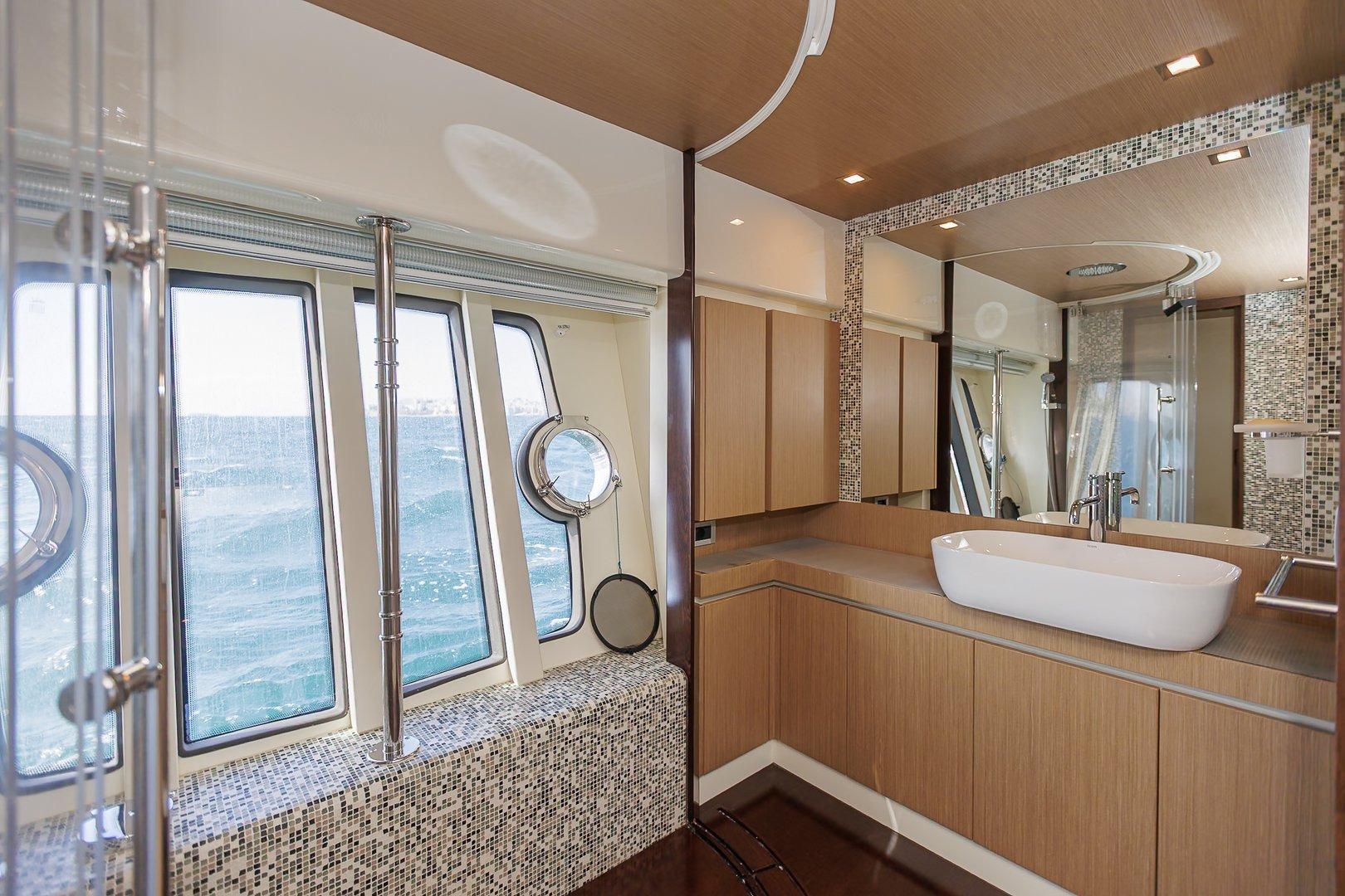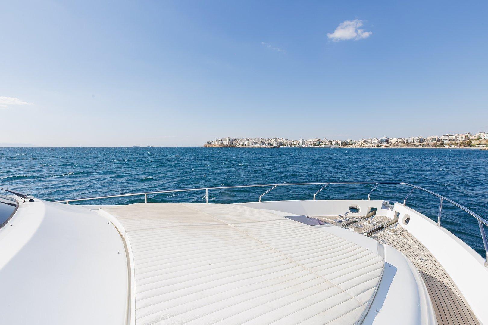 She can accommodate 8 guests in a full-beam Master, a spacious VIP and two Twin cabins, all ensuite. Life on board offers pure relaxation, whether in the naturally bright main salon or across the generous exterior areas, from the cockpit and bow to the impressive flybridge.