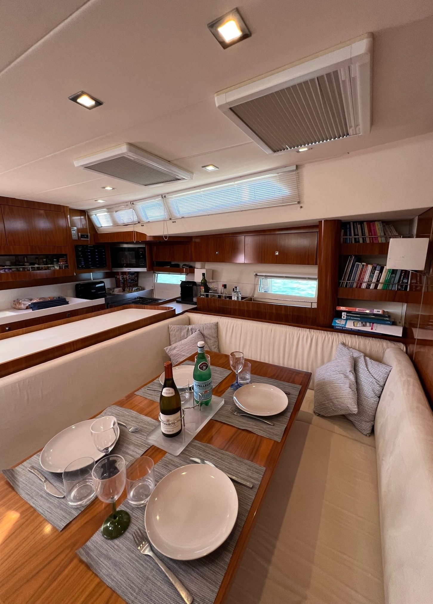 She’s the “owner version” with American walnut including the “pack comfort”, full set of sails (mainsail, genoa, staysail, mizzen) from 2024, running rig from 2024, standing rig replaced in 2023,