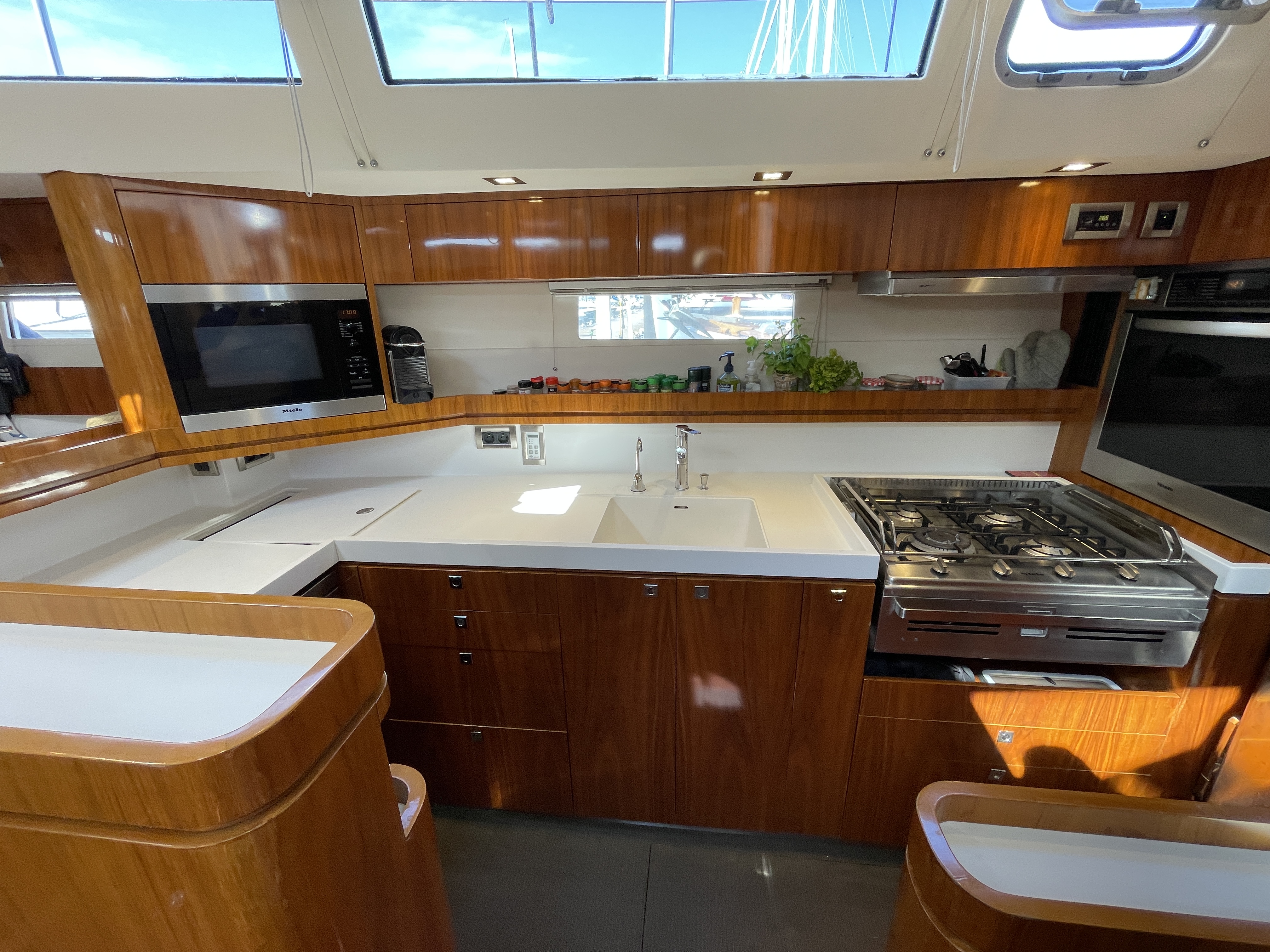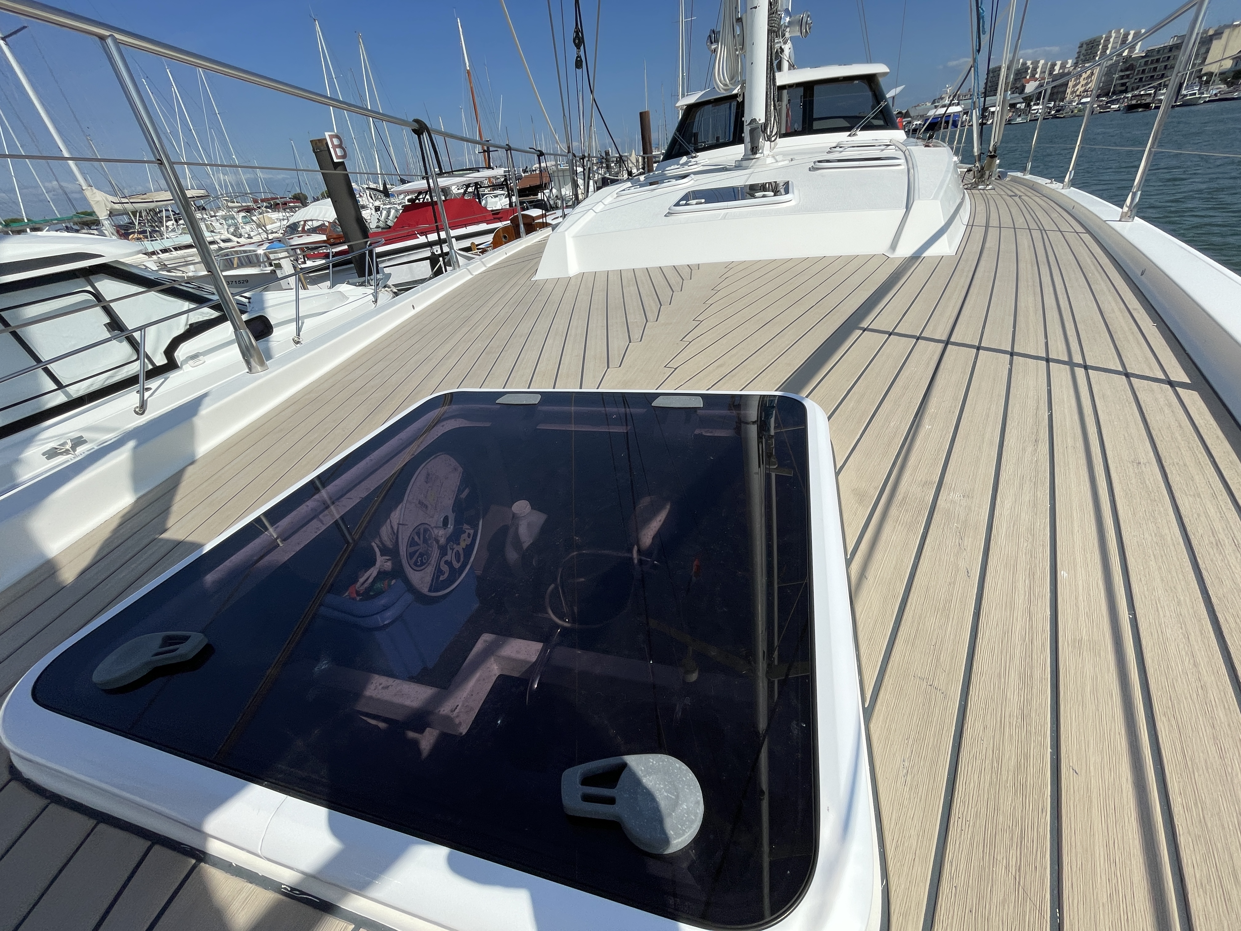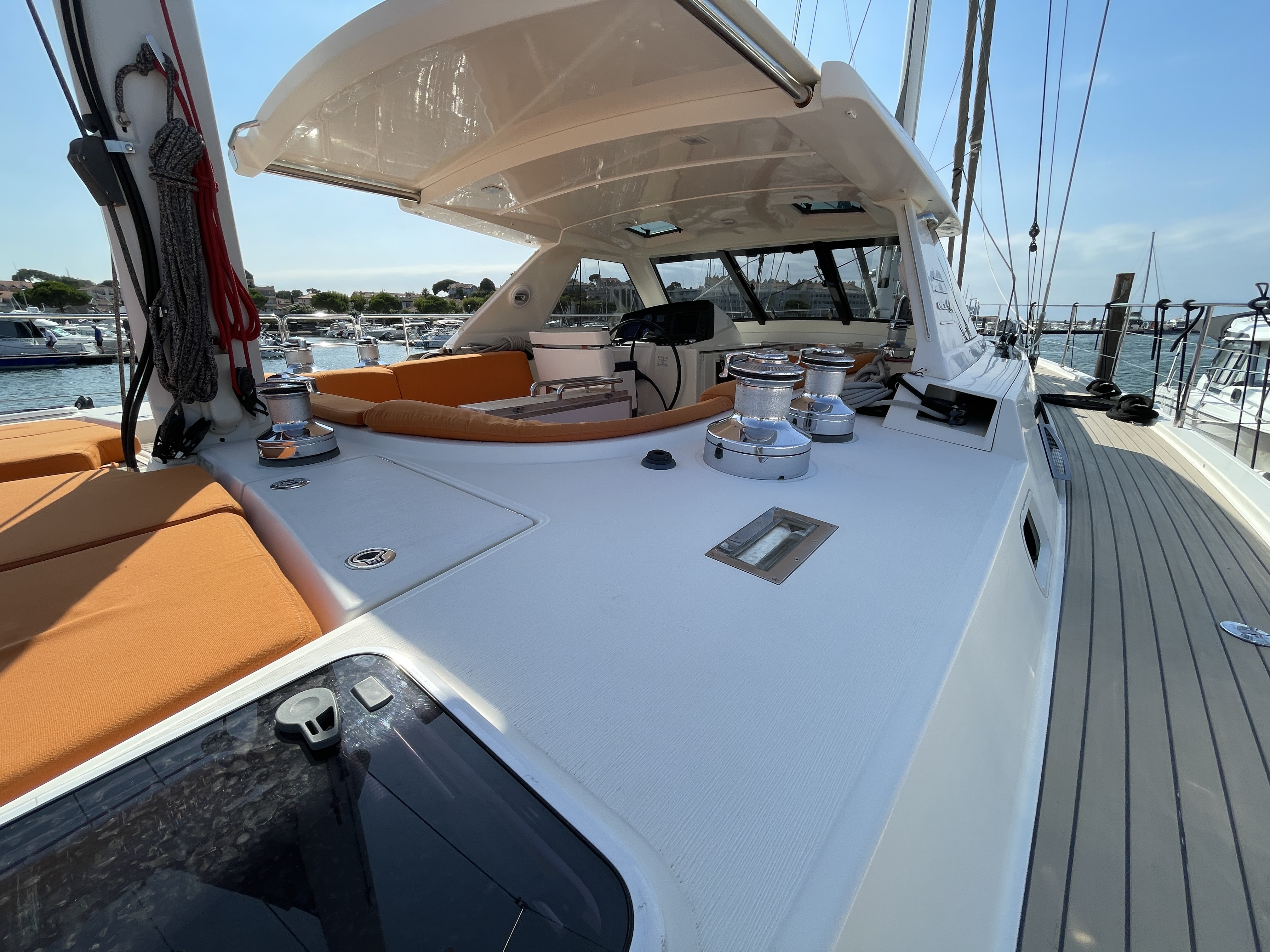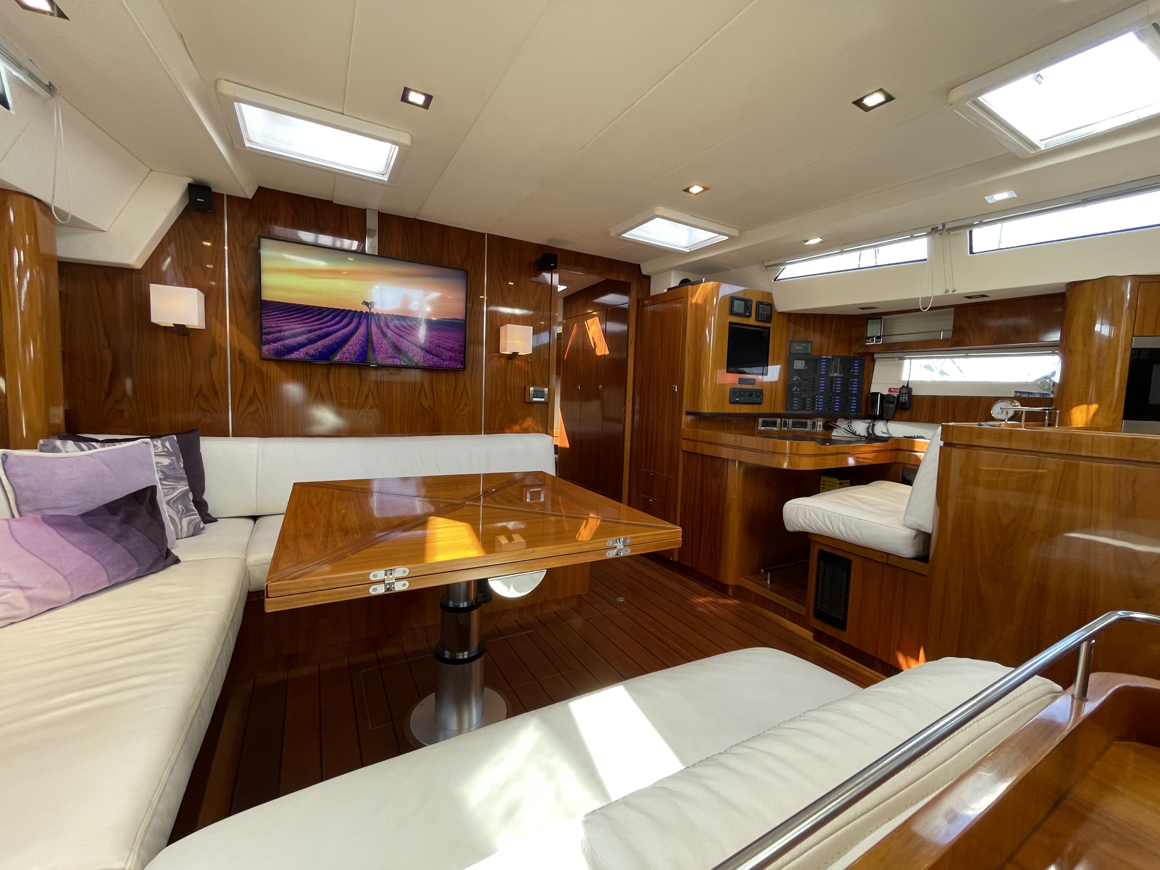 AC, Heating Webasto, Garage, dinghy & HB, Swimming plateform, Bow and Stern Thruster, 240 L H Watermaker instead 150 LH, Recent batteries and upgraded for electrical system (charger, inverter) two mooring with two windlass, full electronics, full set of sails in good condition including Gennaker, full set of covers and sun covers, sun matress, cushions in good shape etc.