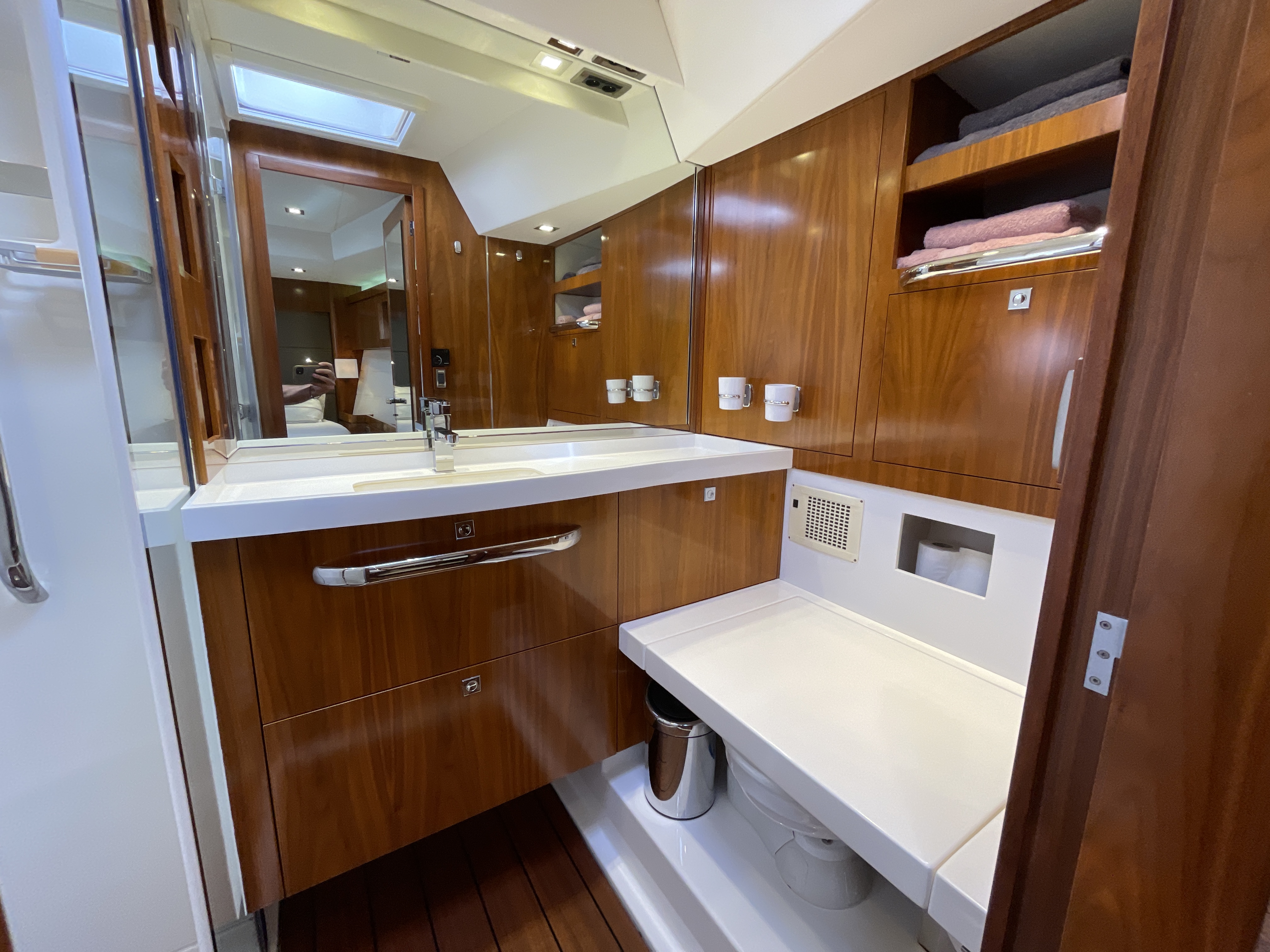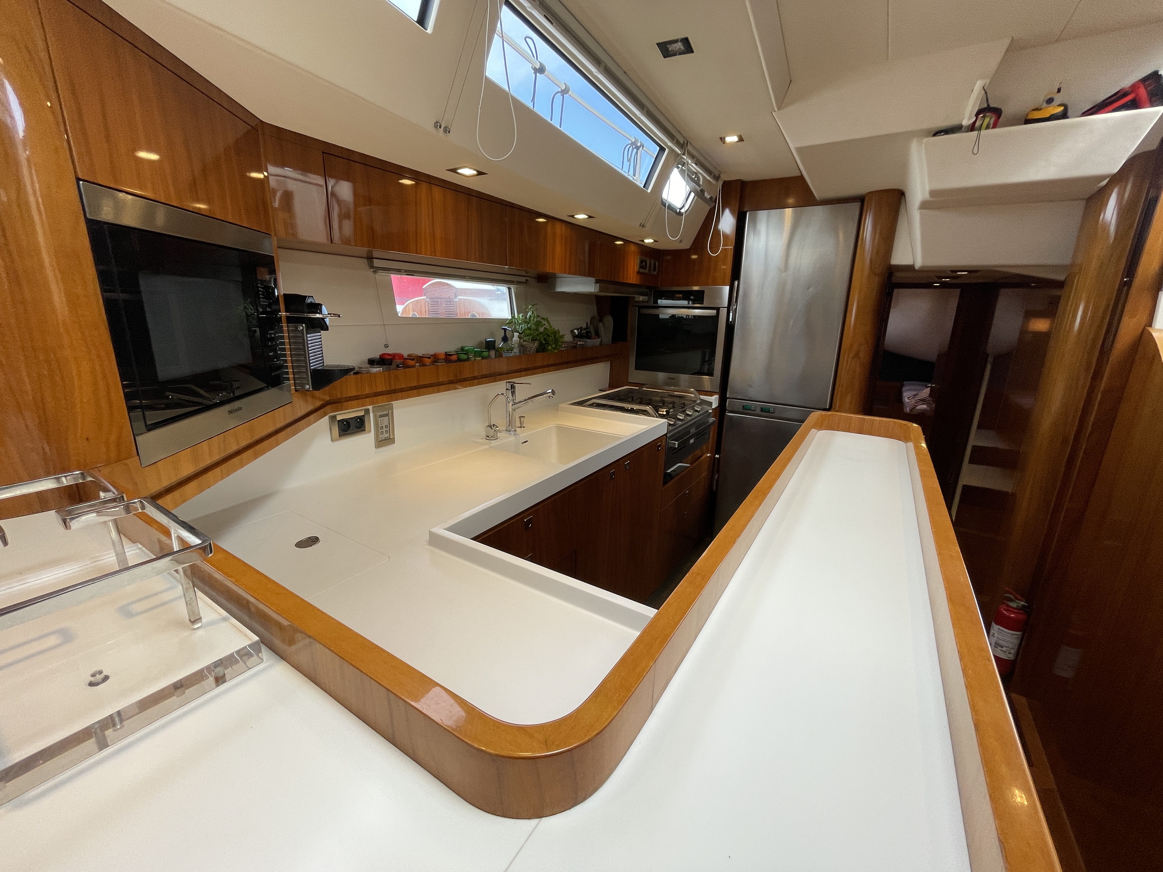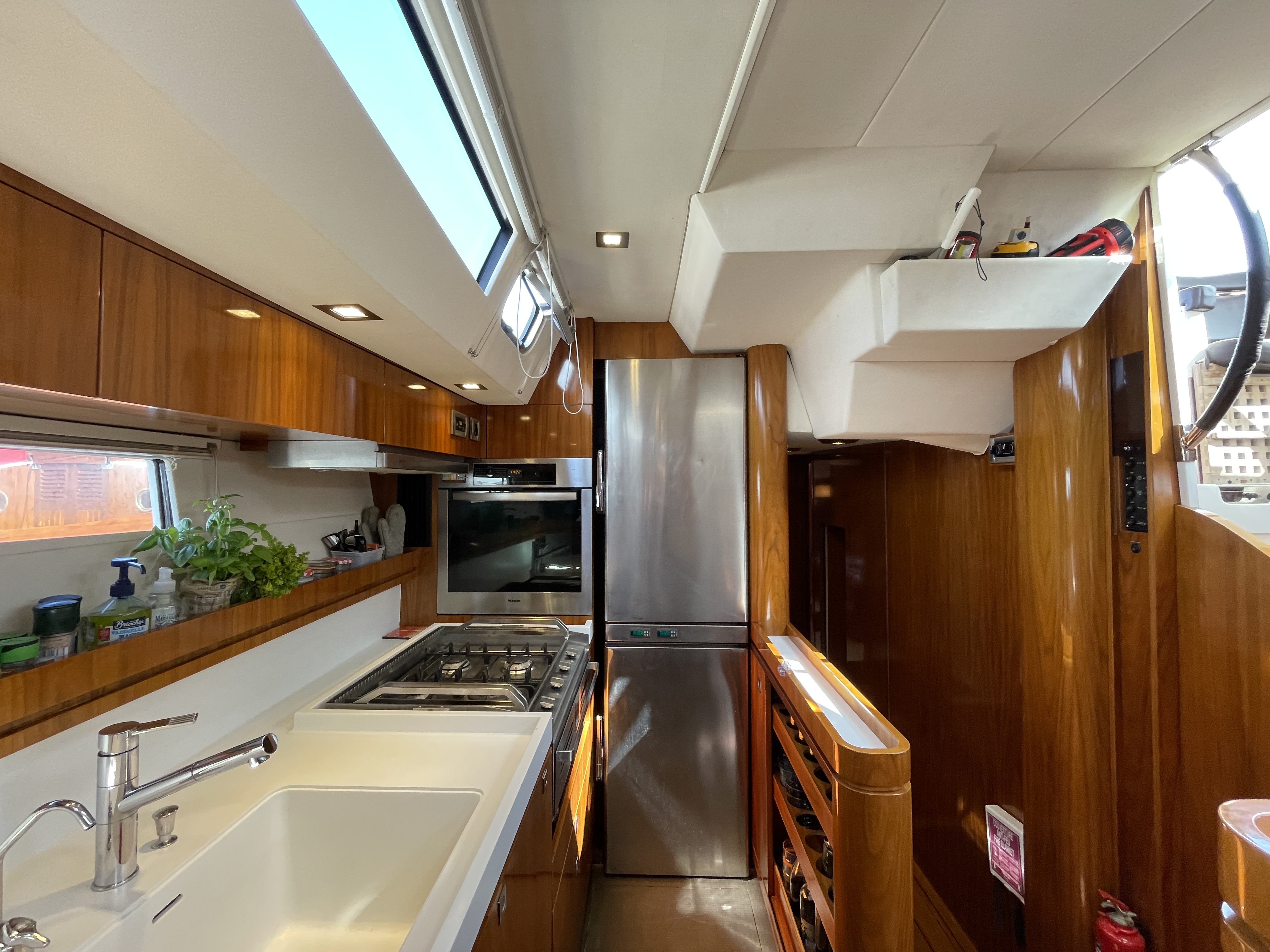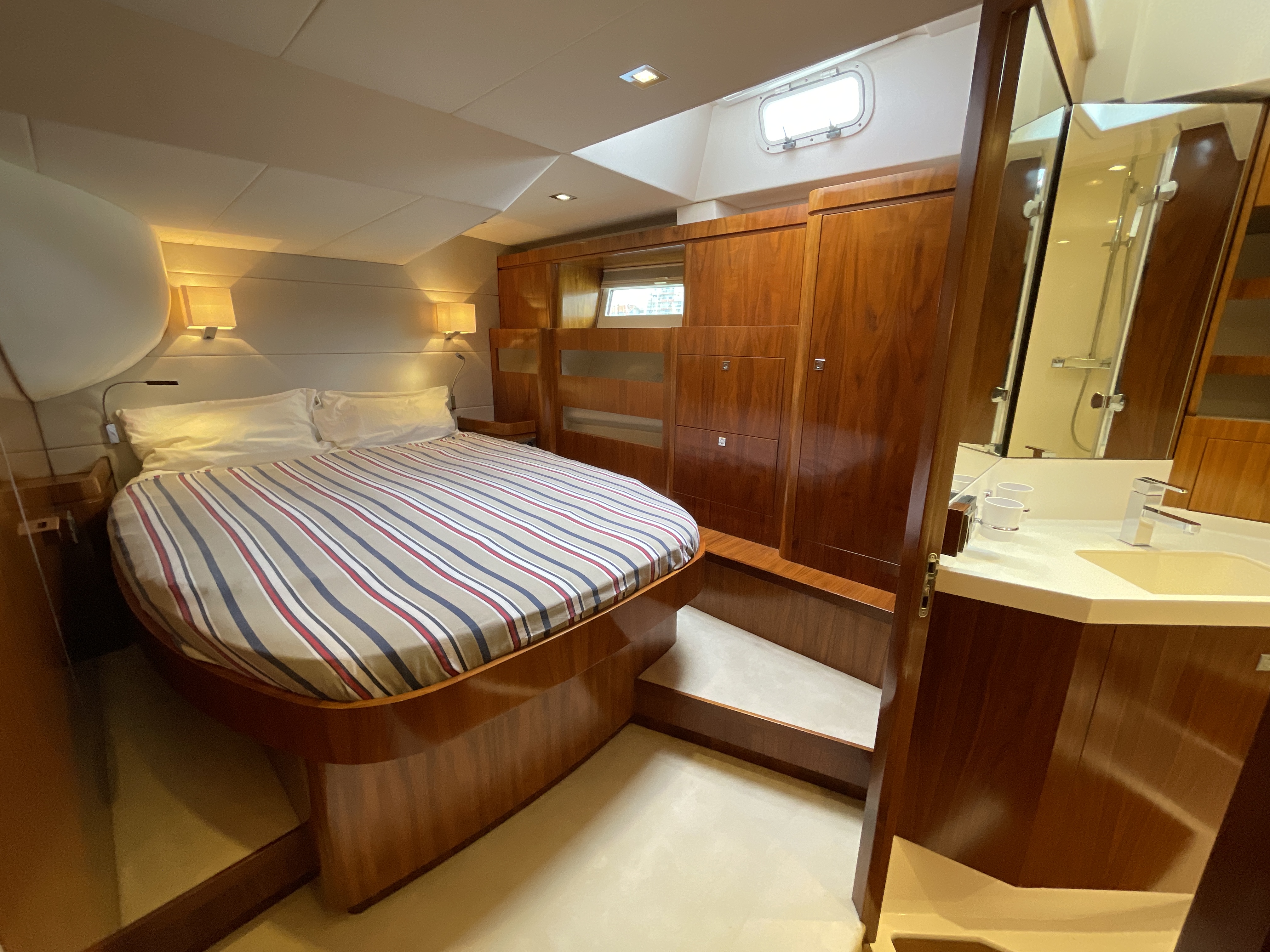 AC, Heating Webasto, Garage, dinghy & HB, Swimming plateform, Bow and Stern Thruster, 240 L H Watermaker instead 150 LH, Recent batteries and upgraded for electrical system (charger, inverter) two mooring with two windlass, full electronics, full set of sails in good condition including Gennaker, full set of covers and sun covers, sun matress, cushions in good shape etc.