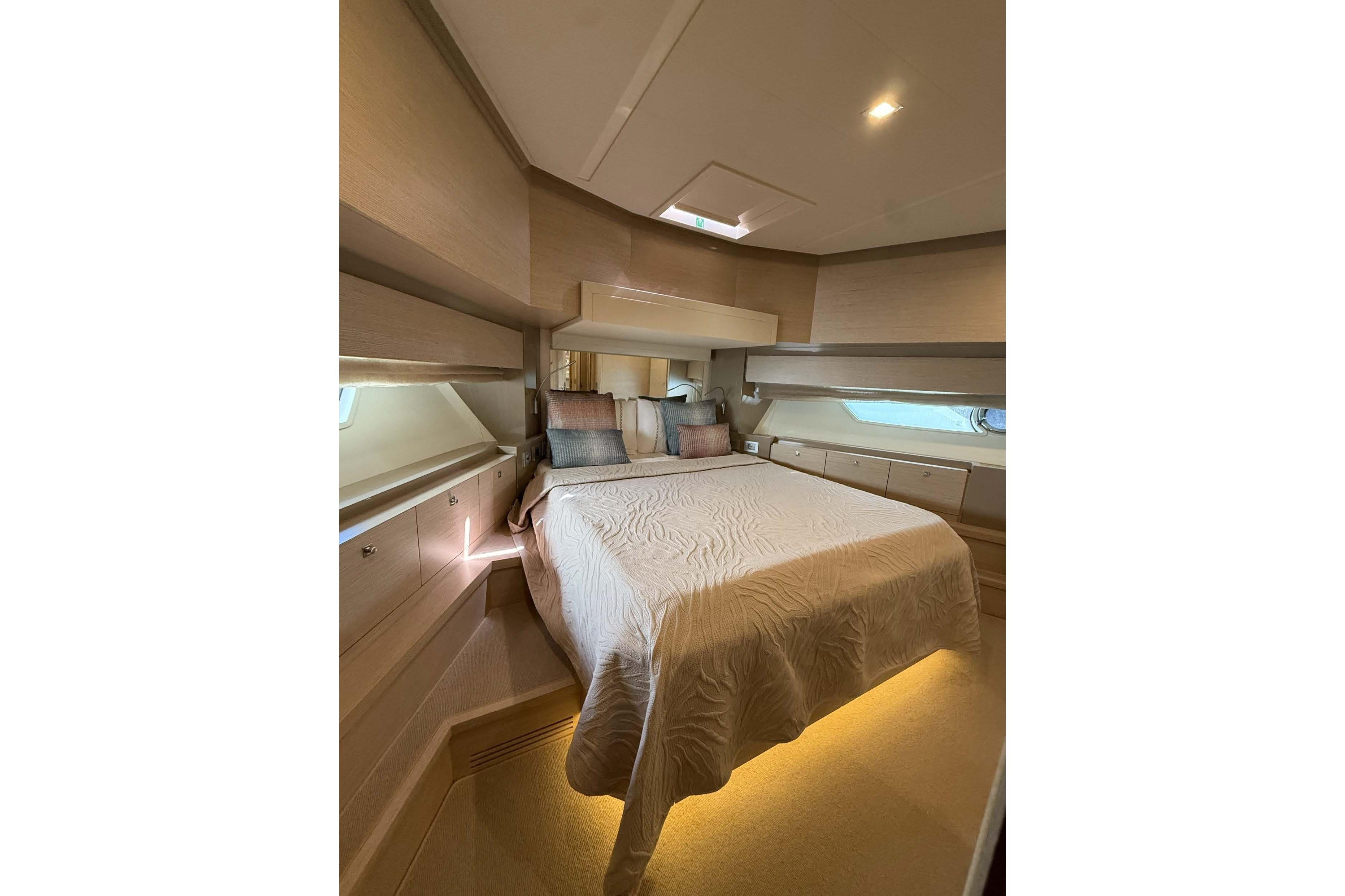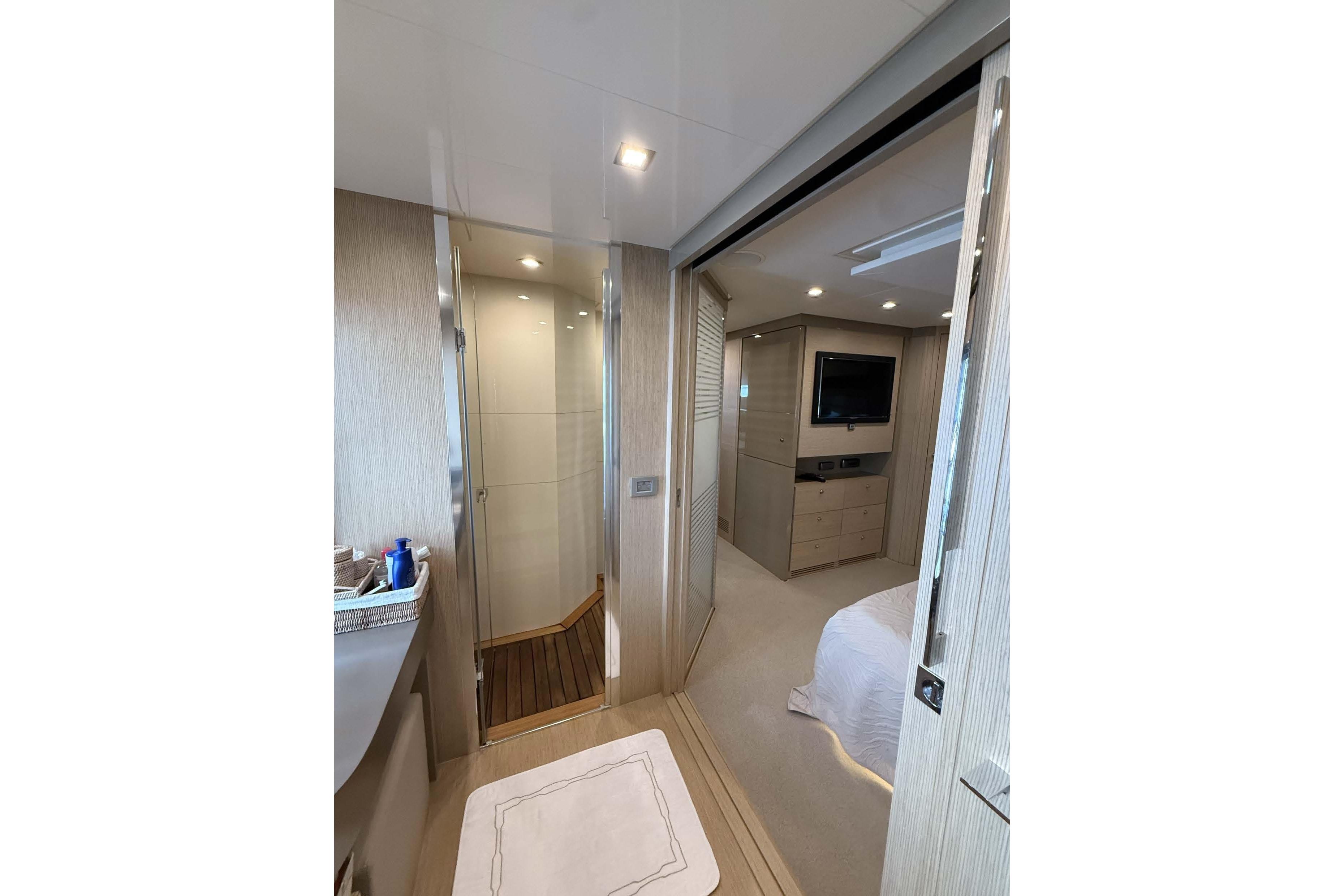 Master Cabin: Amidships, full beam; includes sink, toilet, bidet, and shower cabin