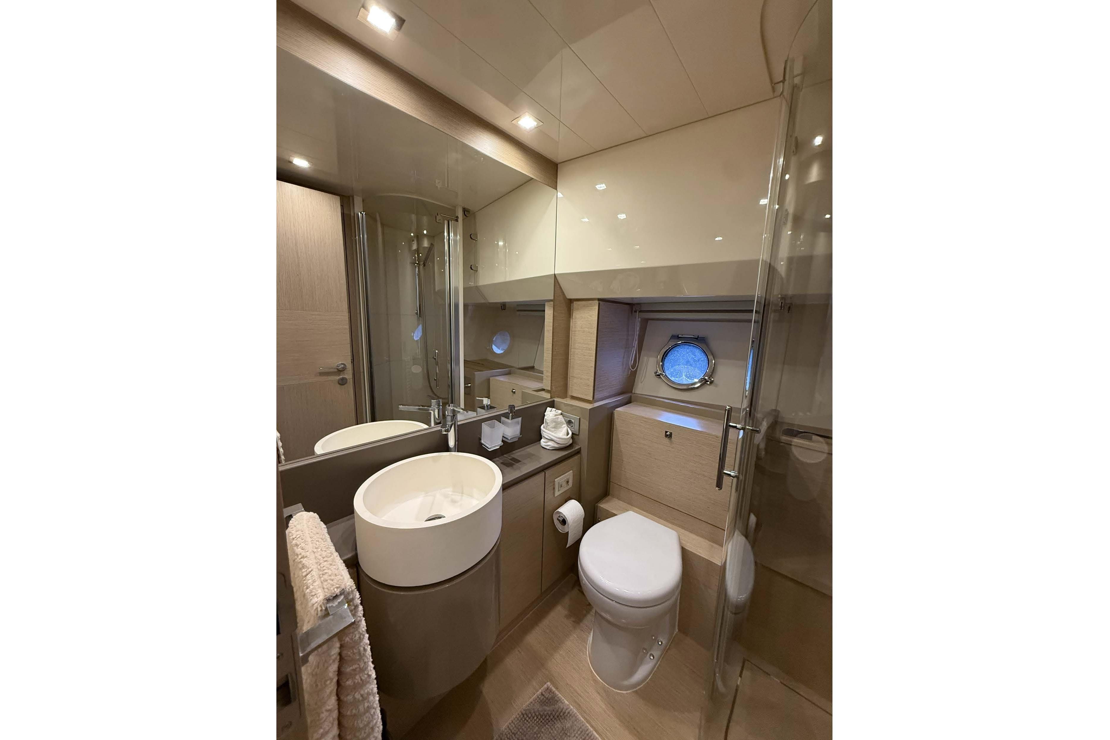 VIP Cabin: Forward; includes sink, toilet, bidet, and shower cabin