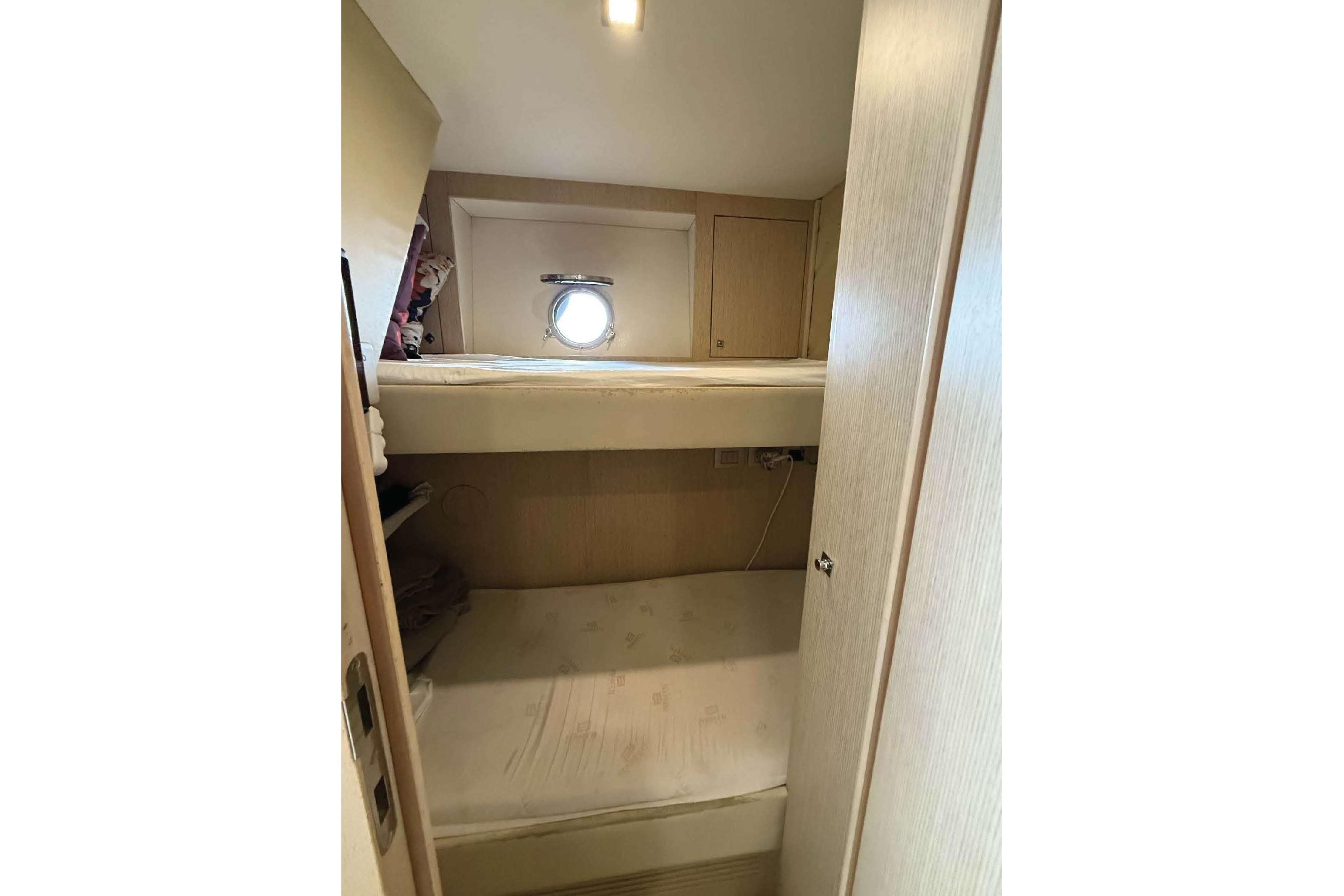 Crew Cabin: Bunk beds; separate aft entrance; bathroom