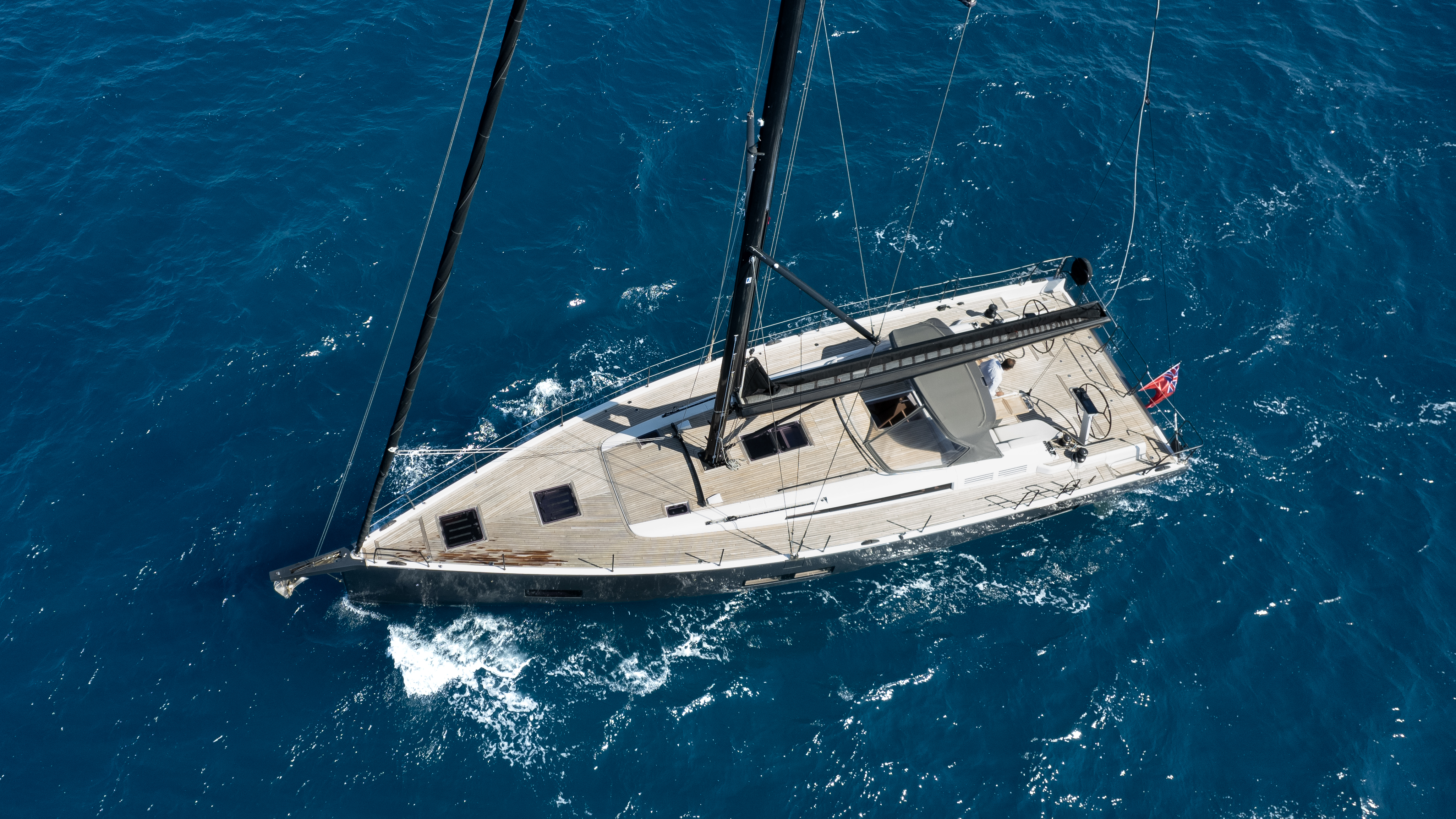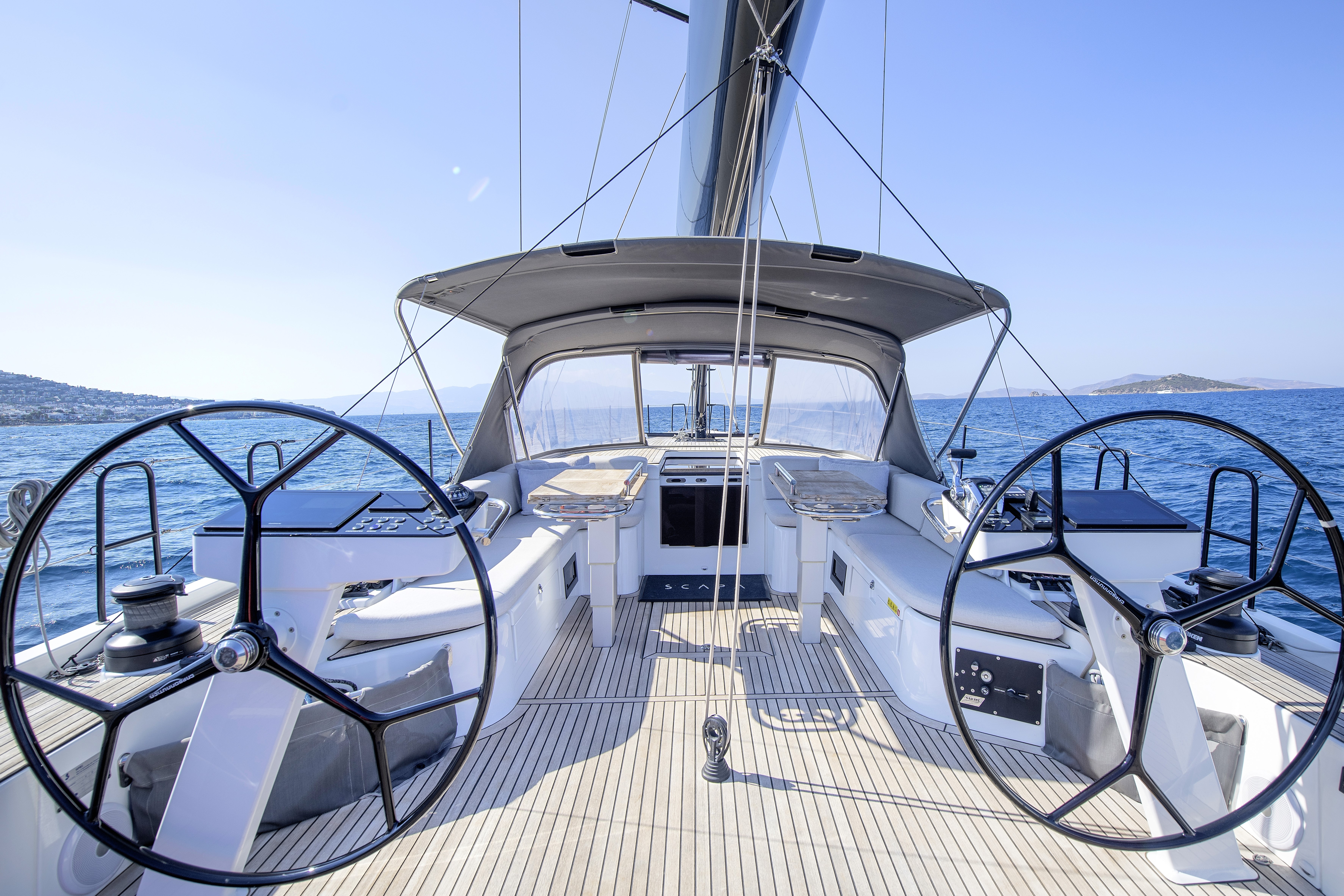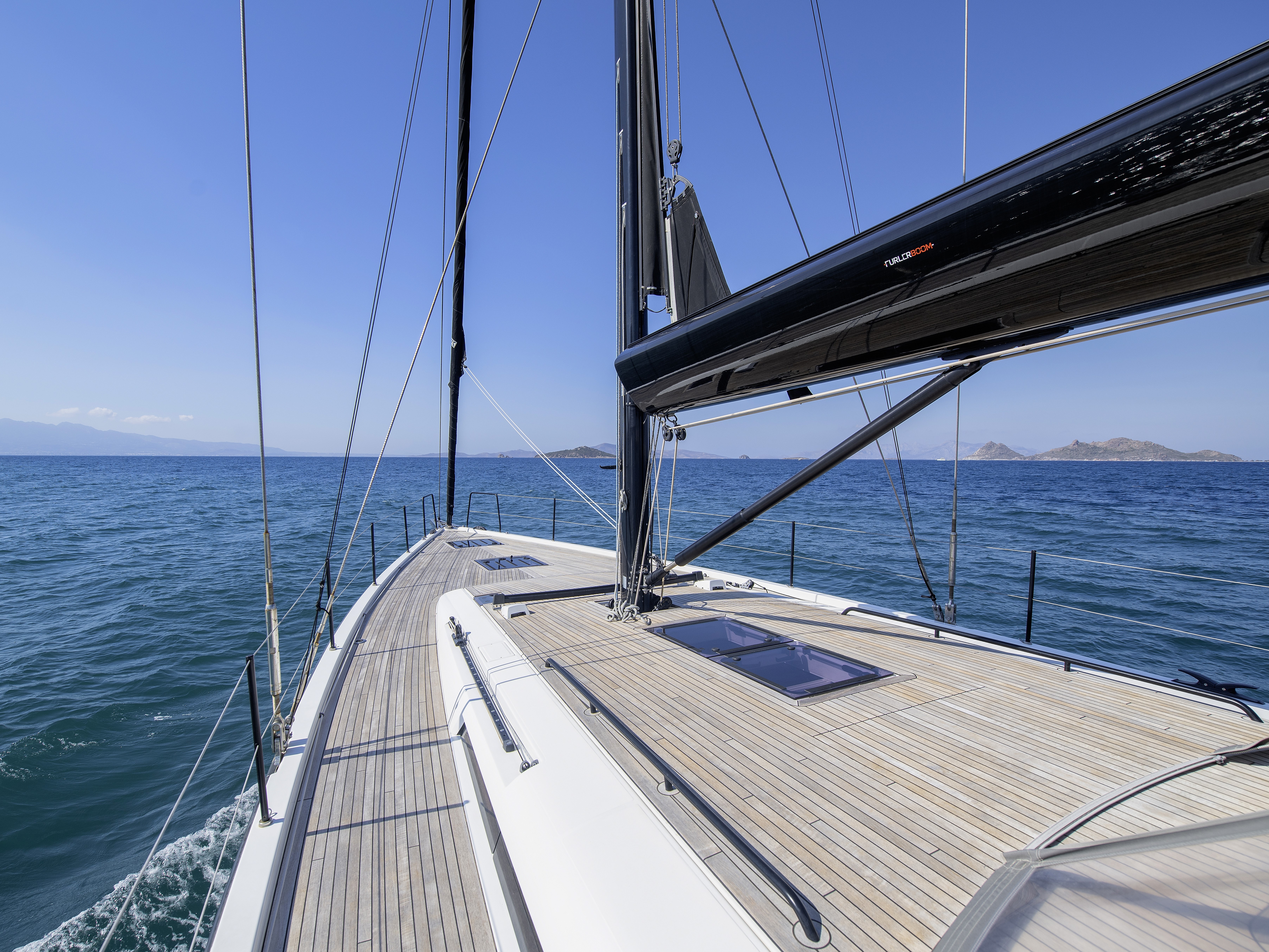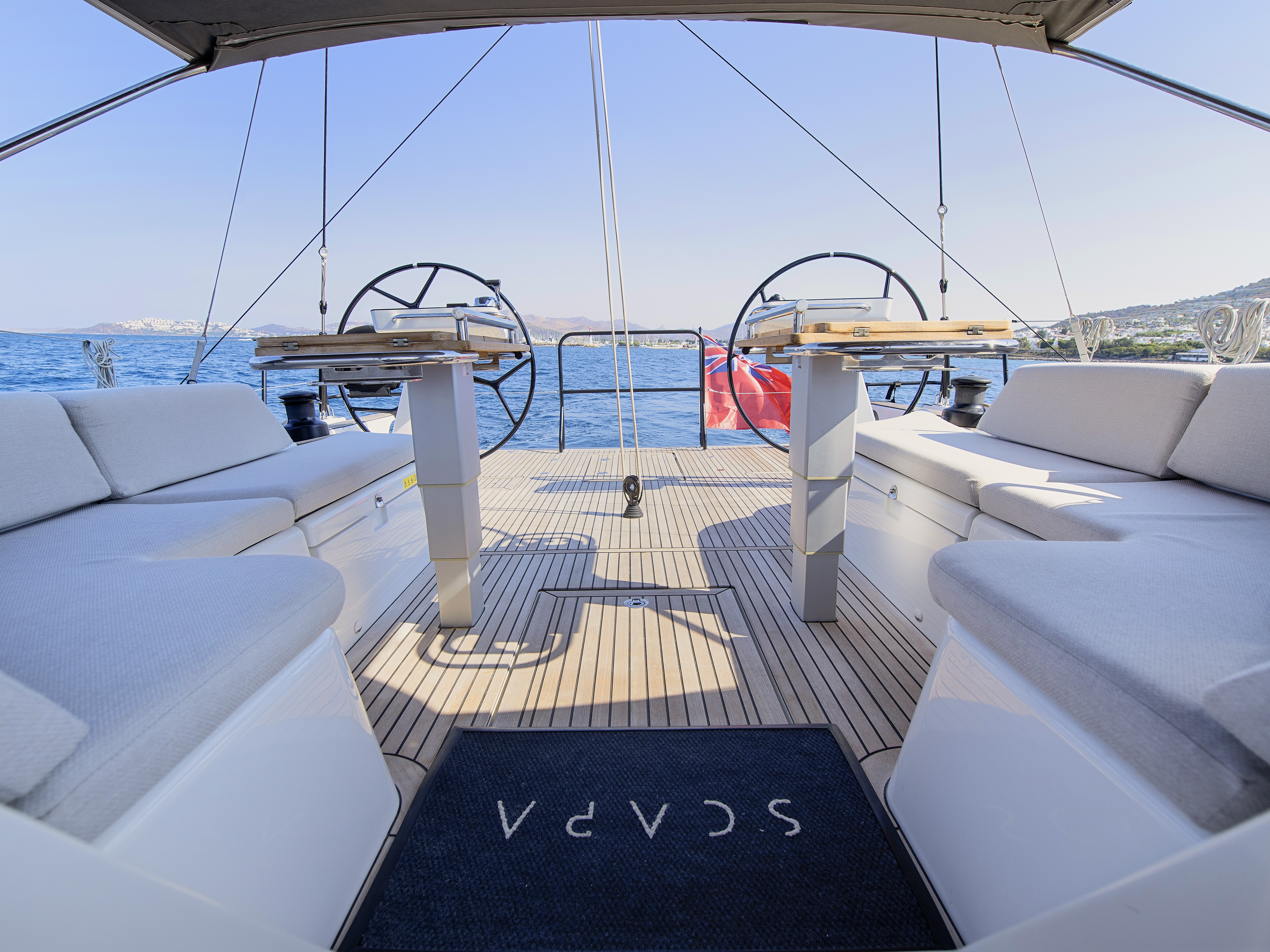 Teak-laid deck, cockpit sole, cockpit seats