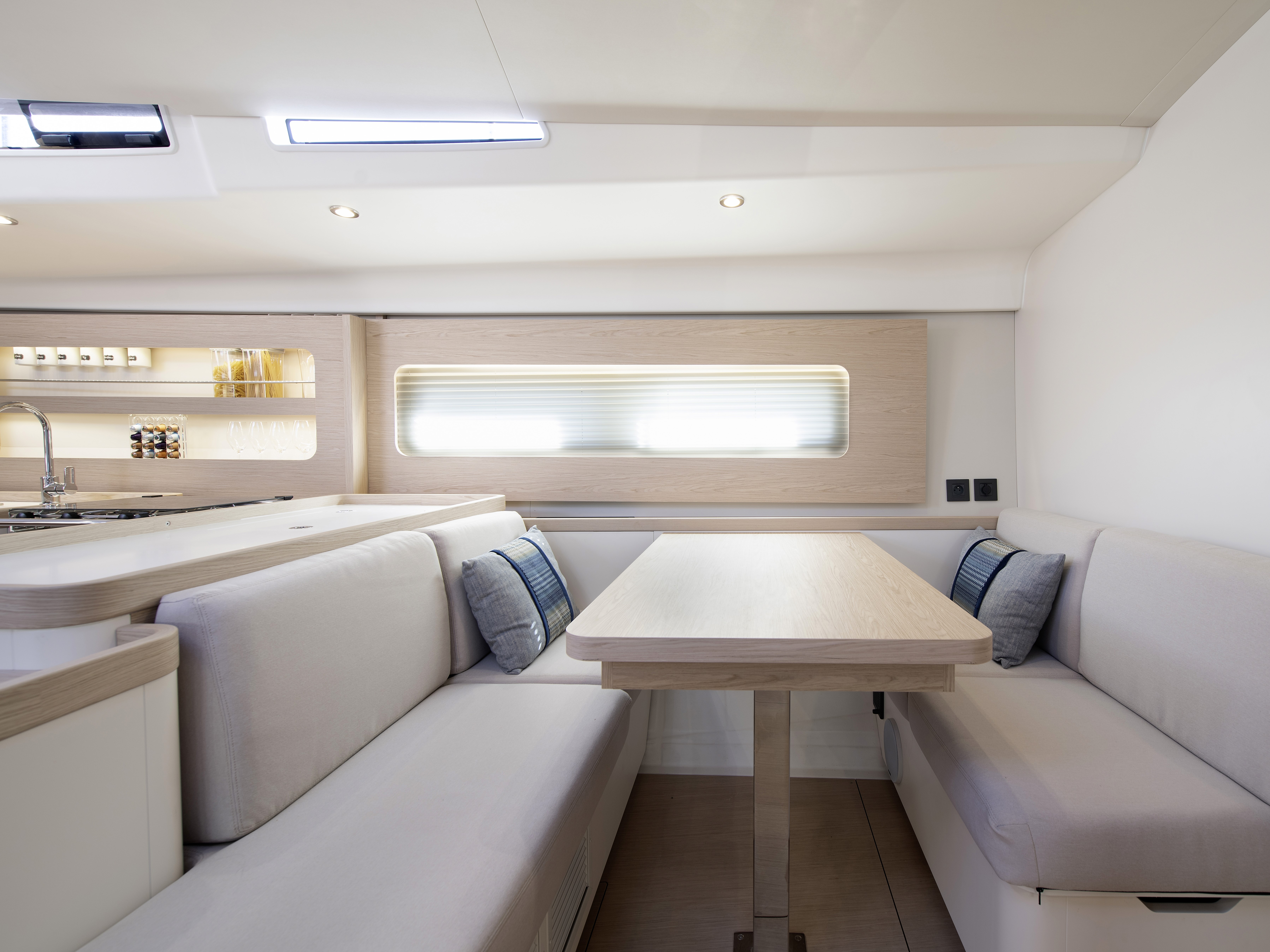 Lounge type L-shaped sofa on starboard side