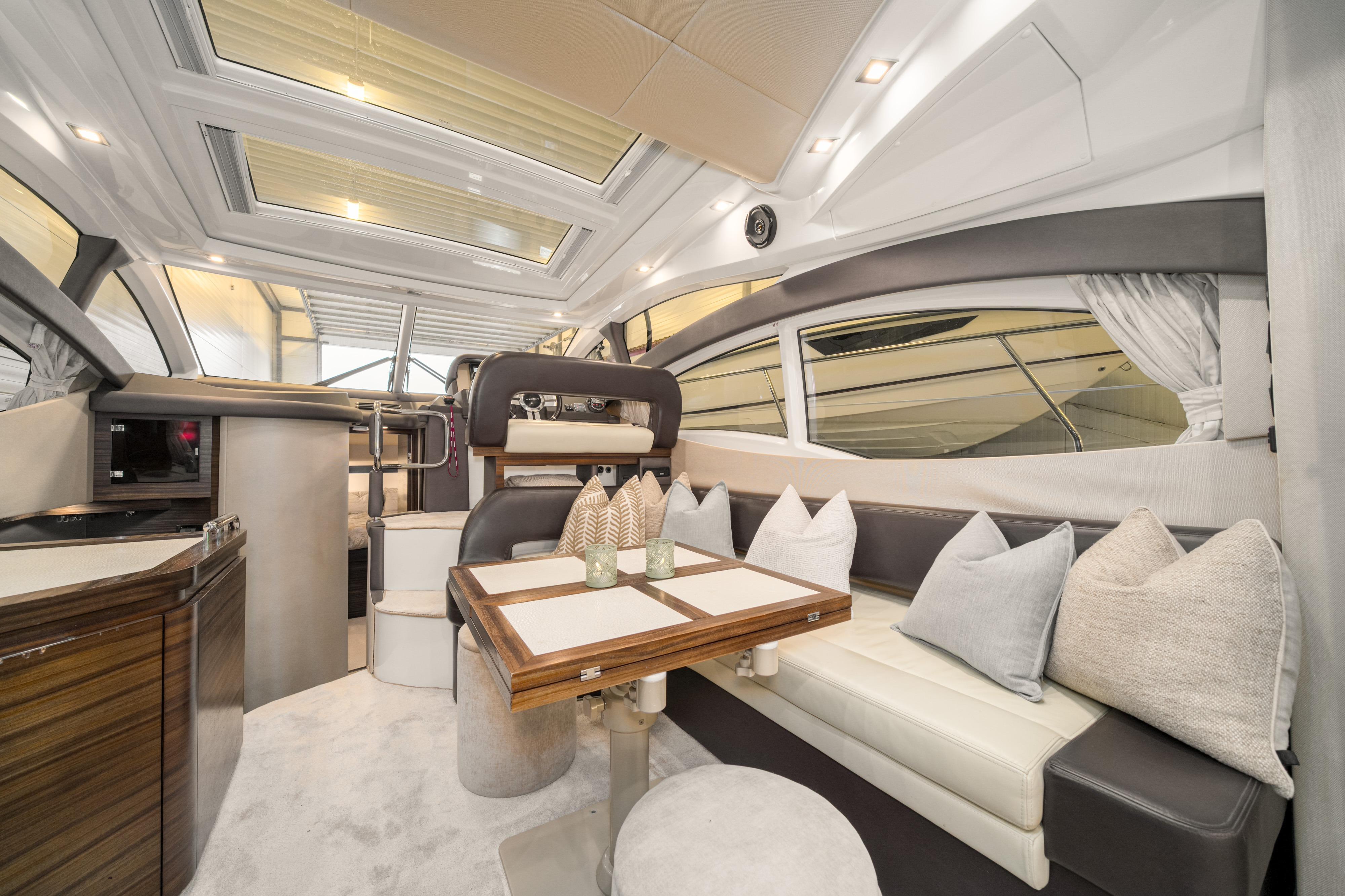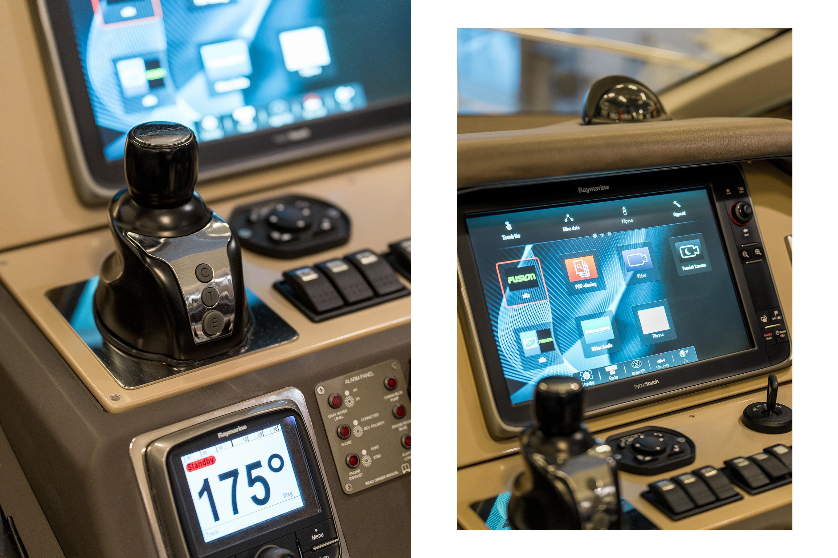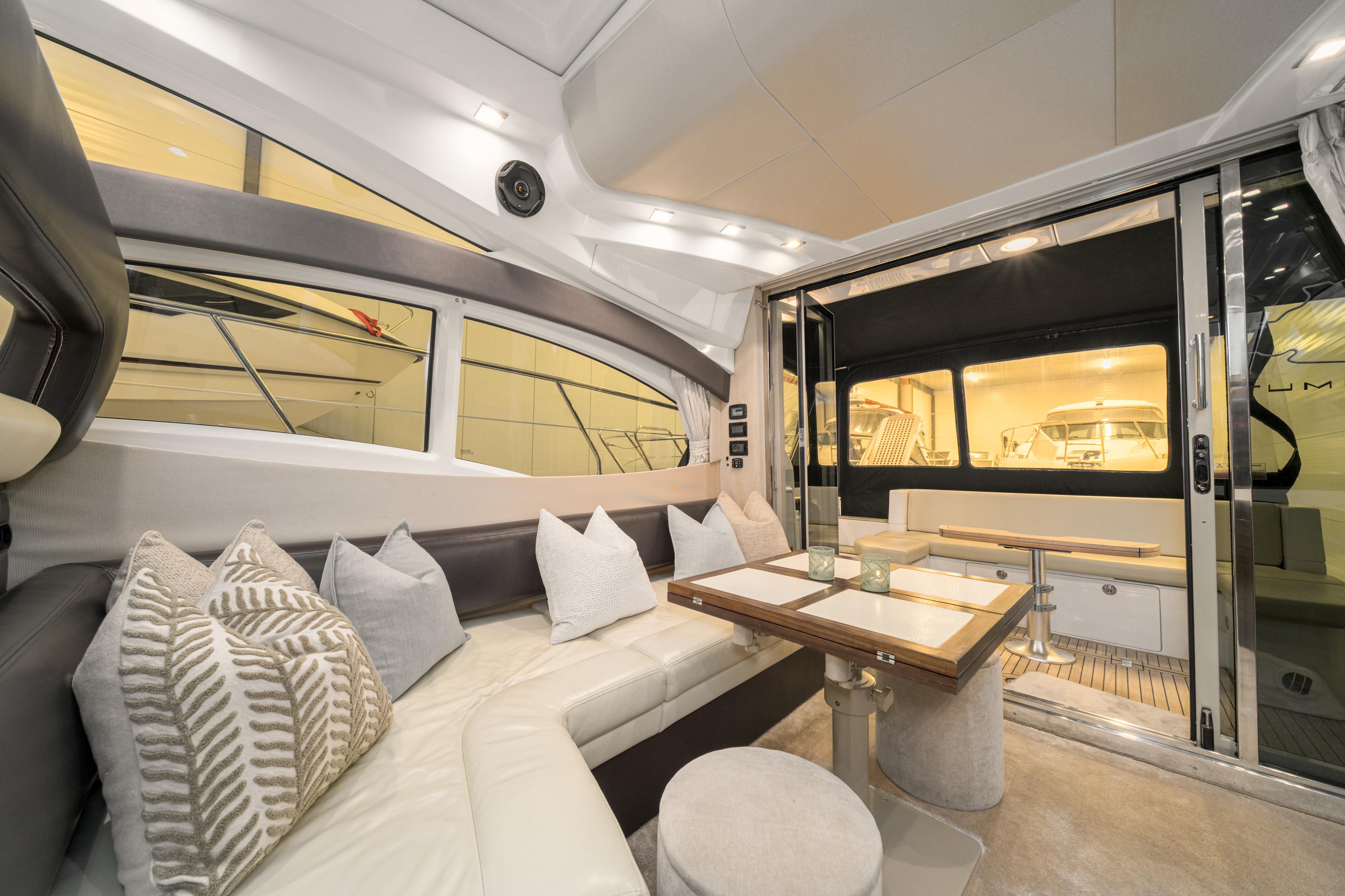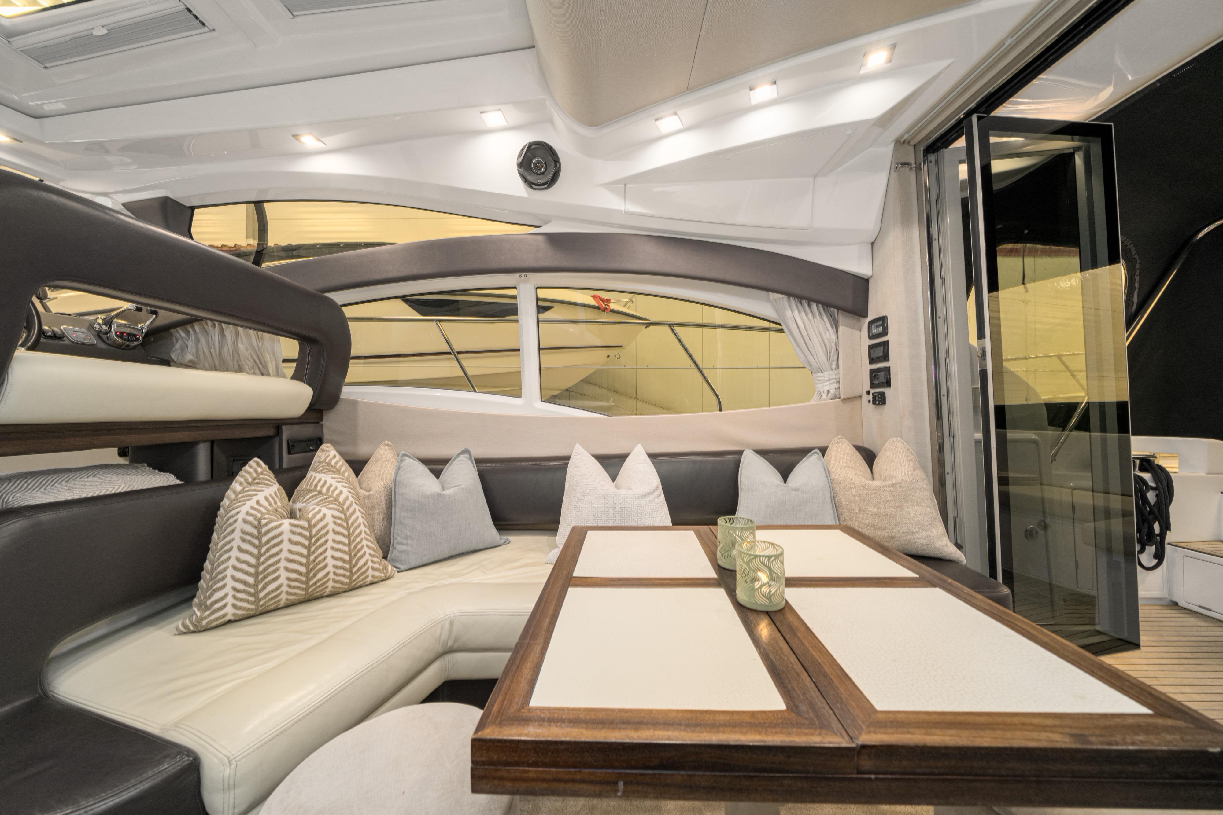 A large aft deck combined with the electrically operated panoramic sunroof over the saloon gives the boat an airy, open feel in good weather. When needed, the space can be fully enclosed with the aft canopy, sliding glass door and solid hardtop, providing excellent protection from wind and rain.