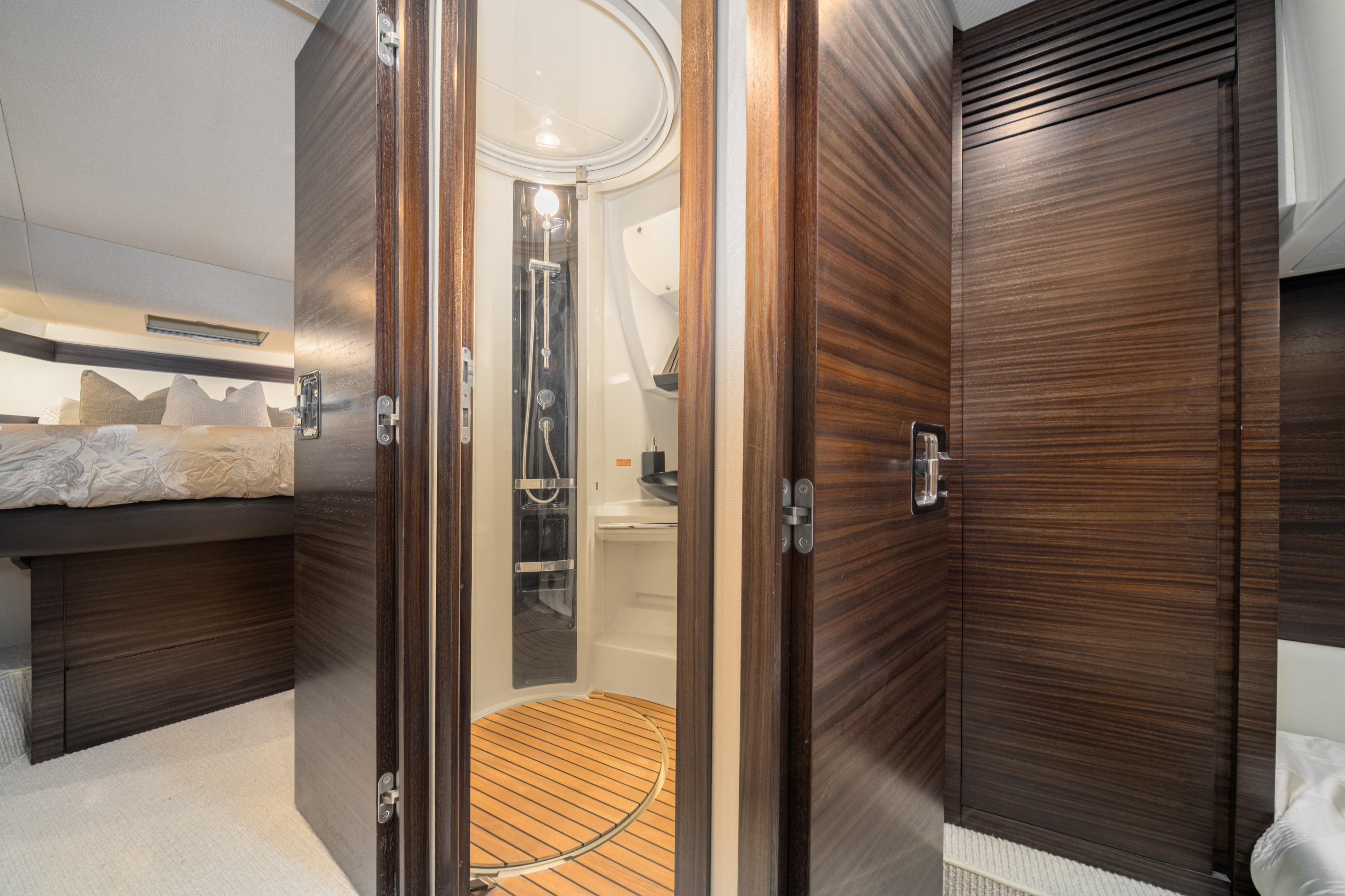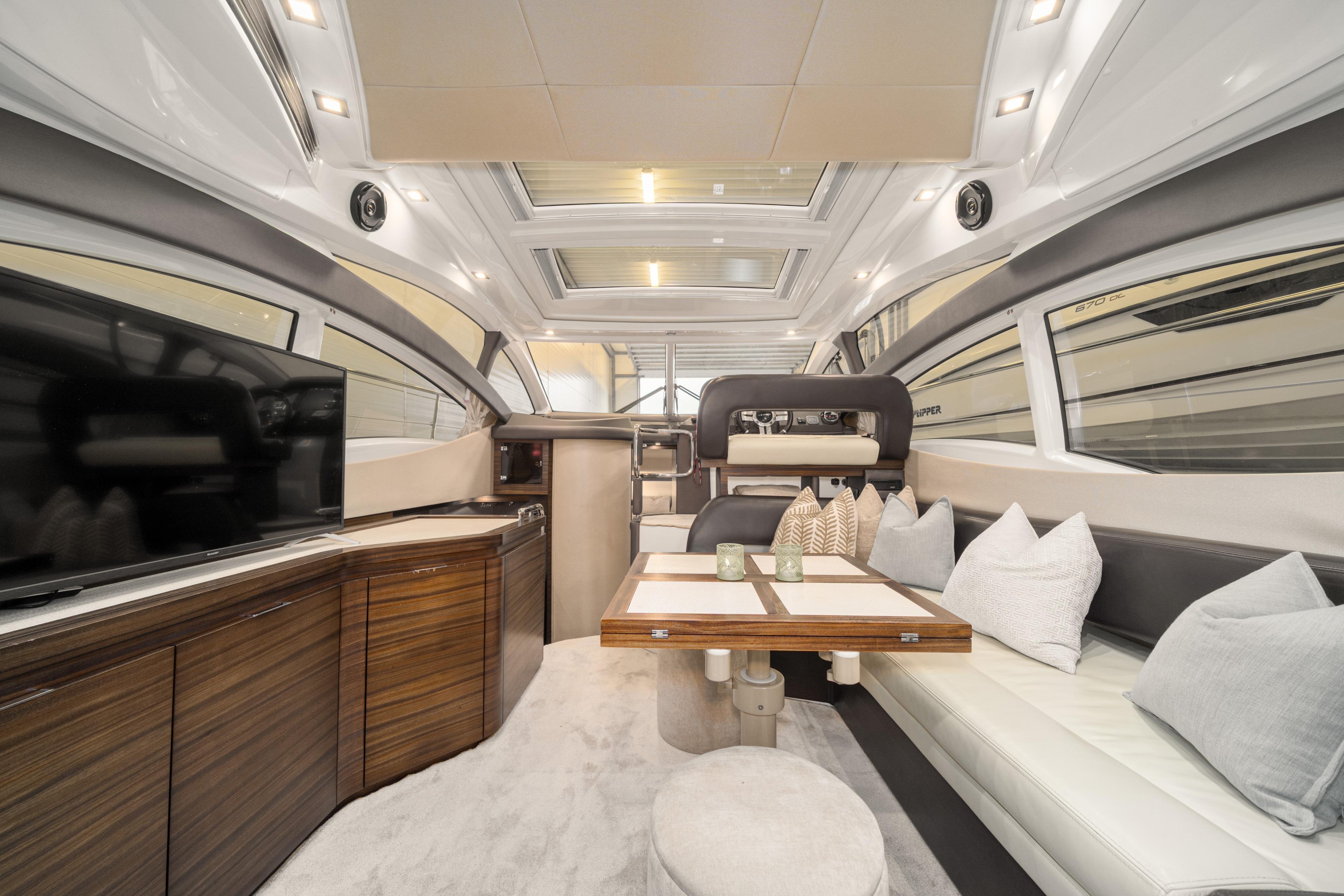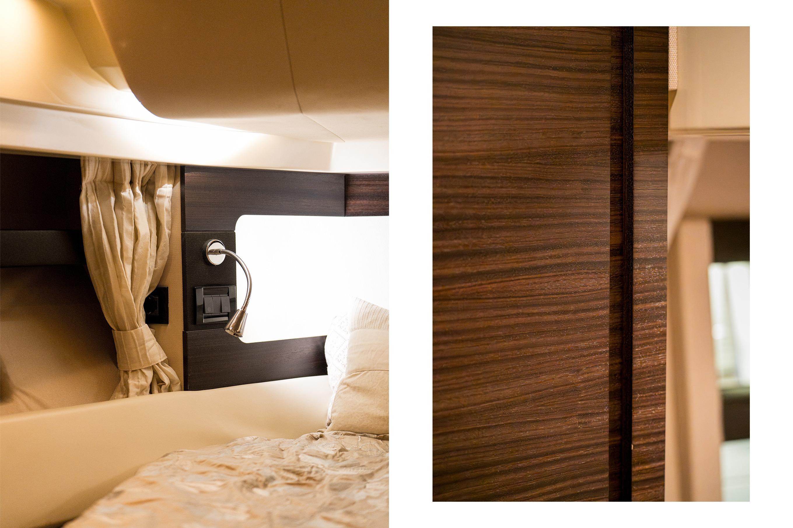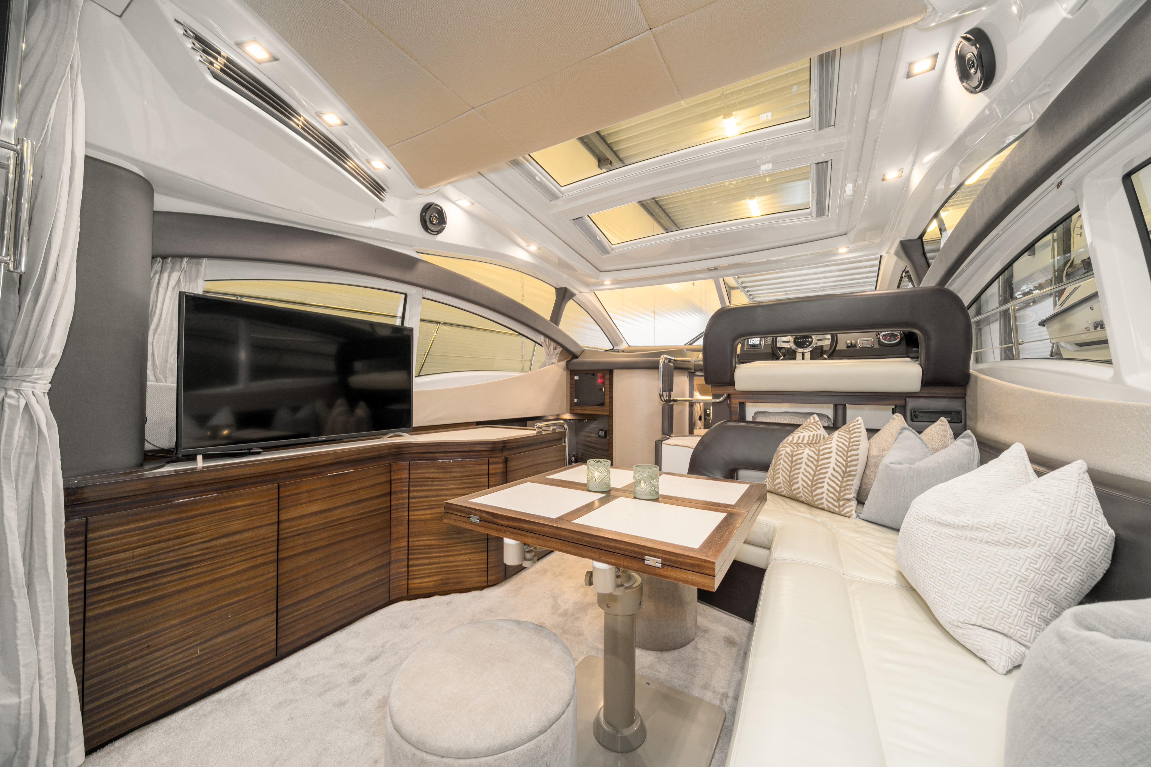 A large aft deck combined with the electrically operated panoramic sunroof over the saloon gives the boat an airy, open feel in good weather. When needed, the space can be fully enclosed with the aft canopy, sliding glass door and solid hardtop, providing excellent protection from wind and rain.