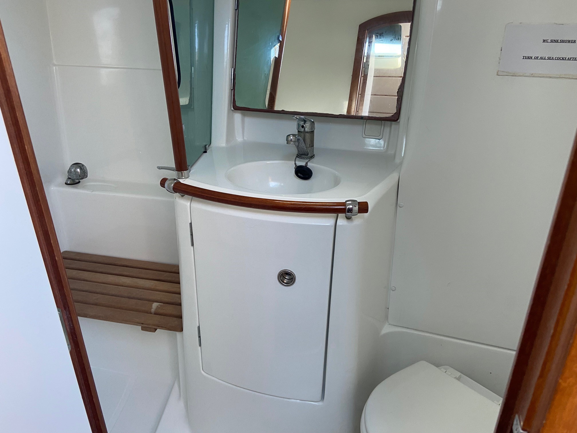 Large heads compartment with manual sea toilet ( New 2018 ), hand basin and separate seated shower