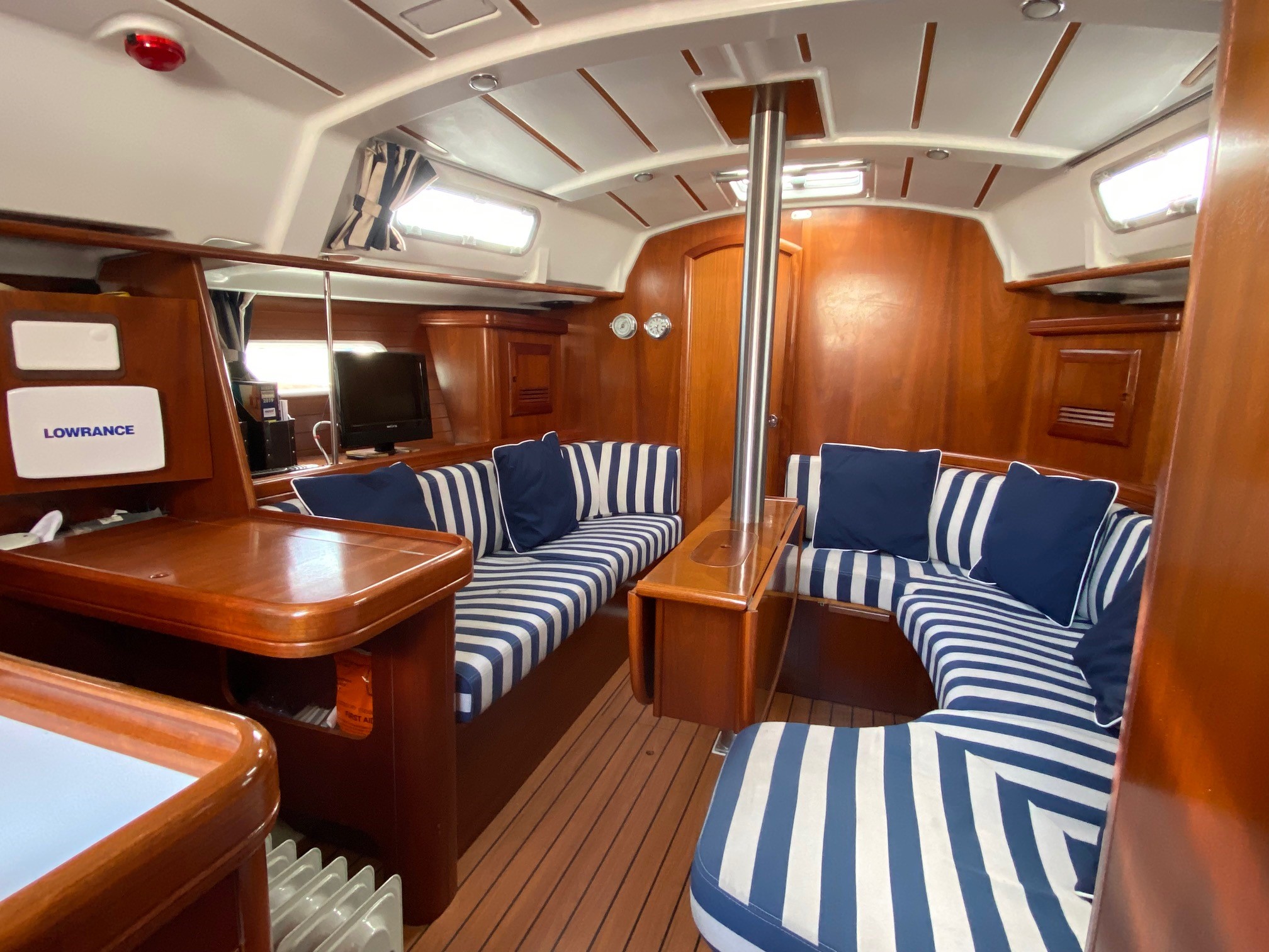 Saloon with U-shaped settee to starboard which converts to double berth.