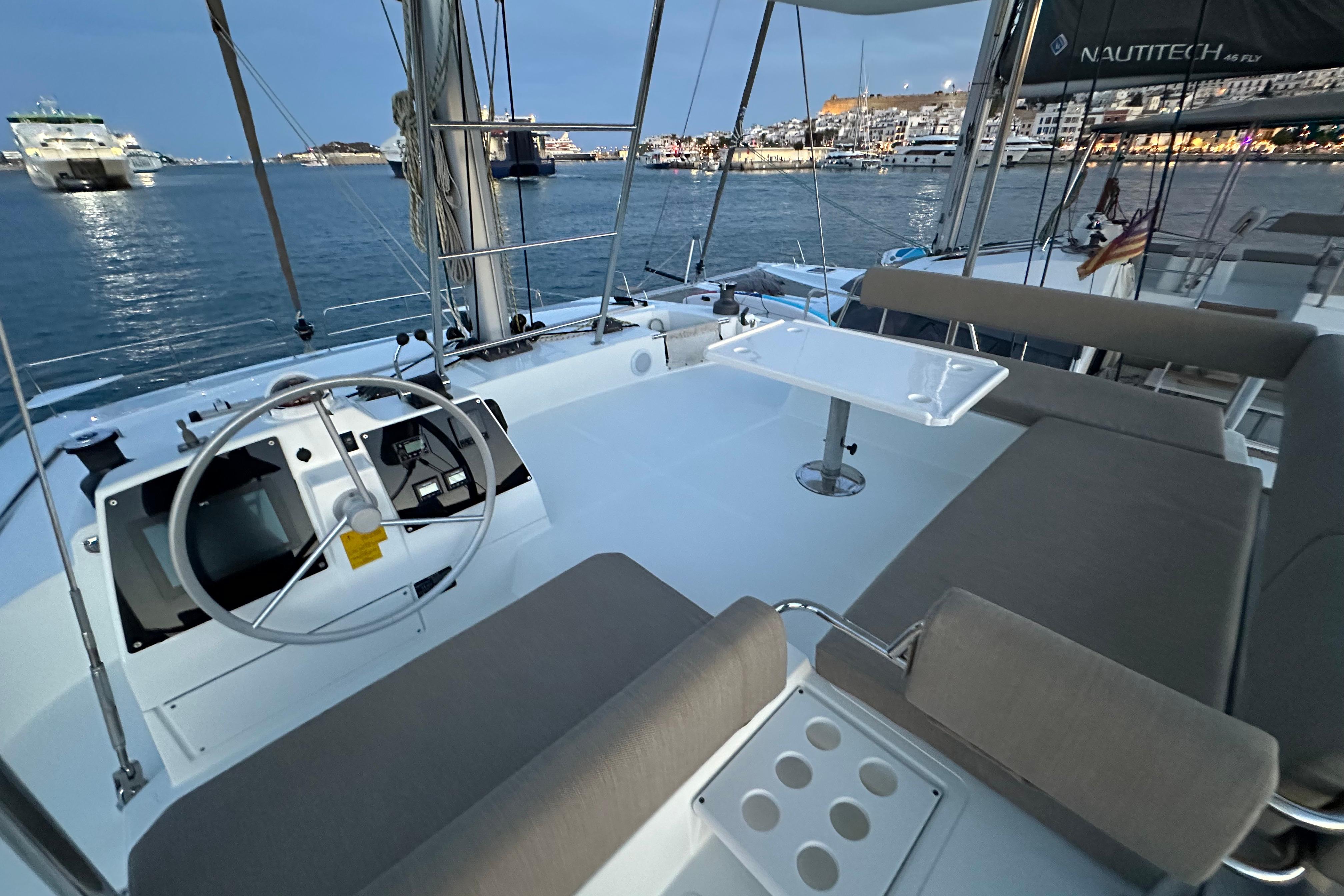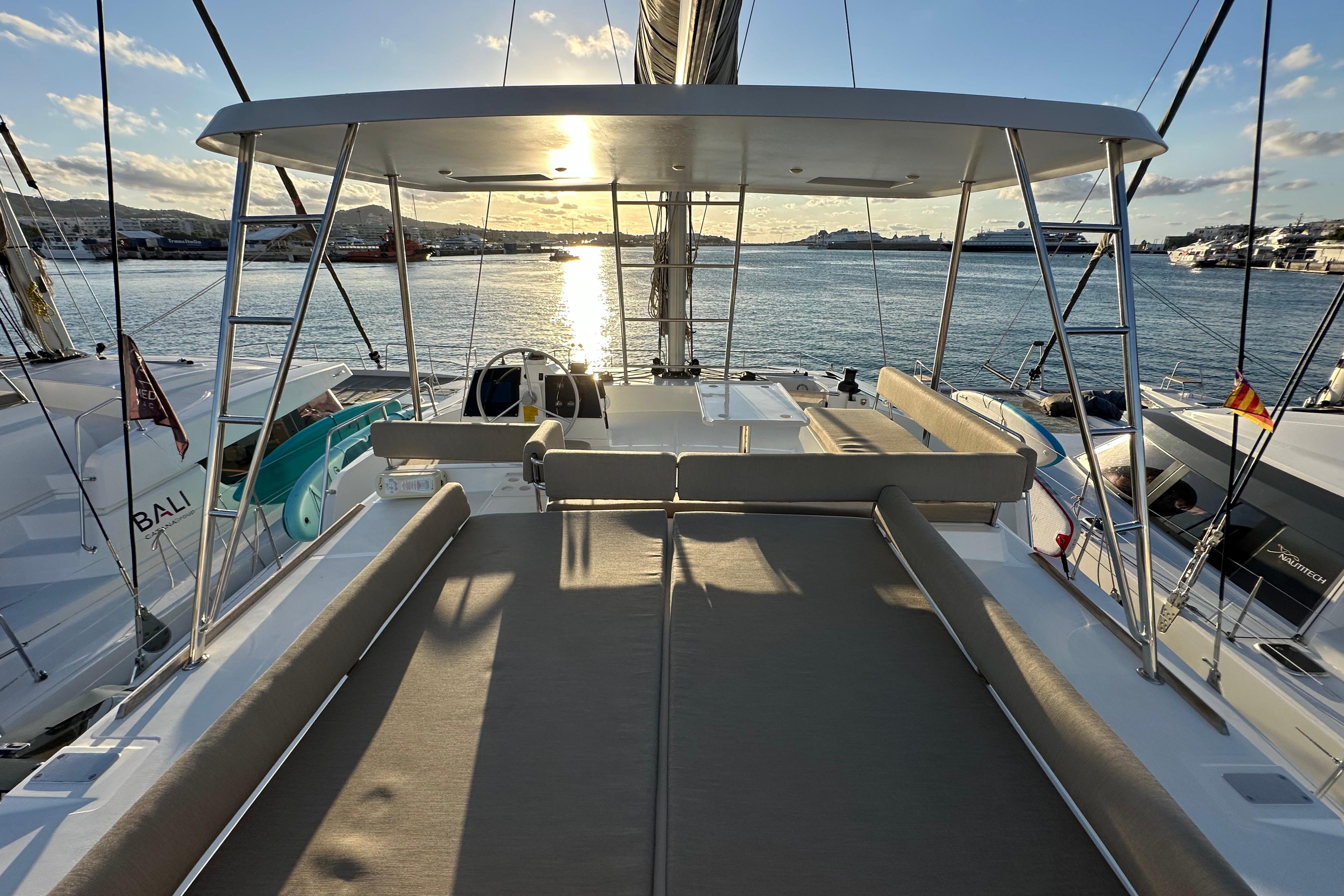 Este catamarán ha operado en charter siempre con tripulación profesional y bajo la supervisión directa de Med Cat Yachts, representantes oficiales de Bali en España. Desde su entrega, todos los trabajos de mantenimiento y servicio han sido realizados y supervisados por nuestro equipo, siguiendo los procedimientos establecidos y garantizando que el barco se conserva en condiciones óptimas.